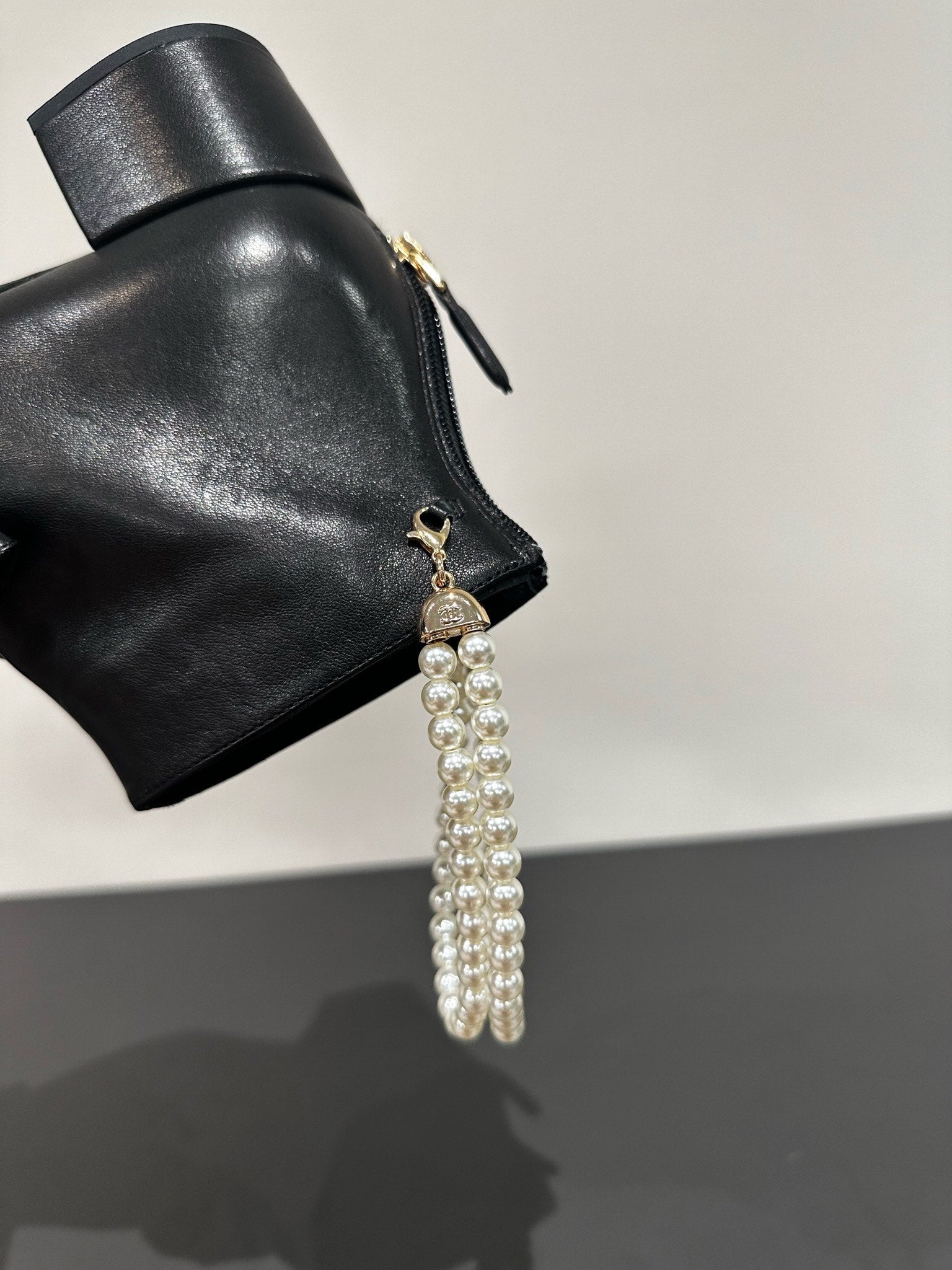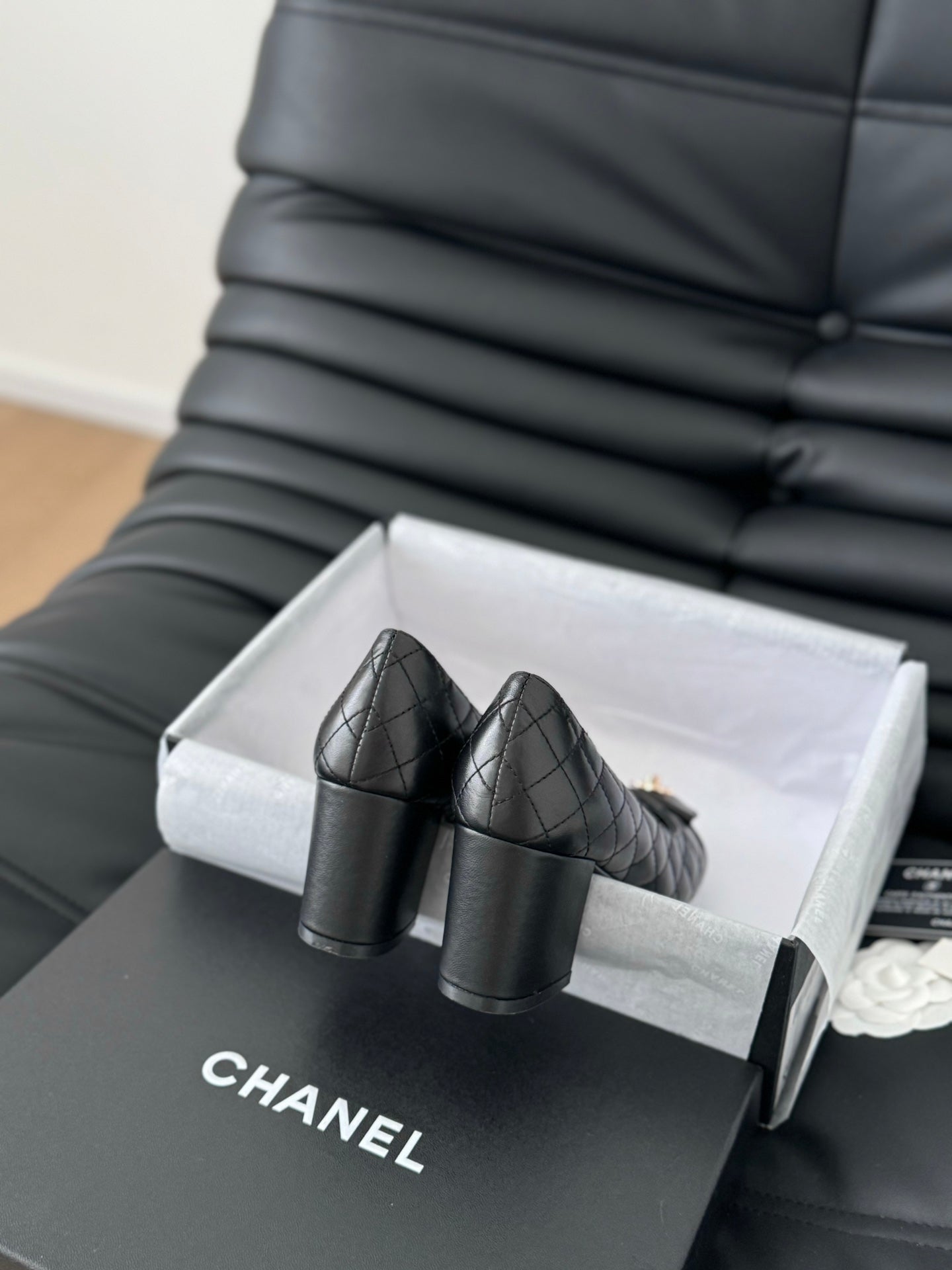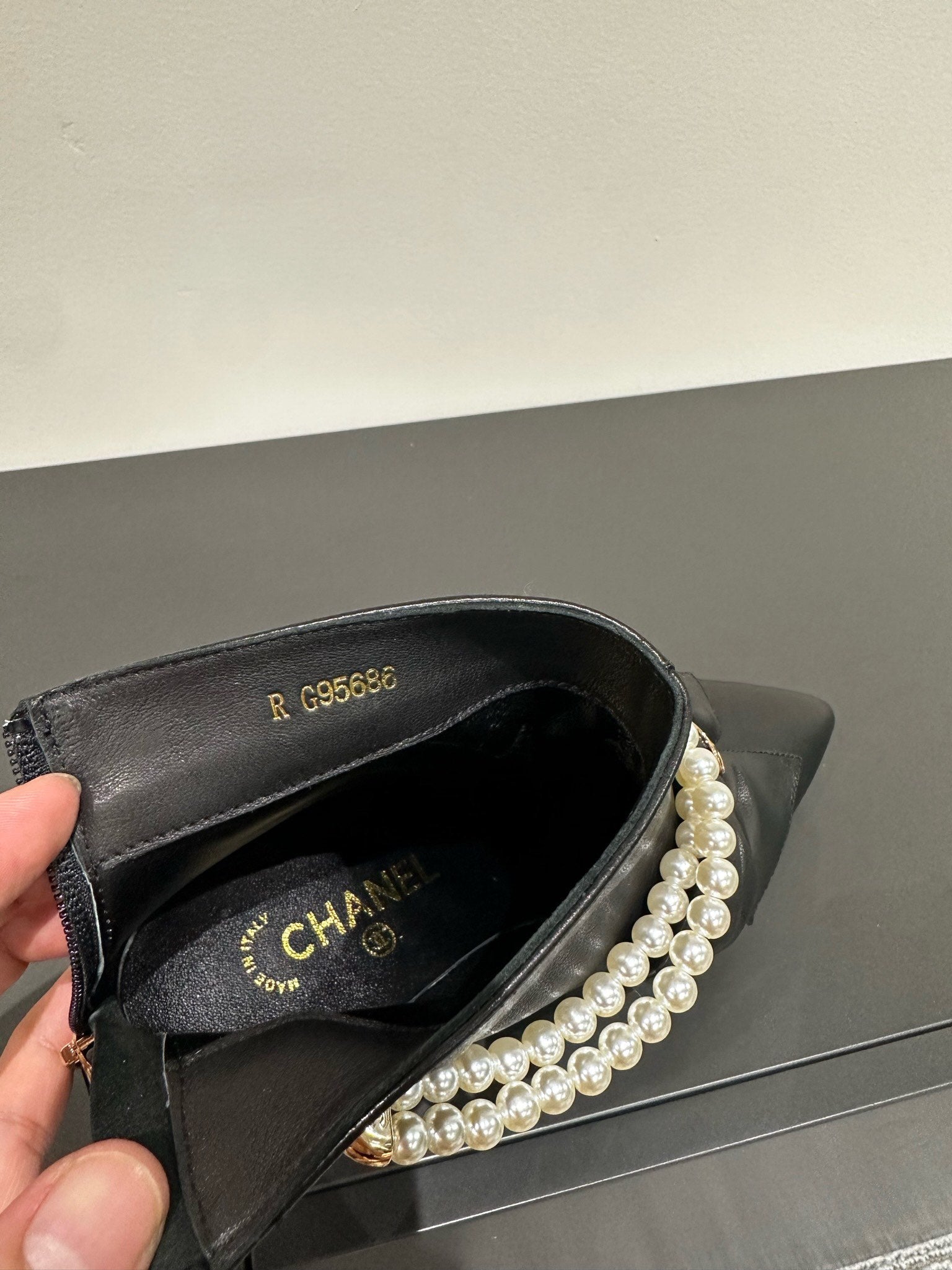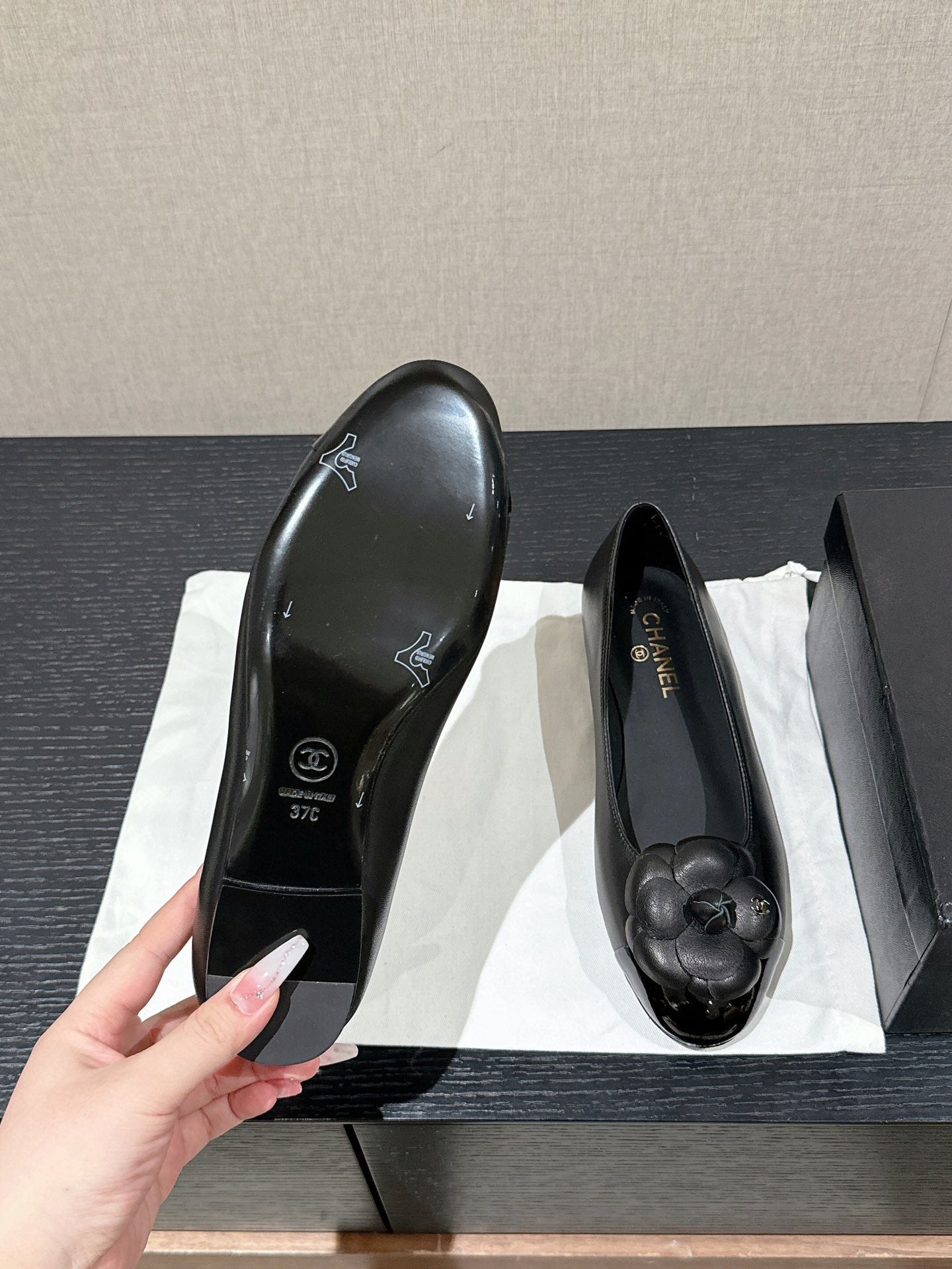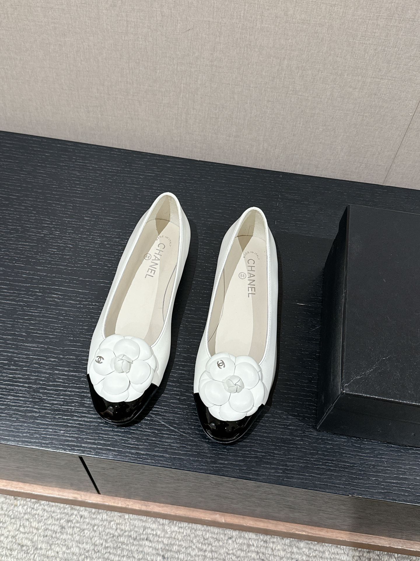 BALLET FLAT BLACK LAMBSKIN WITH WHITE BOW