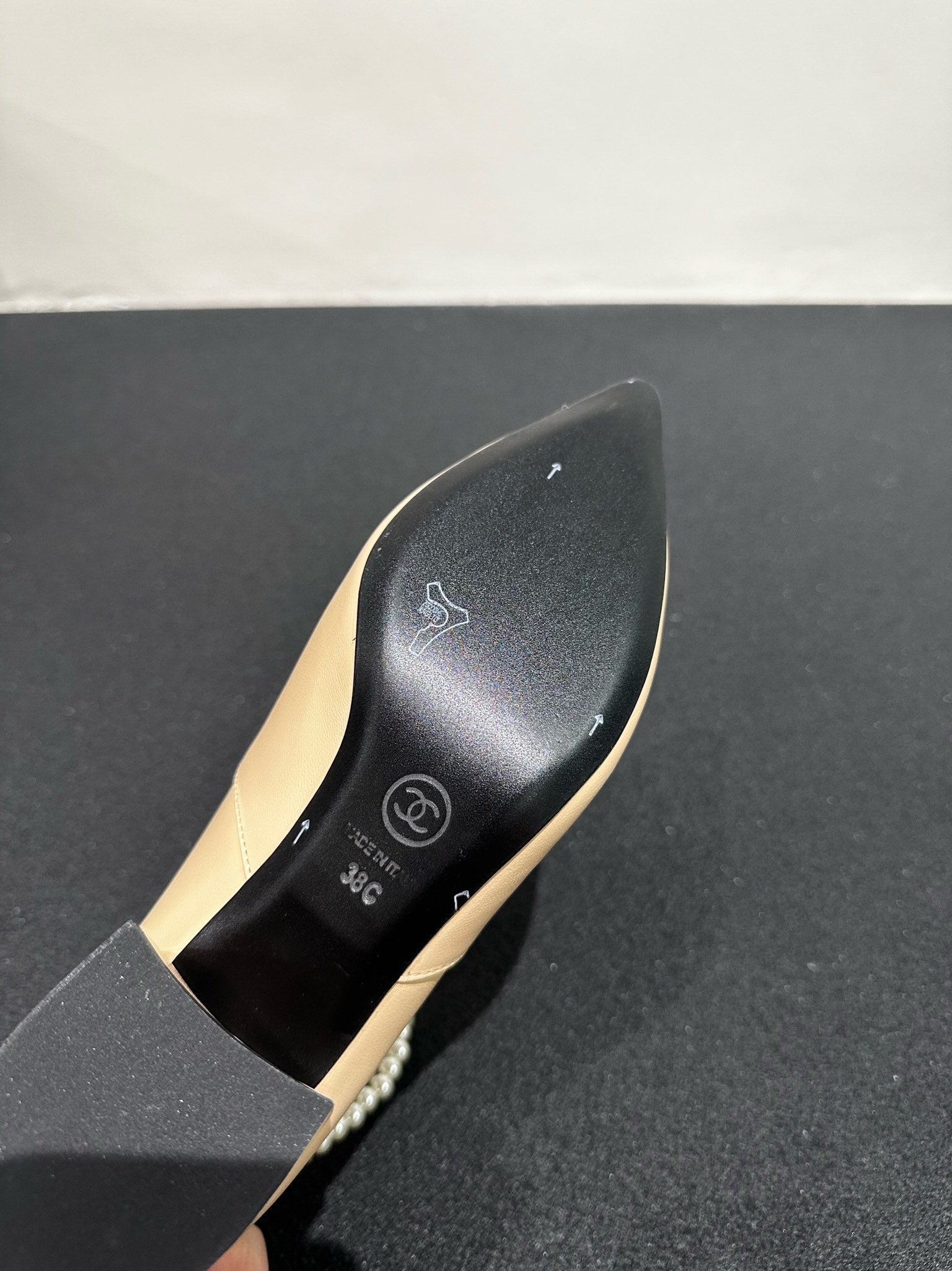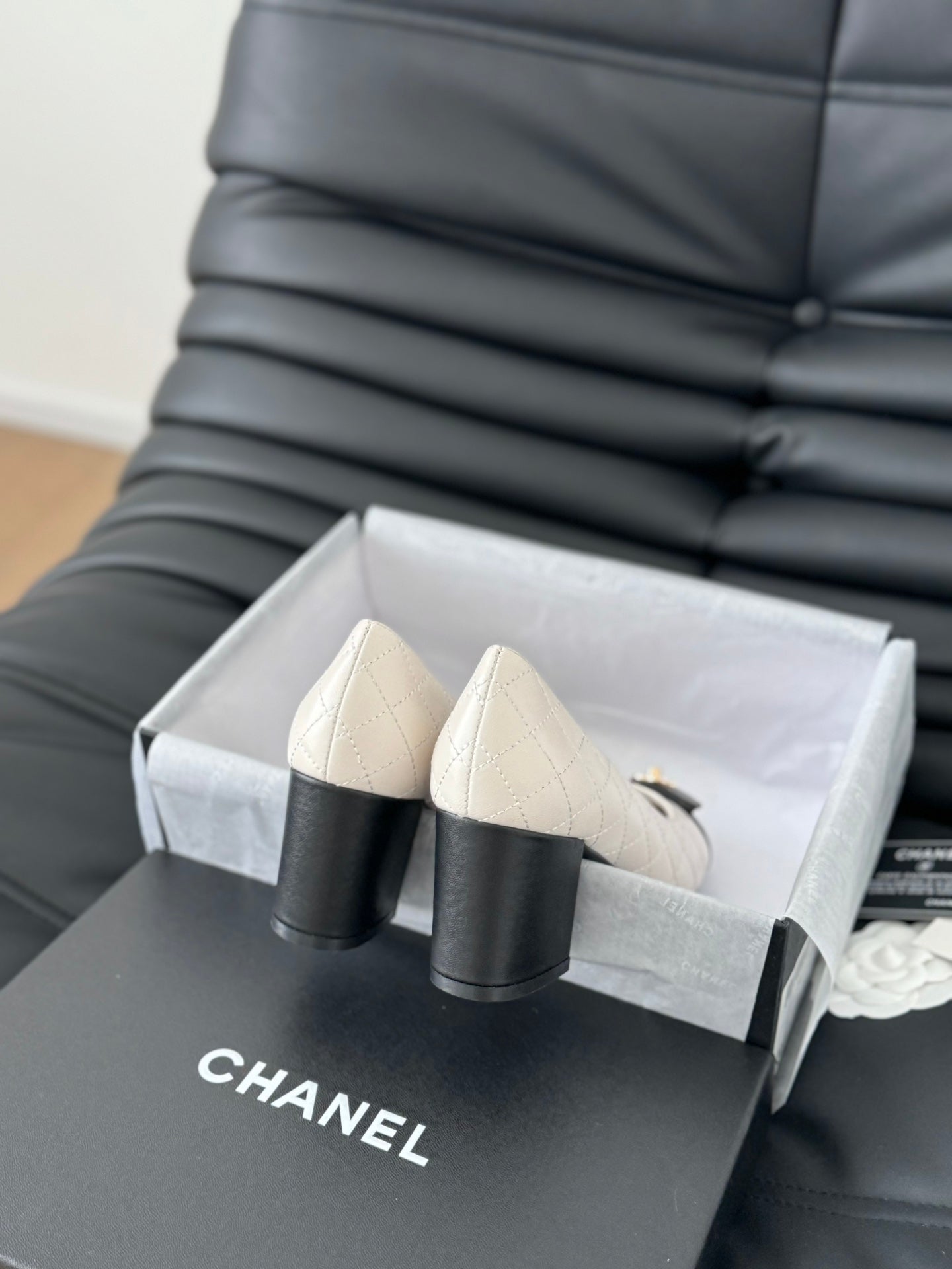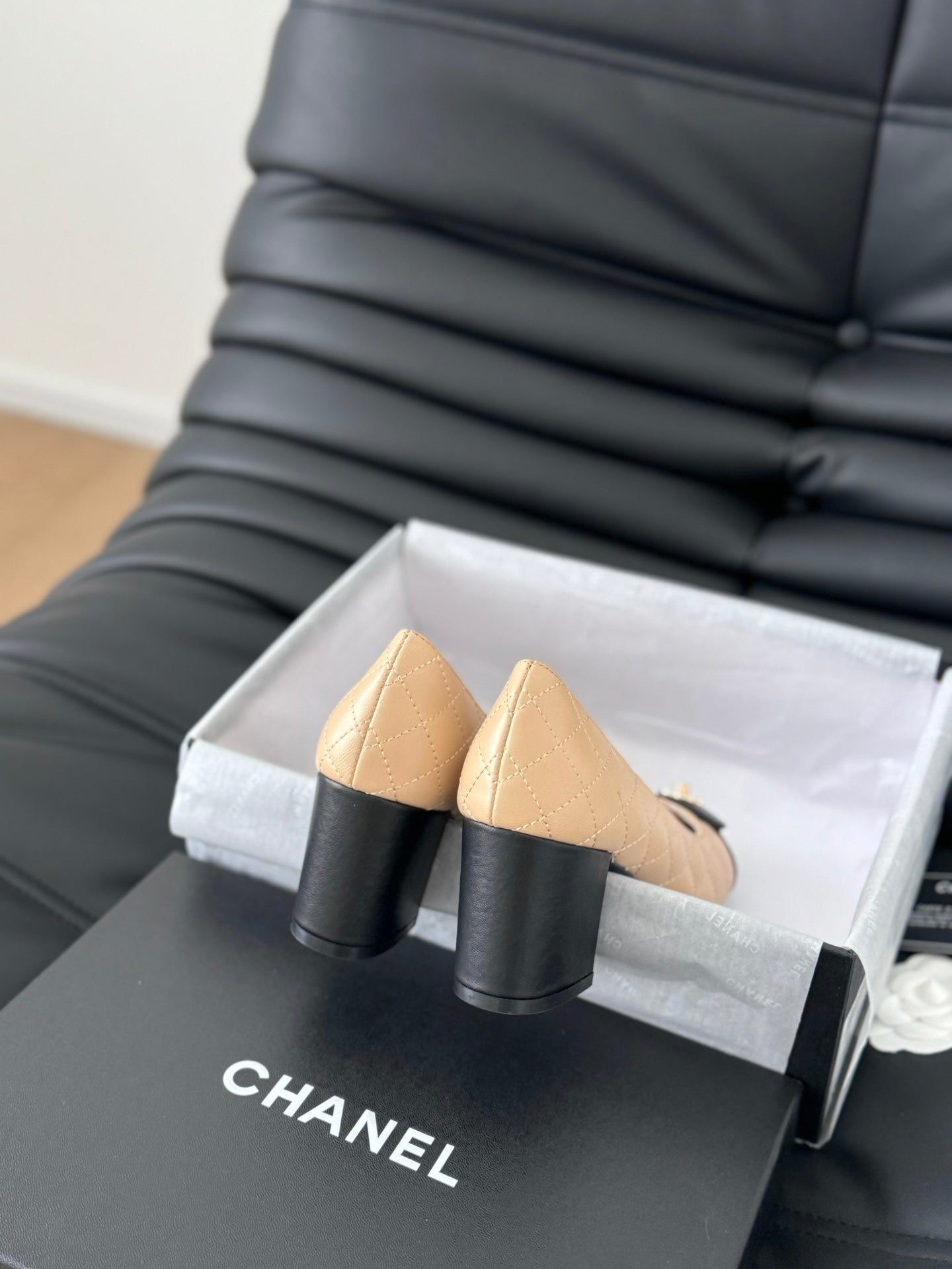 CC Pointed Toe High Heels Beige Bow Tie Cowhide