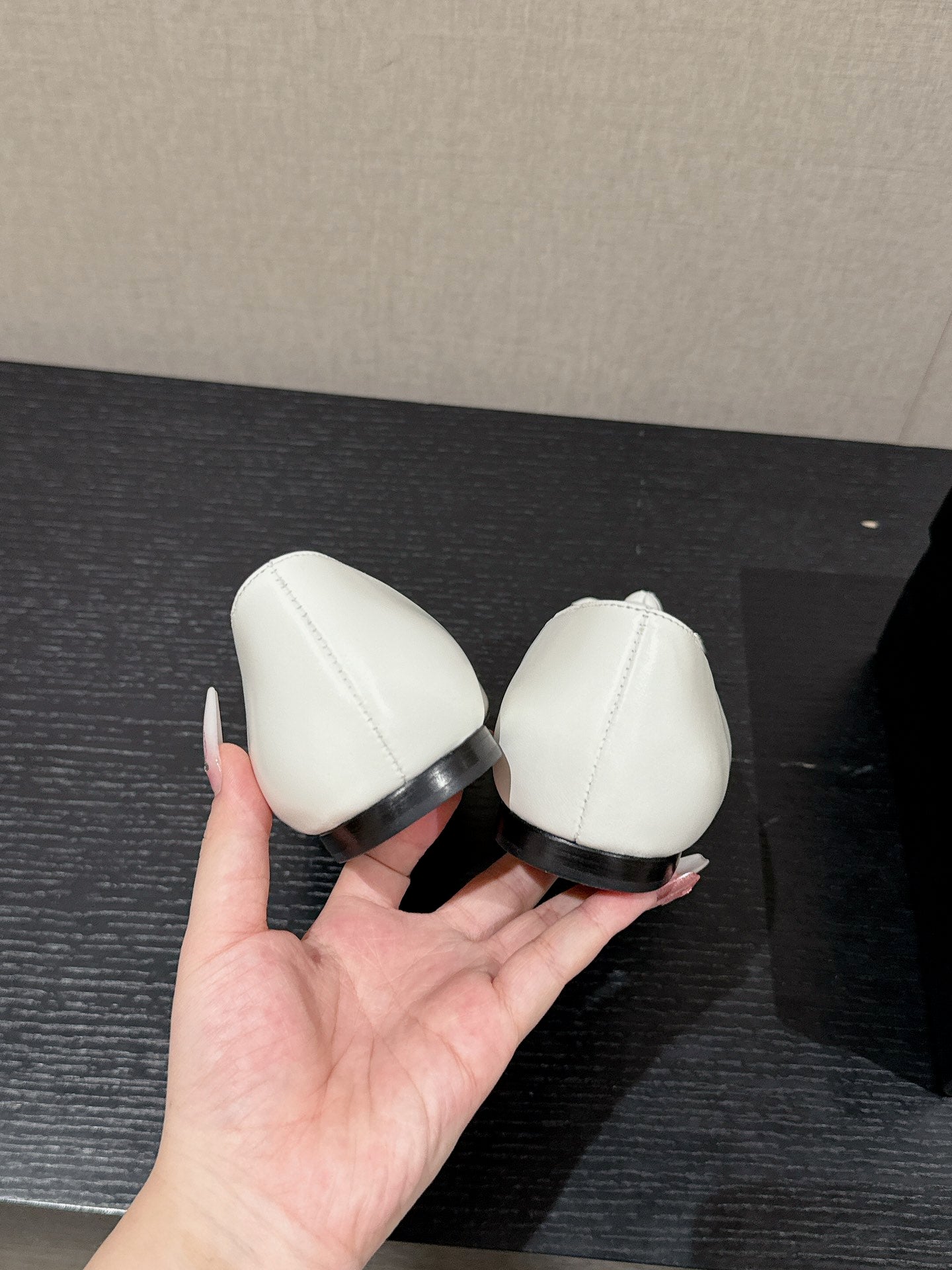 BALLET FLAT WHITE LAMBSKIN WITH BLACK BOW