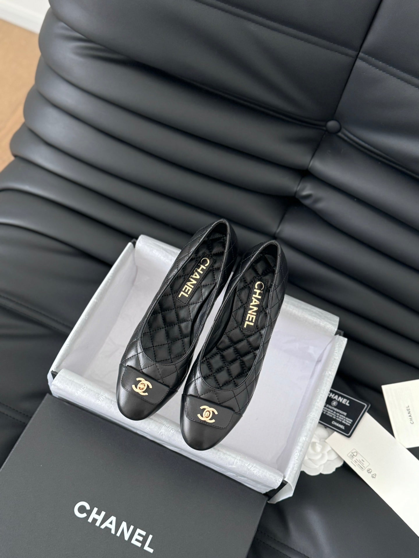 CC BALLET FLATS IN BLACK LAMBSKIN WITH GOLD HARDWARE