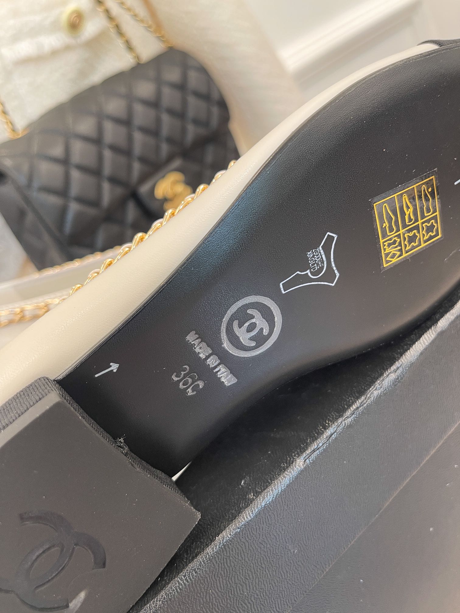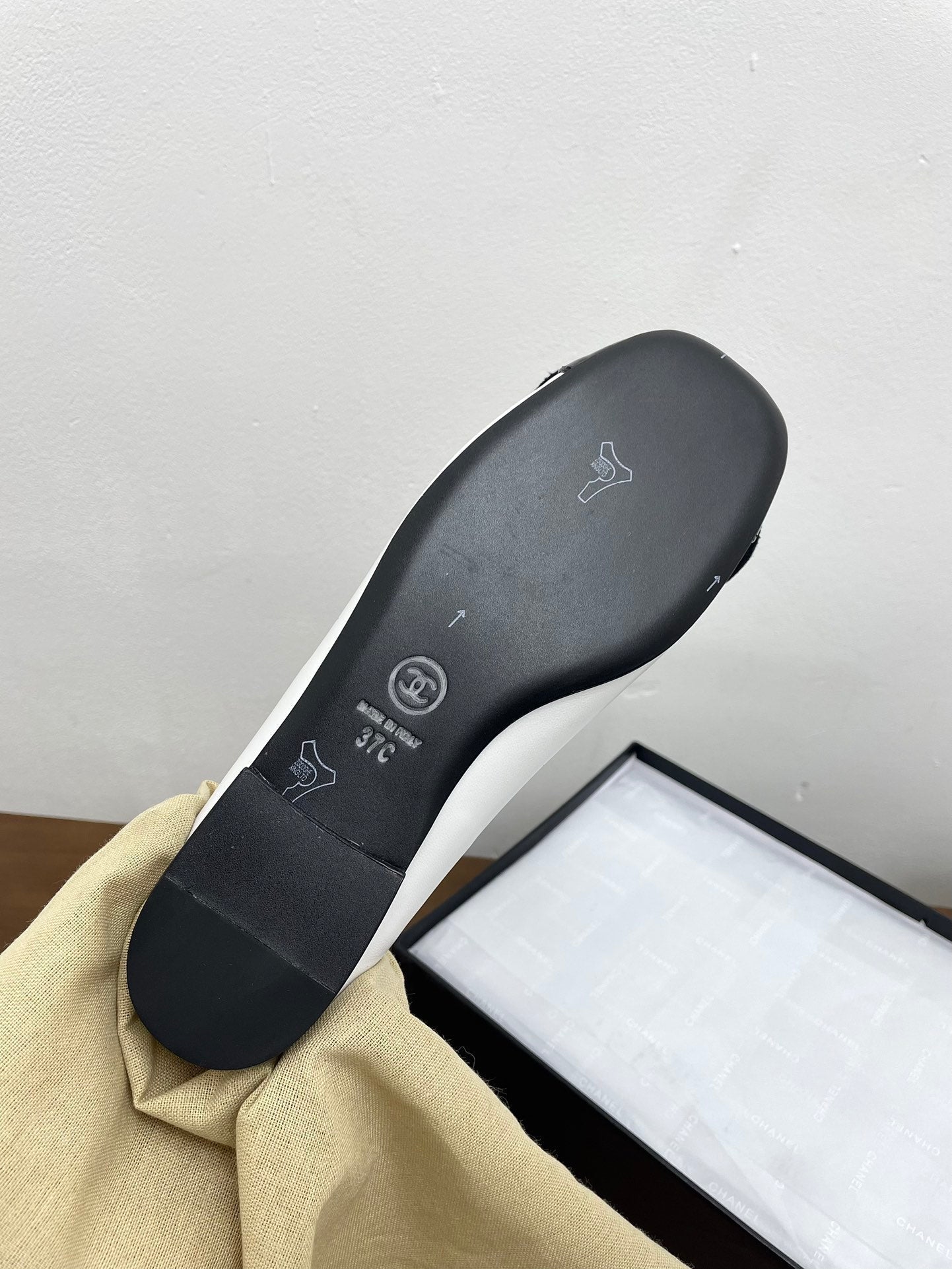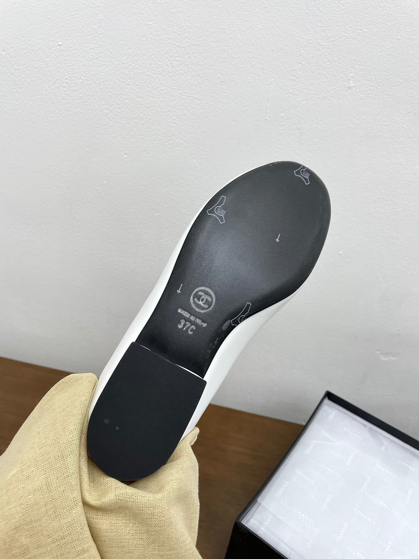 CC Ballet Flats 10mm White Black Quilted Lambskin