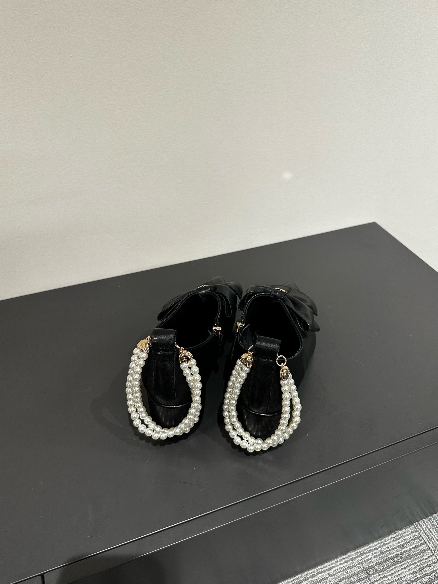 CC Ballet Flats 25mm Black Bow Tie Chain Lambskin