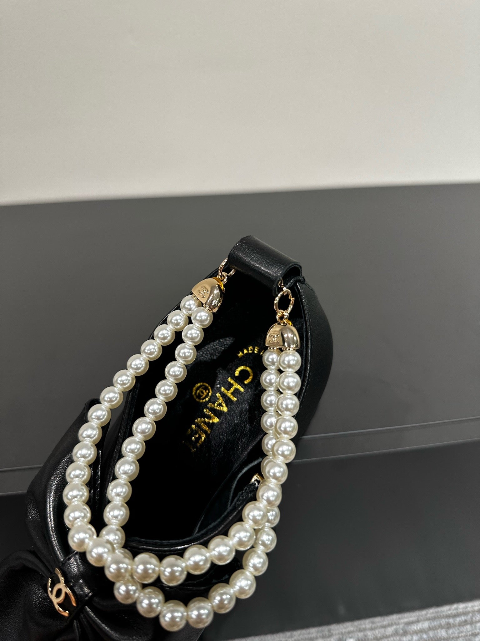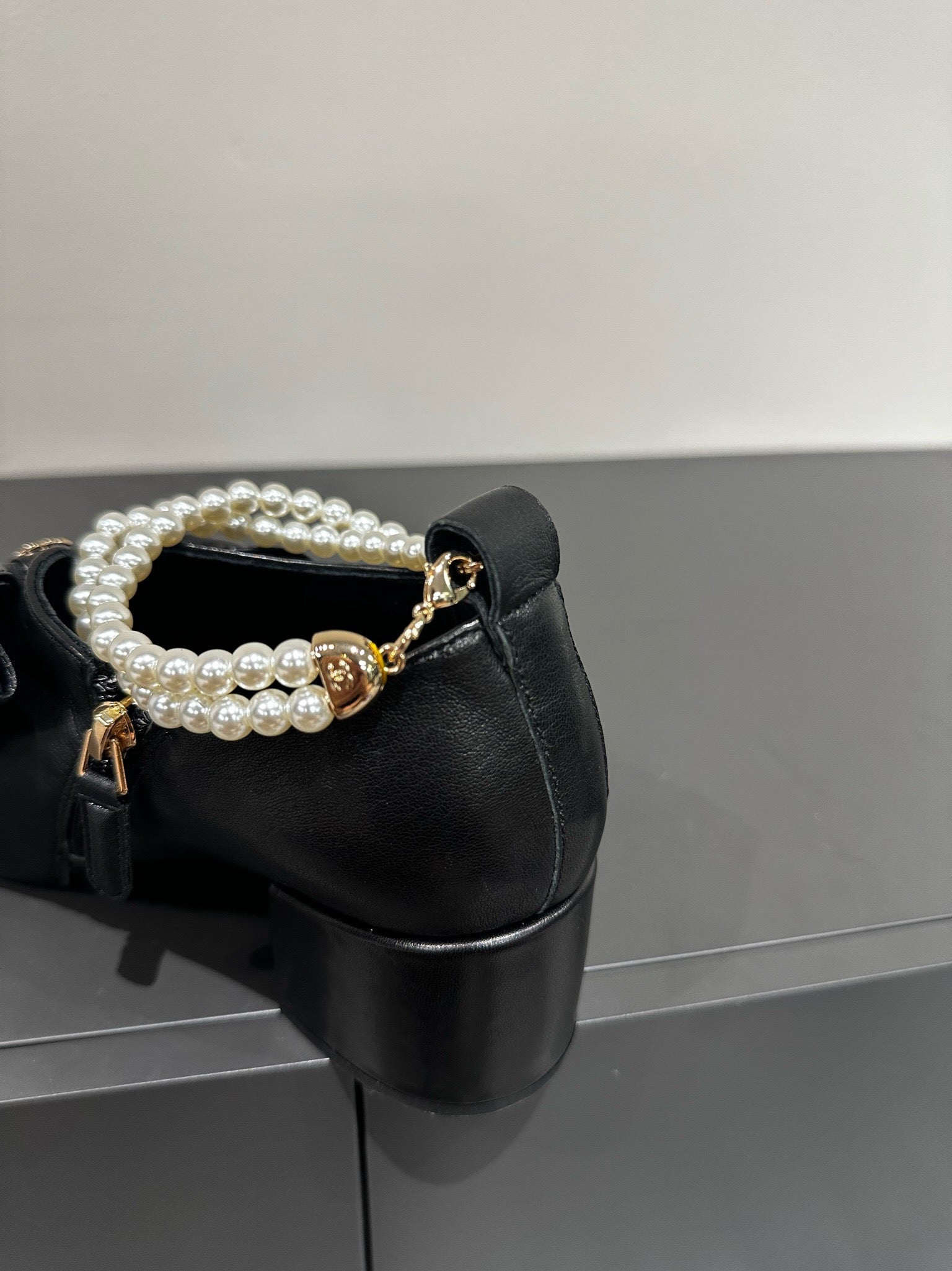 CC Mary Jane Black Studded With Pearls Lambskin And Cowhide