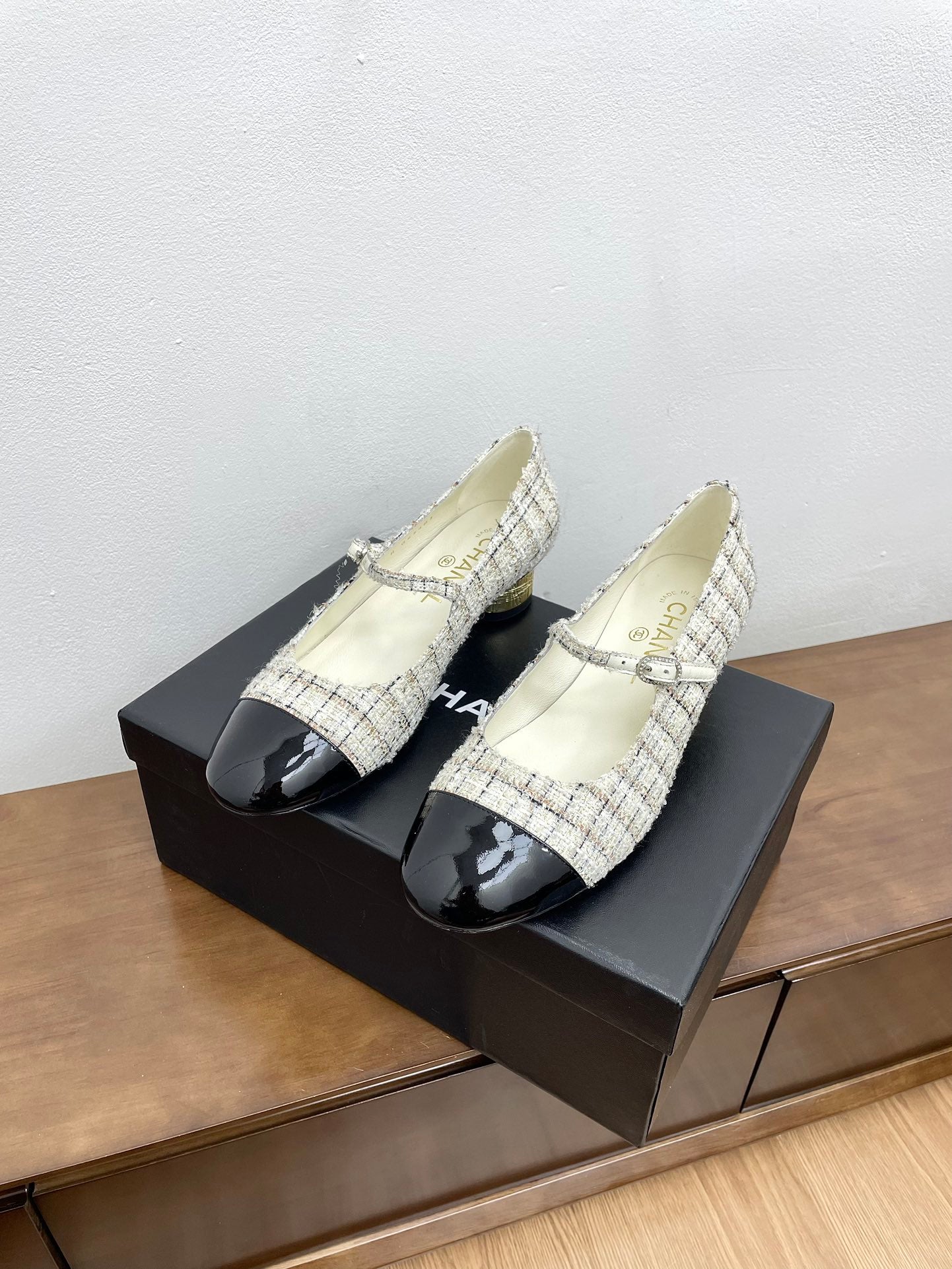 CC Mary Jane White Black Studded With Pearls Lambskin And Cowhide