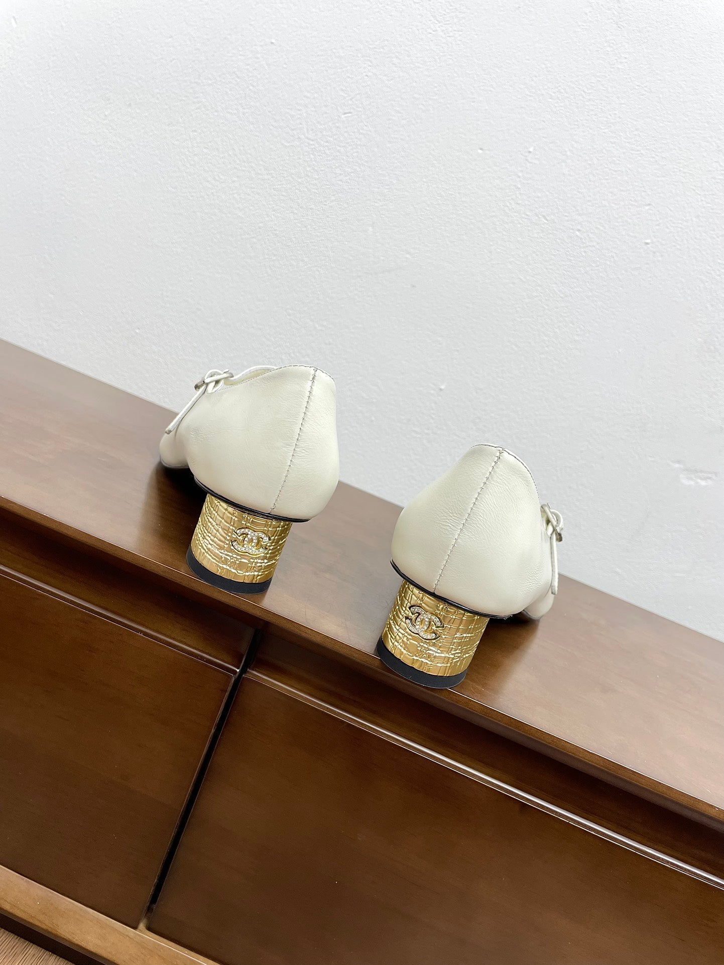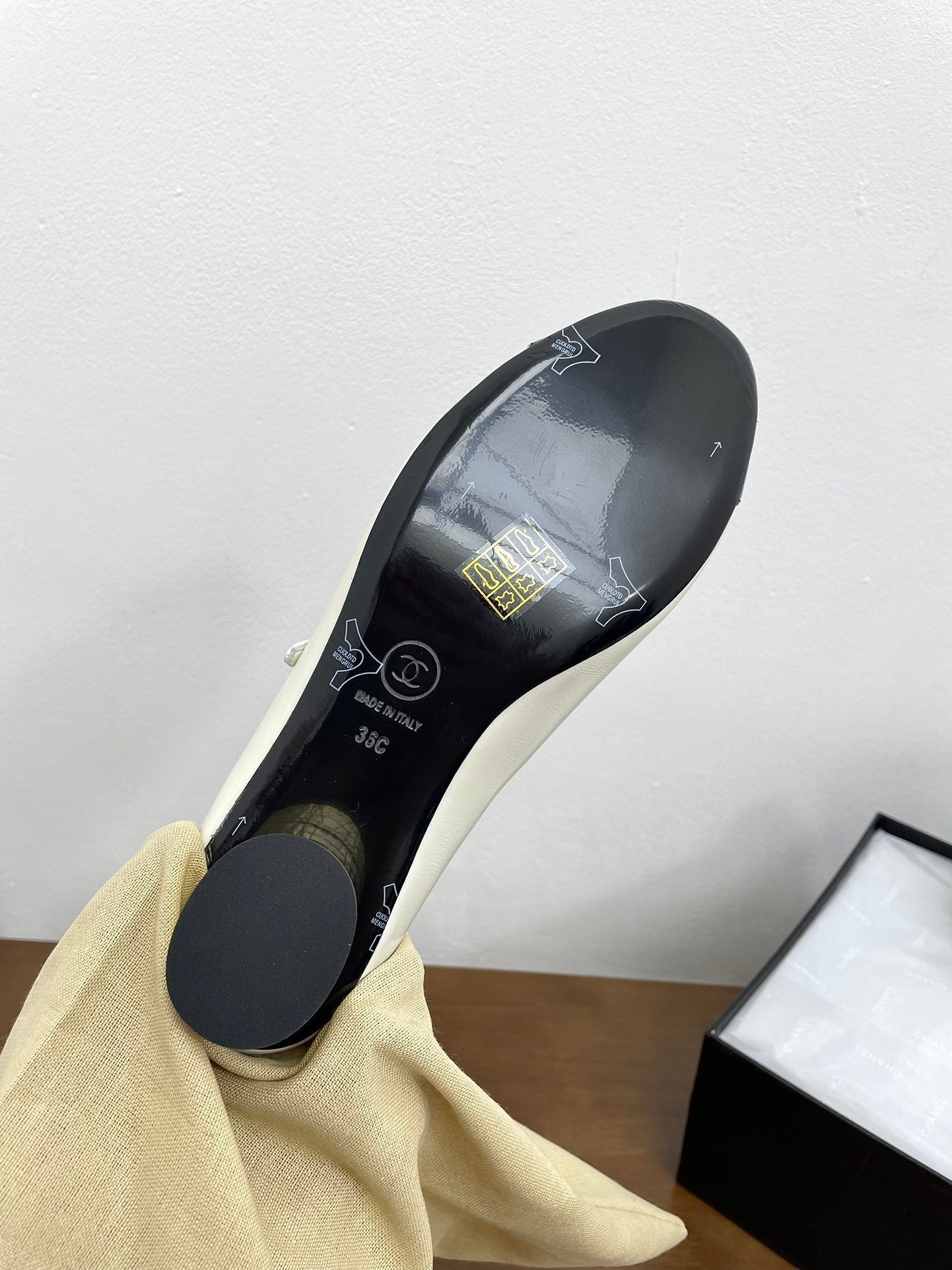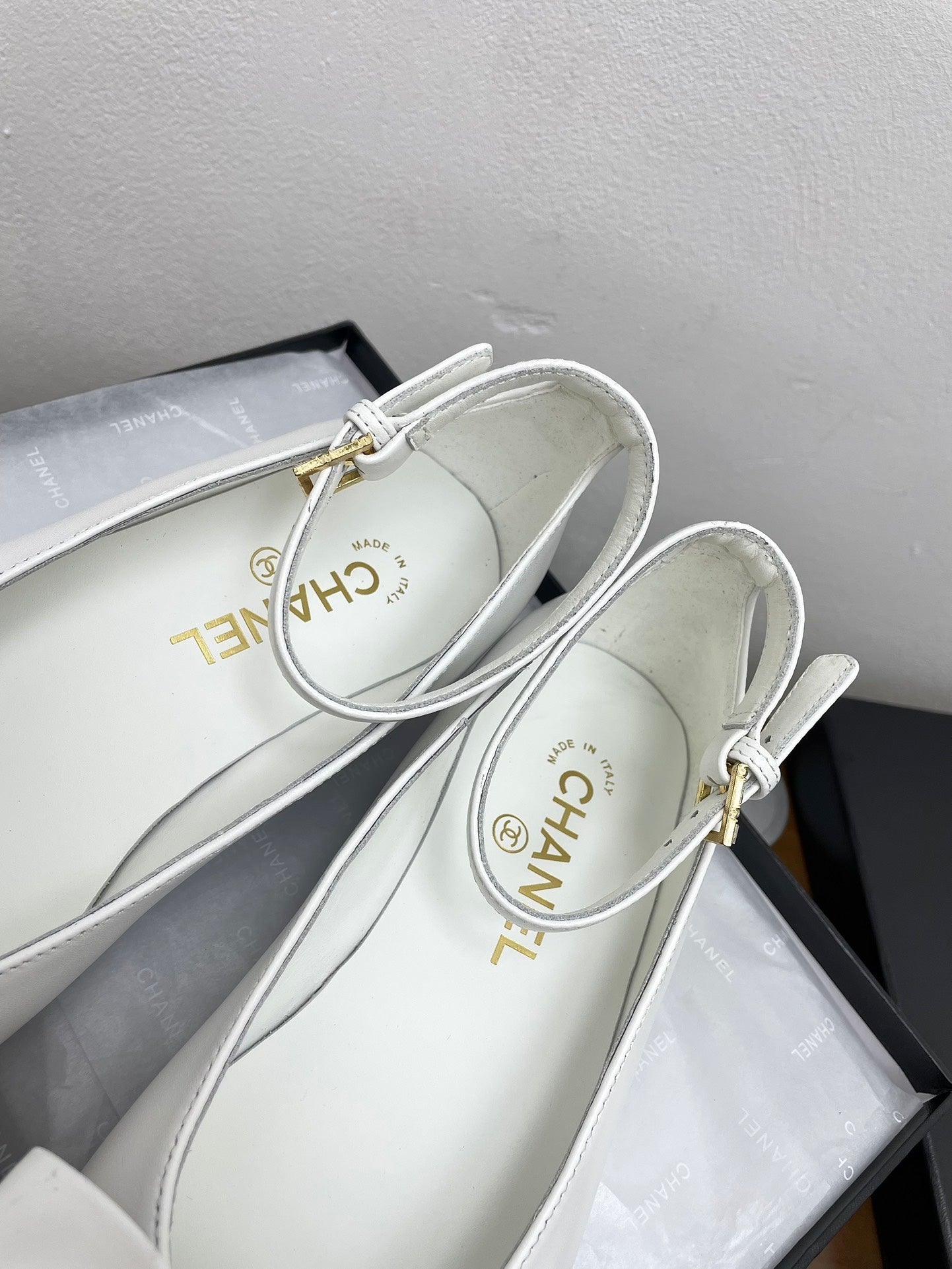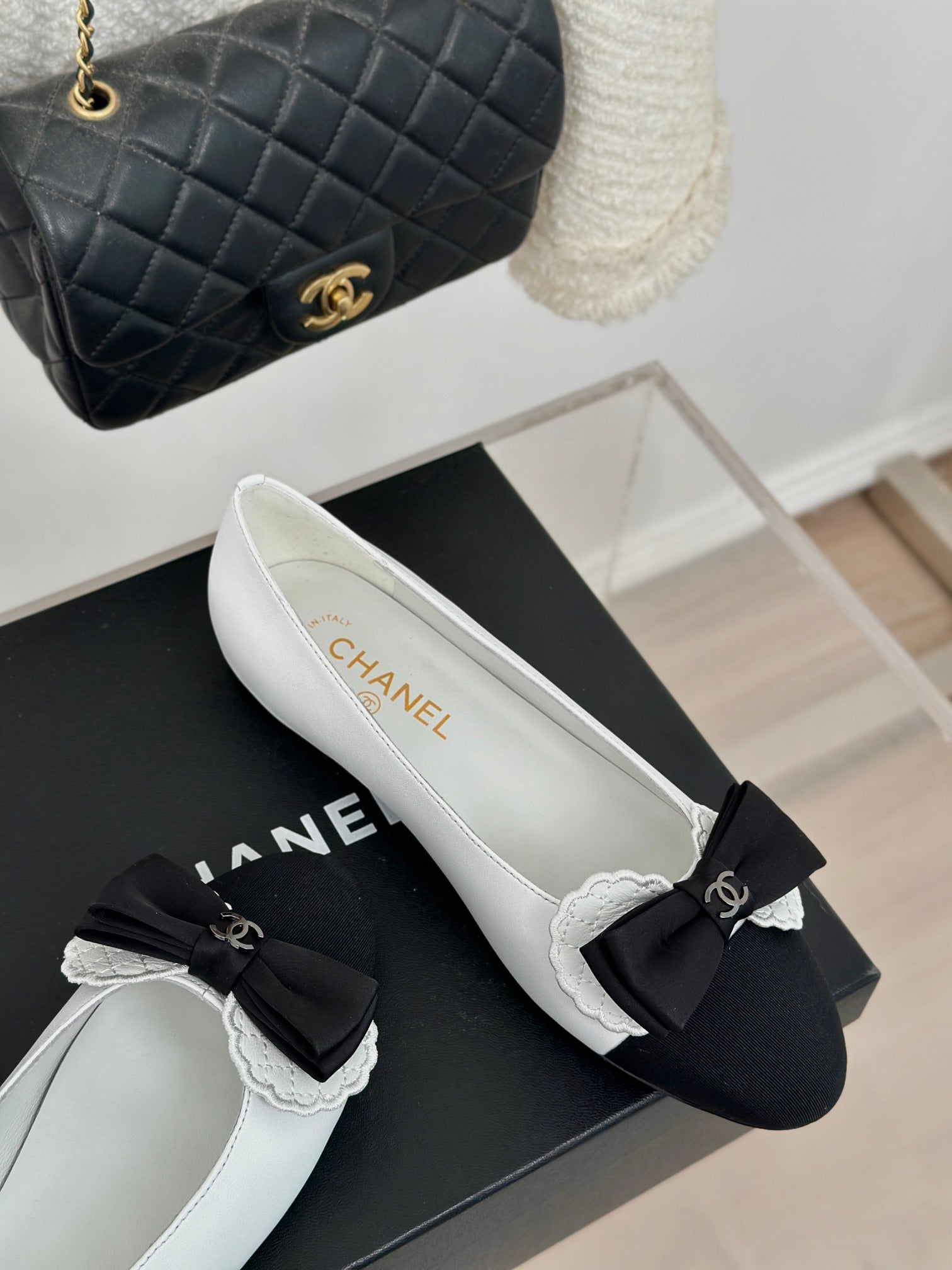 CC Ballet Flats 25mm White Bow Tie Chain Lambskin
