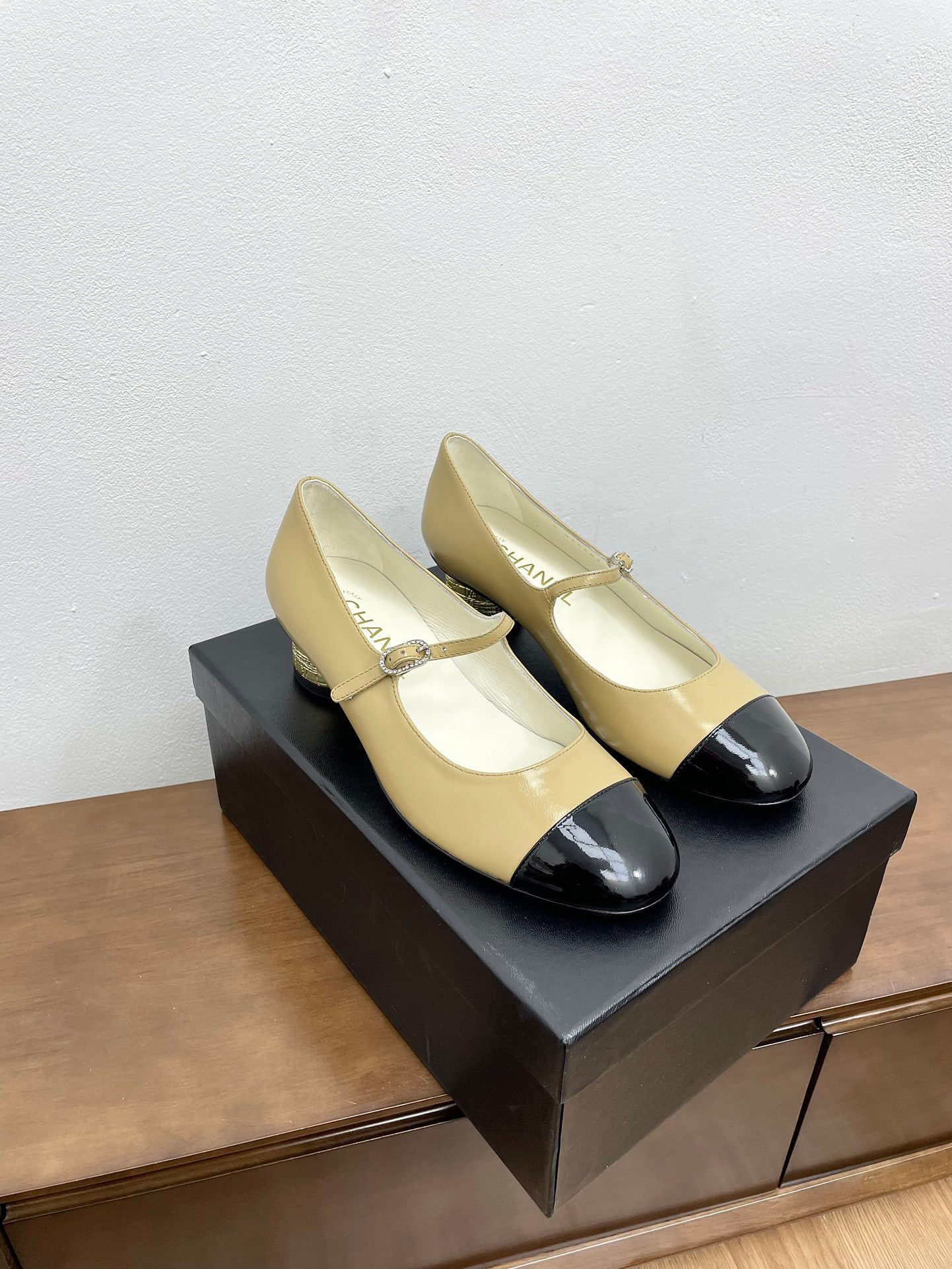 CC Ballet Flats 10mm Beige Black Quilted Lambskin
