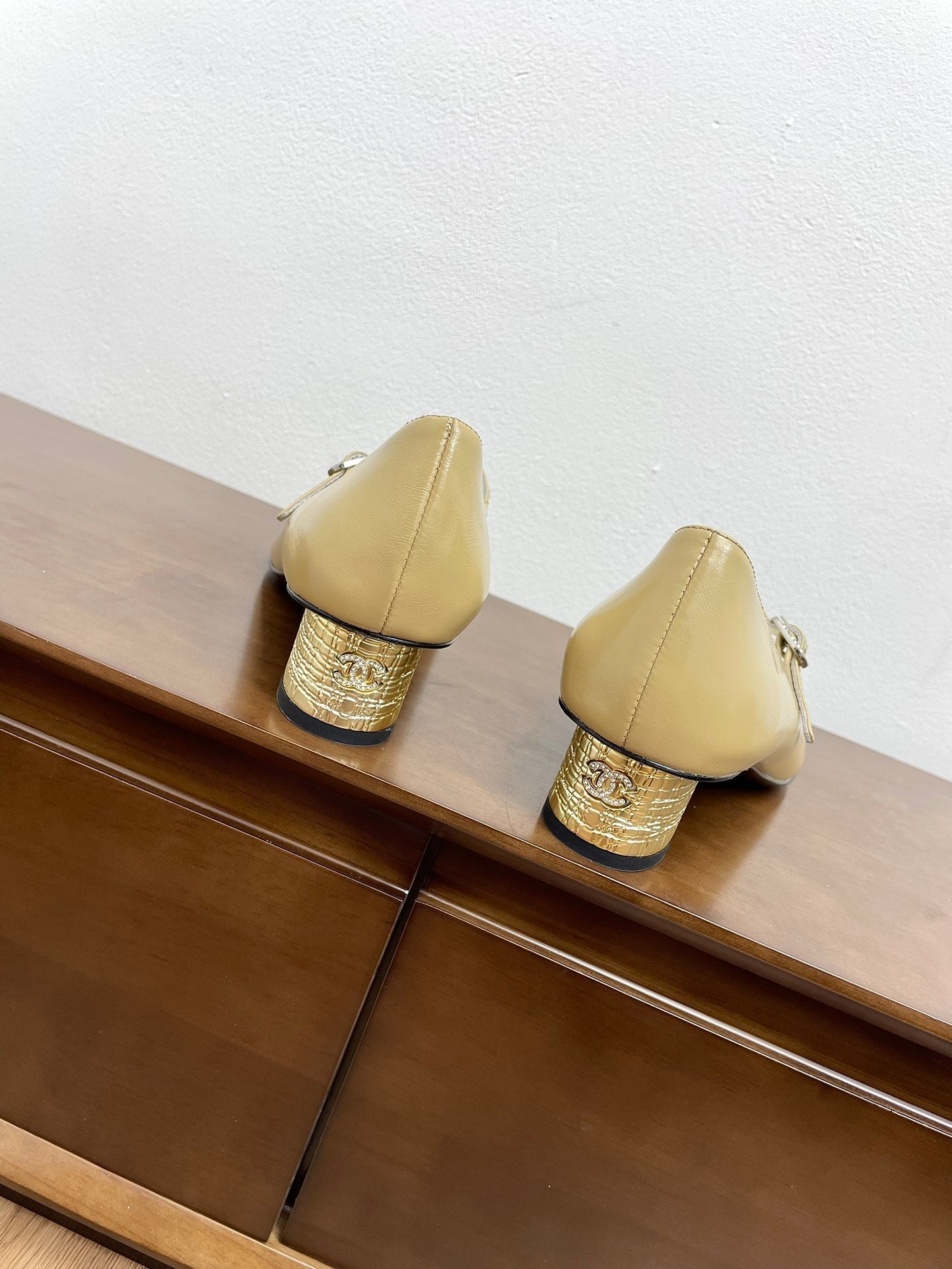 CC Ballet Flats 25mm Beige Bow Tie Chain Lambskin