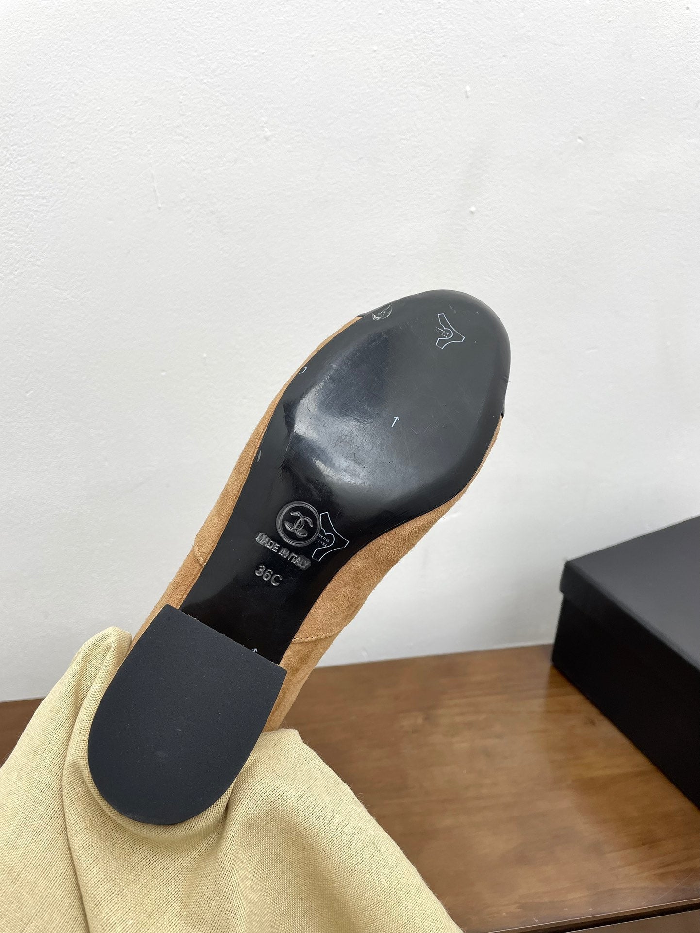CC Ballet Flats Dark Brown With Camellia Grey Suede