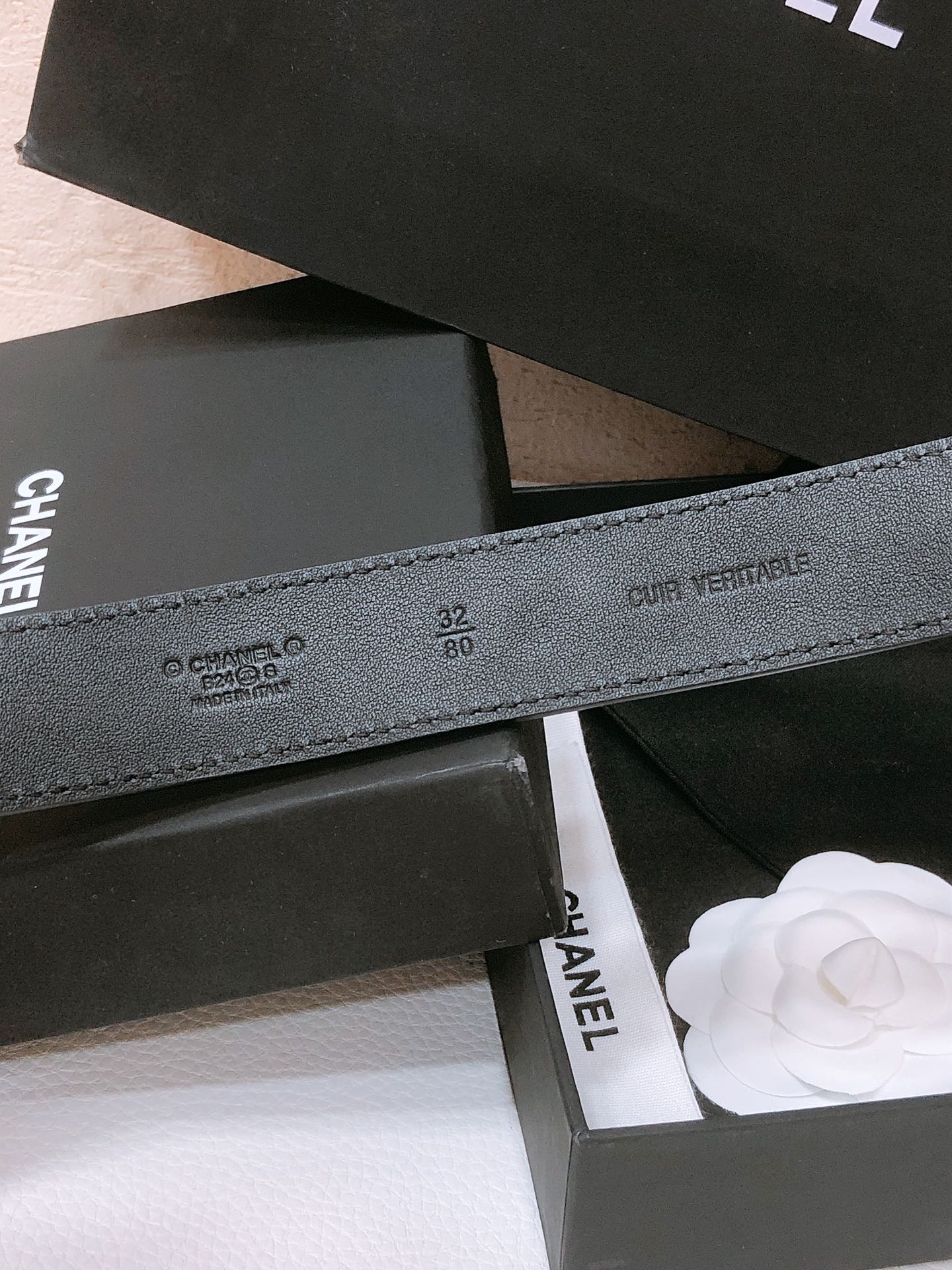 CHANEL BELT 3CM IN BLACK LAMBSKIN WITH GOLD HARDWARE LOGO