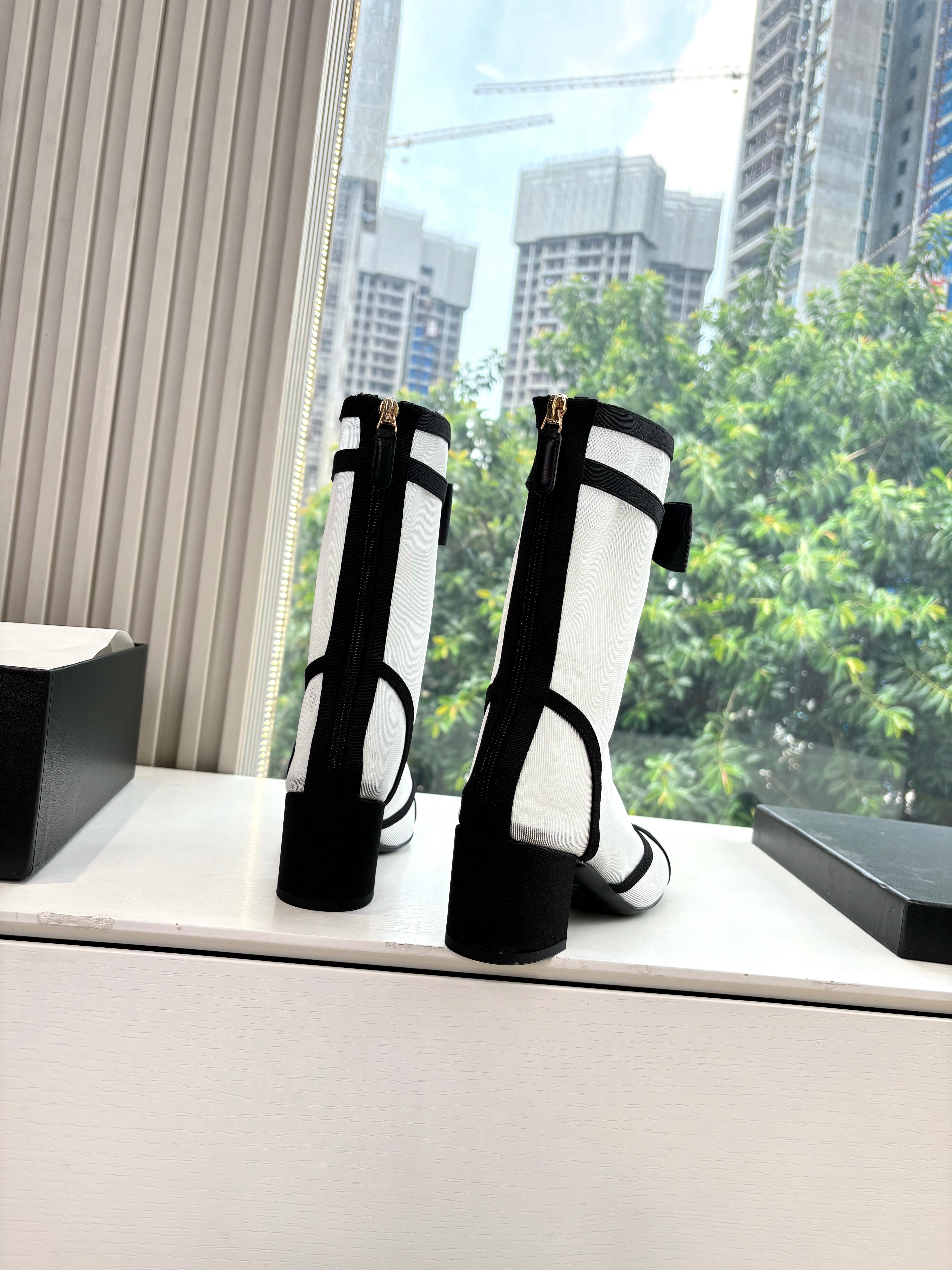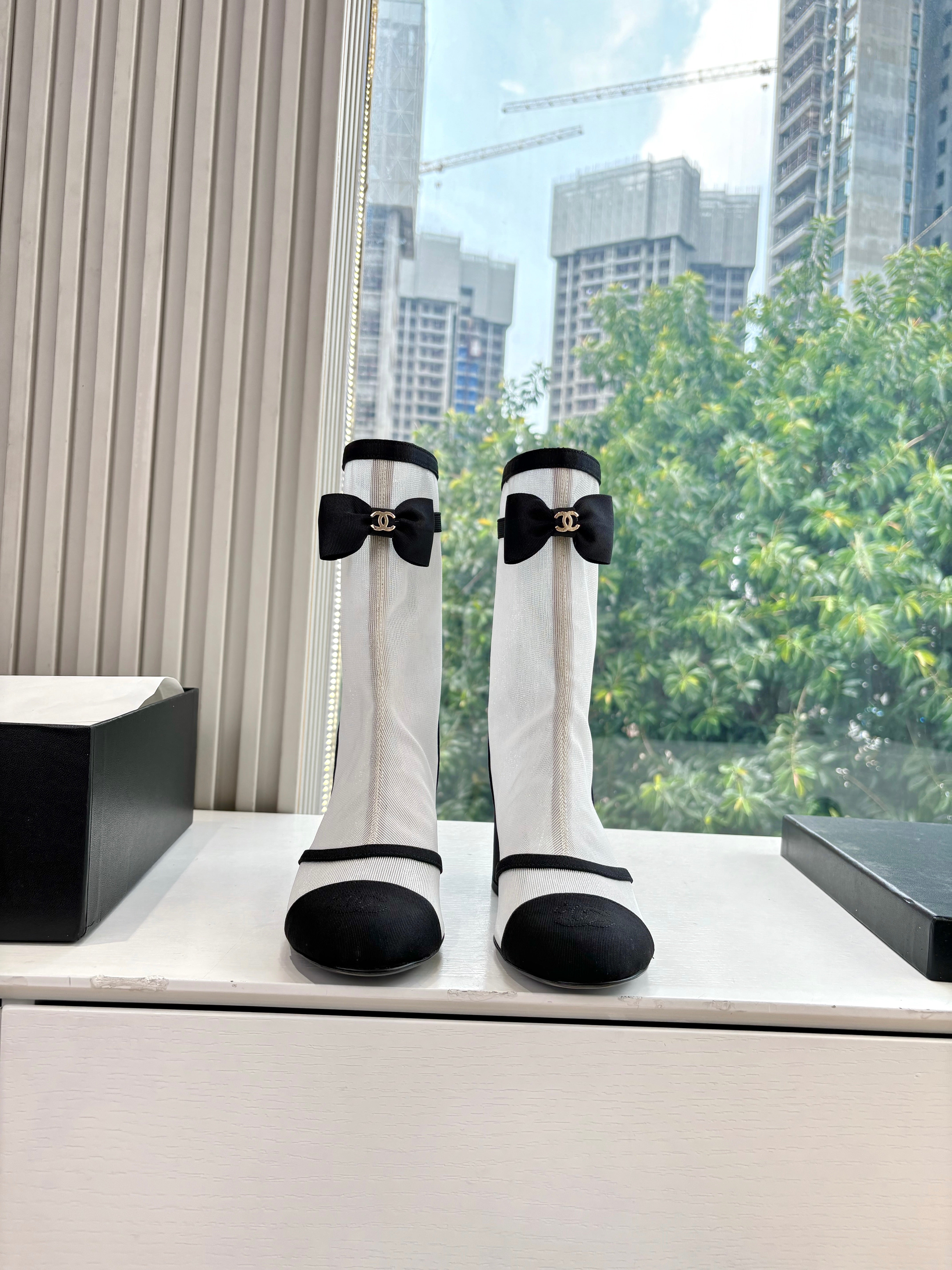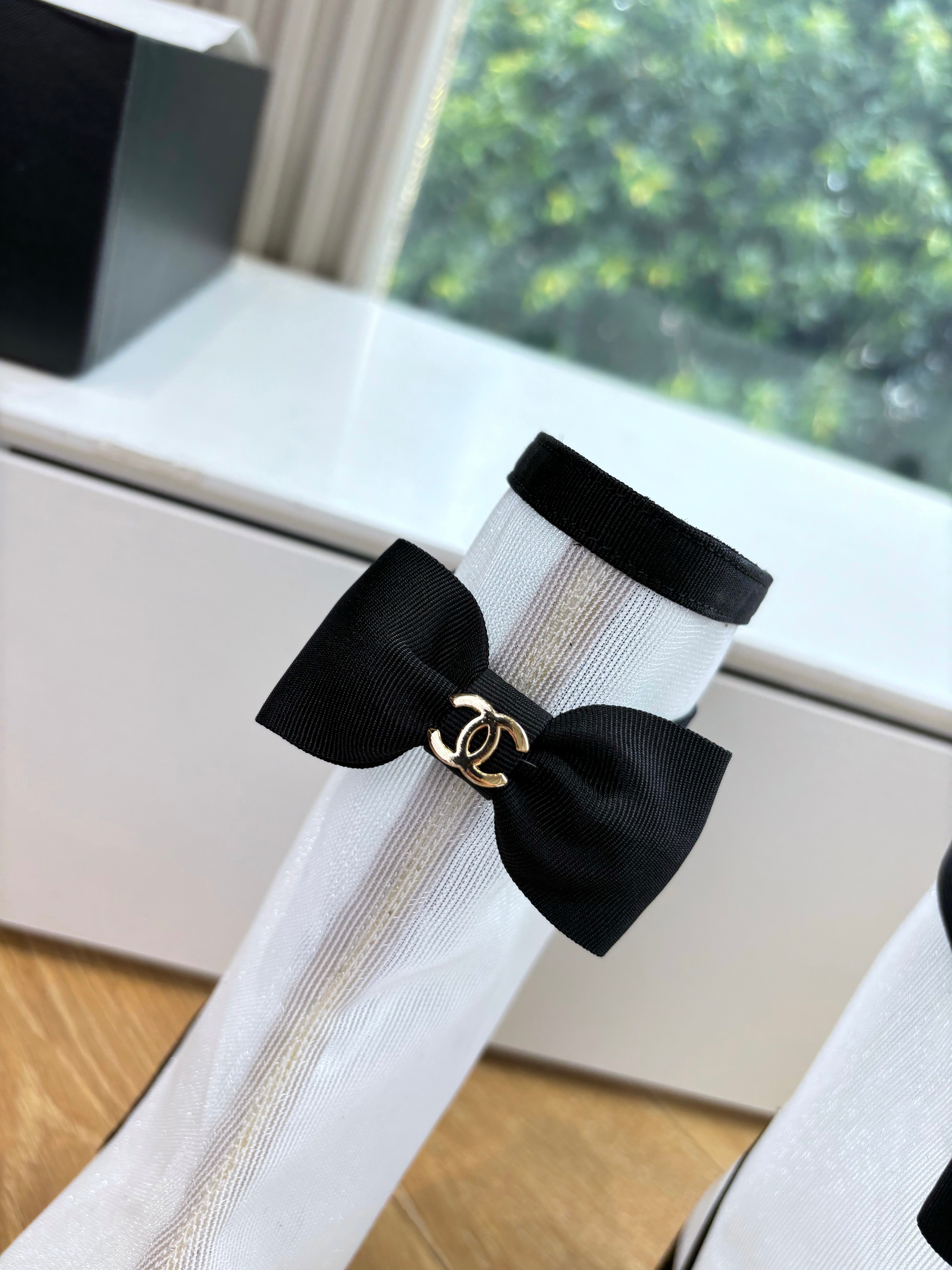 CC 25 Short Boot Black Mesh Calfskin Black Bow 430322