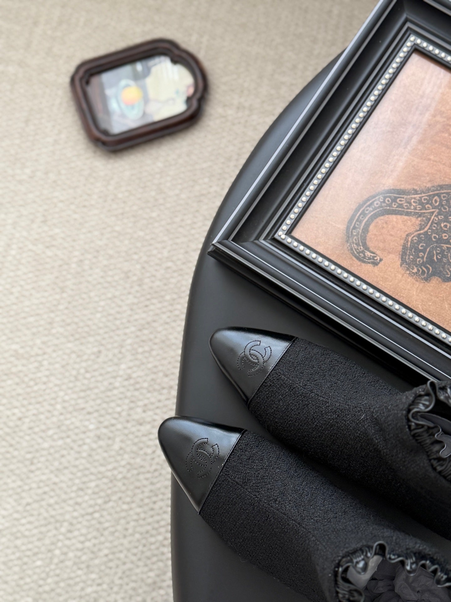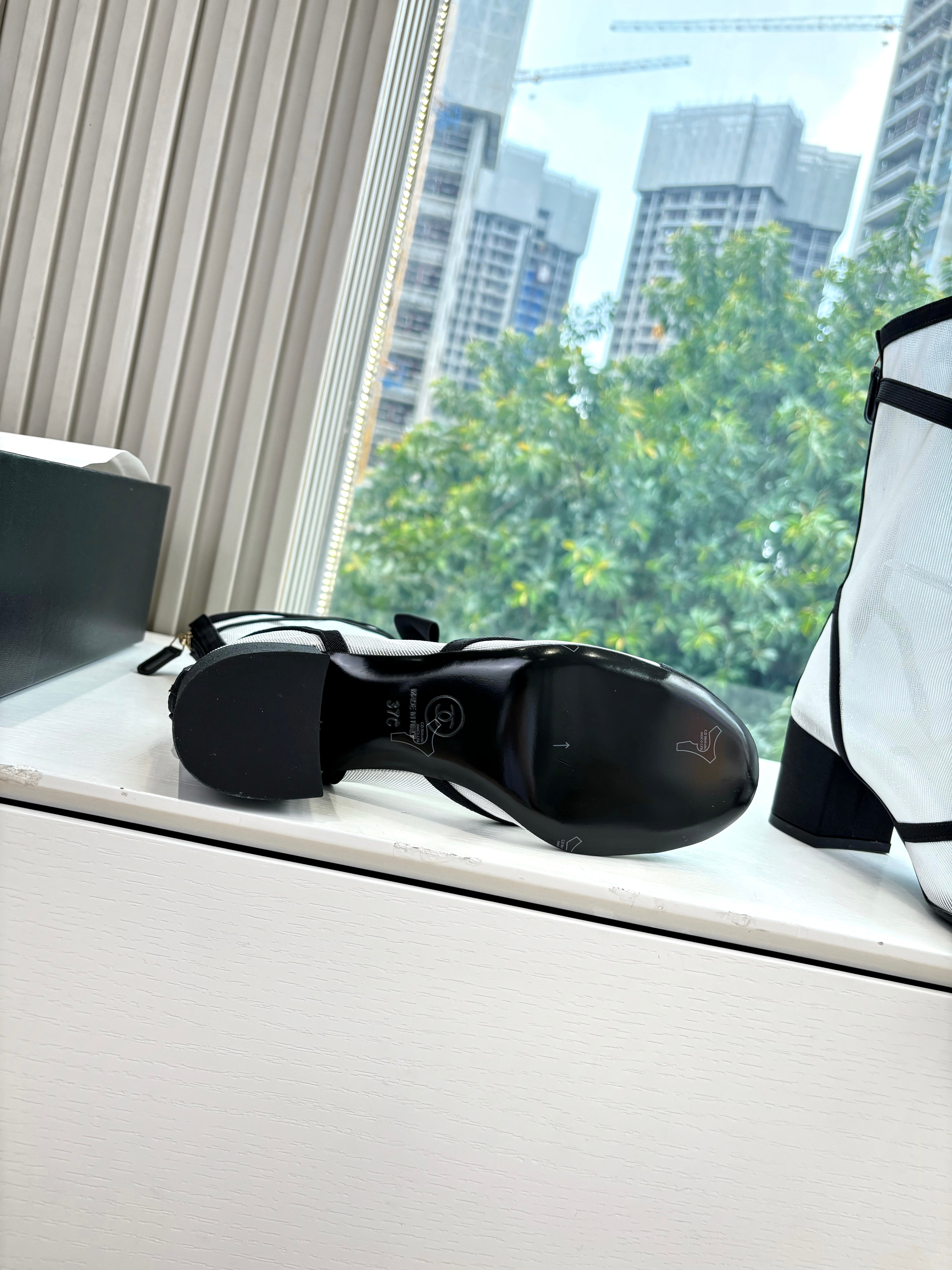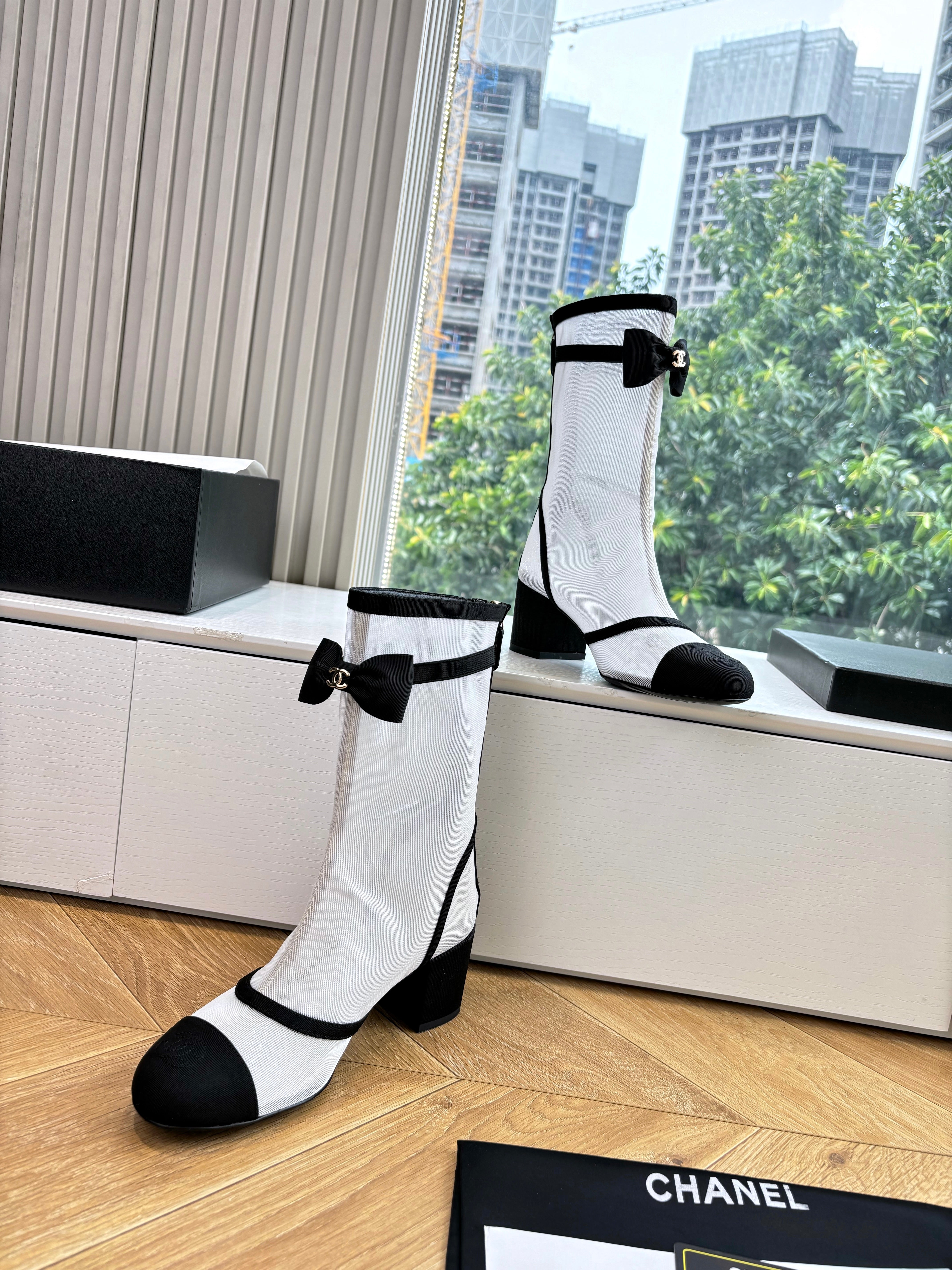 CC 25 Short Boot Black Mesh Calfskin Black Bow 430322