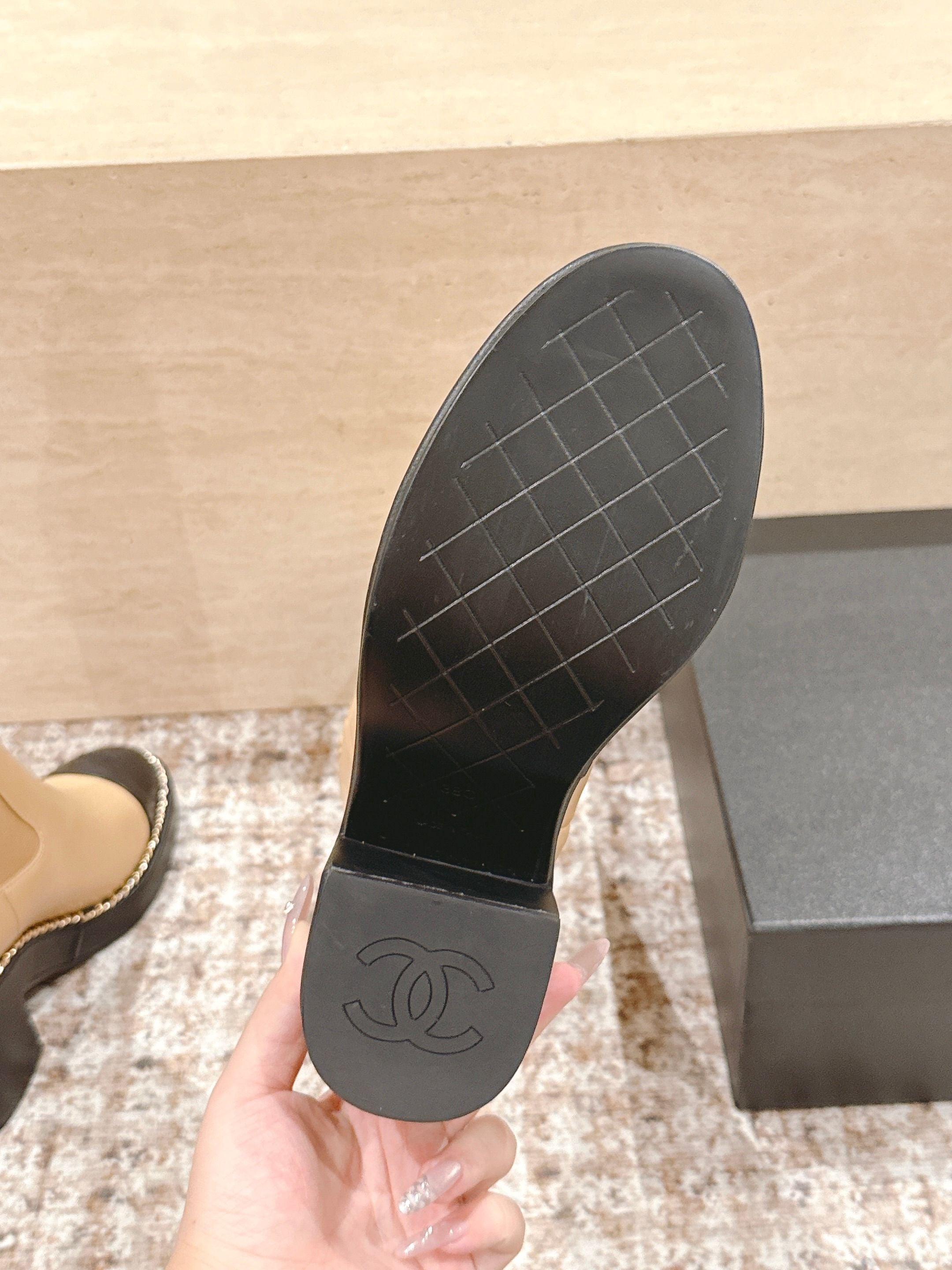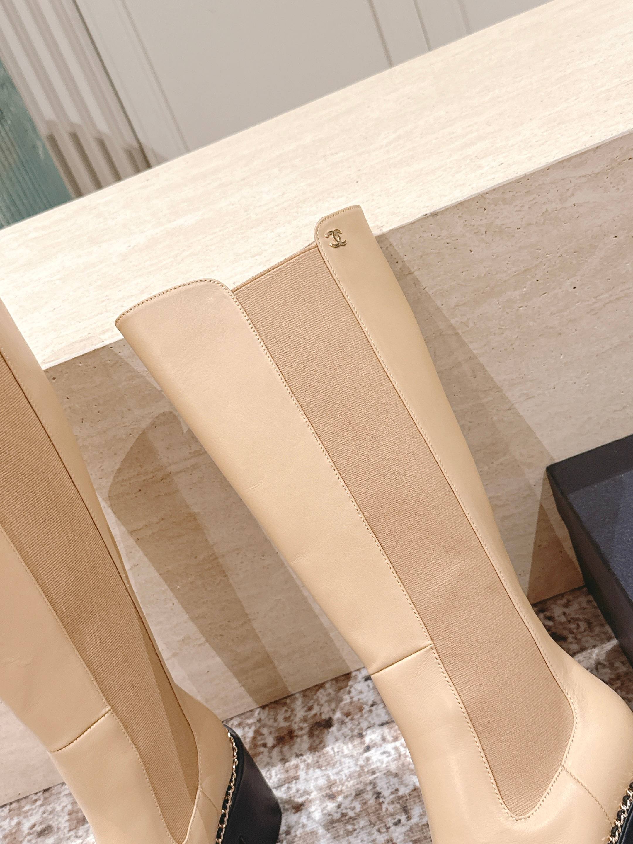 Chanel 25 Large Chain Flat-solved Boot Beige Black Lambskin 465421