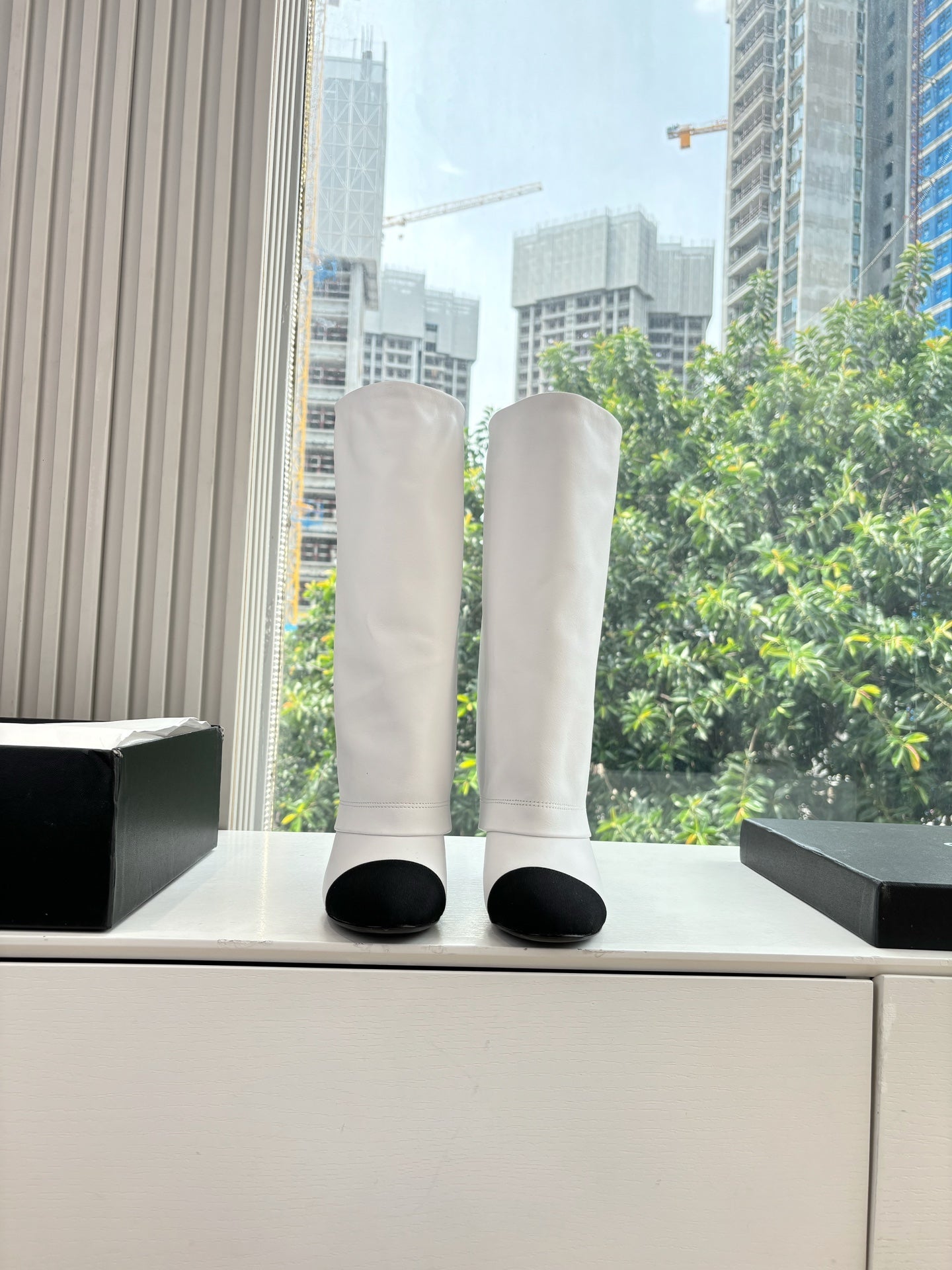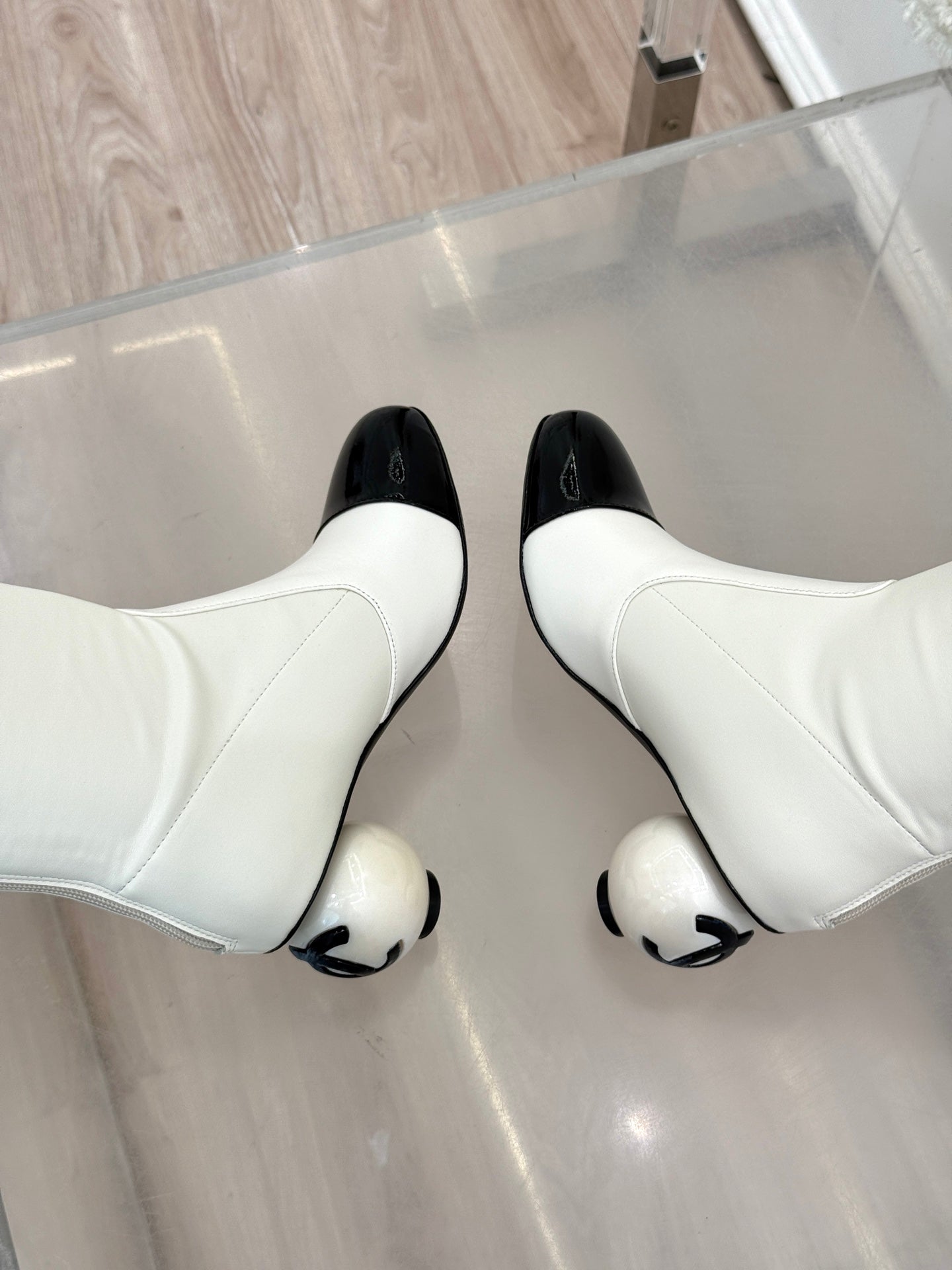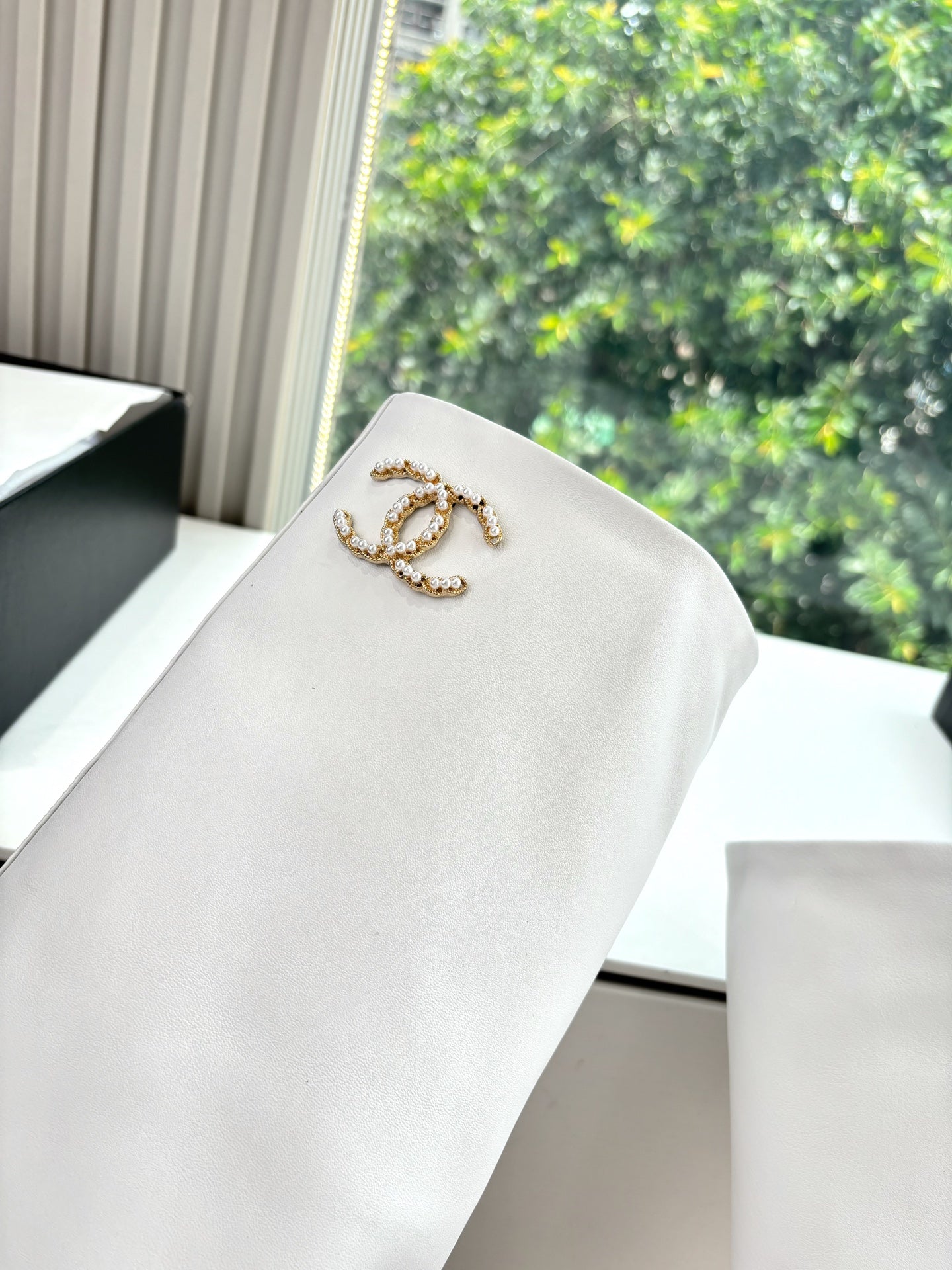 Chanel 25 Double C Giant Pearl Heel Long Boot White Black Sheepskin 465412