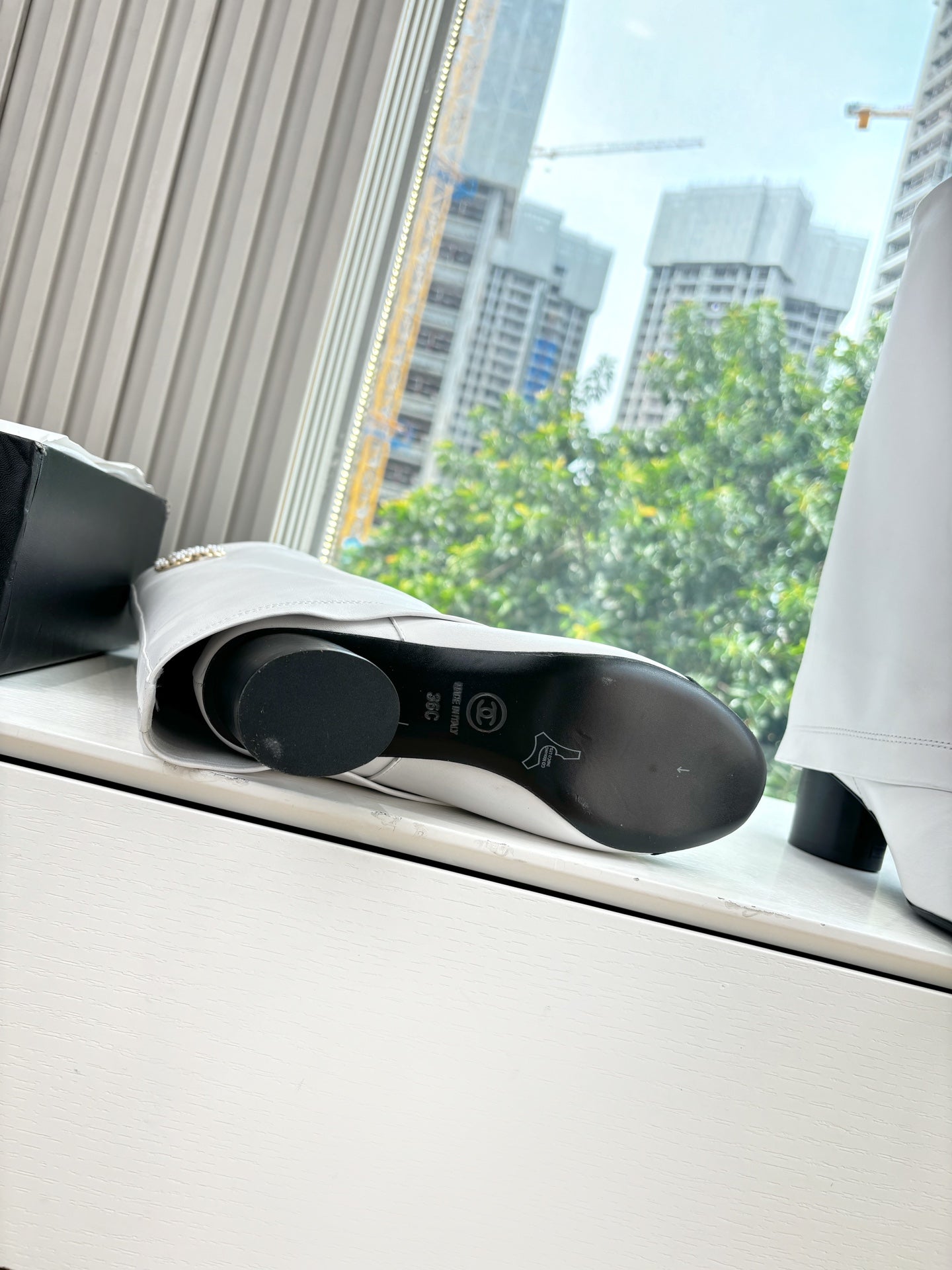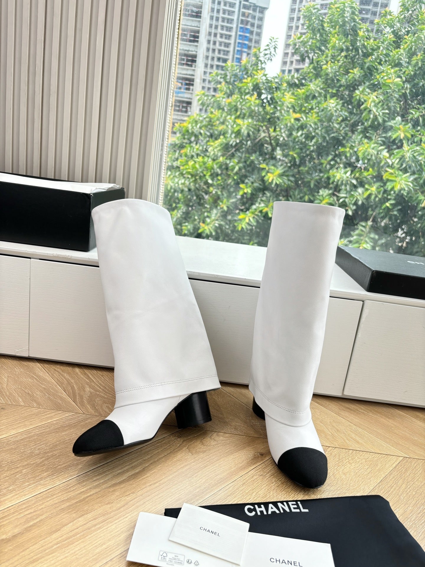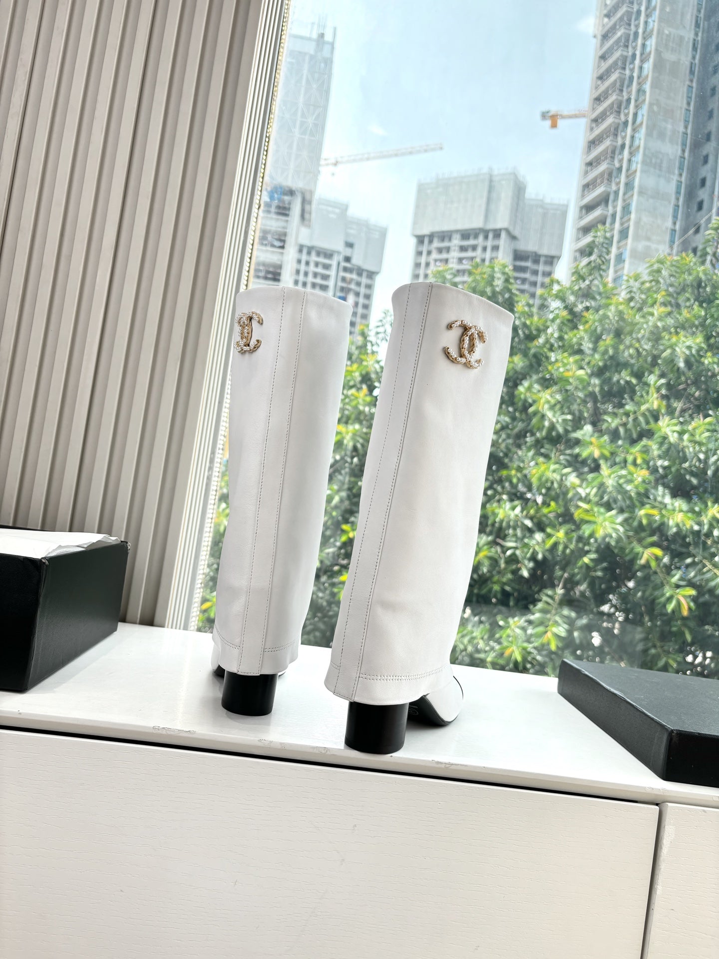 Chanel 25 Double C Giant Pearl Heel Long Boot White Black Sheepskin 465412