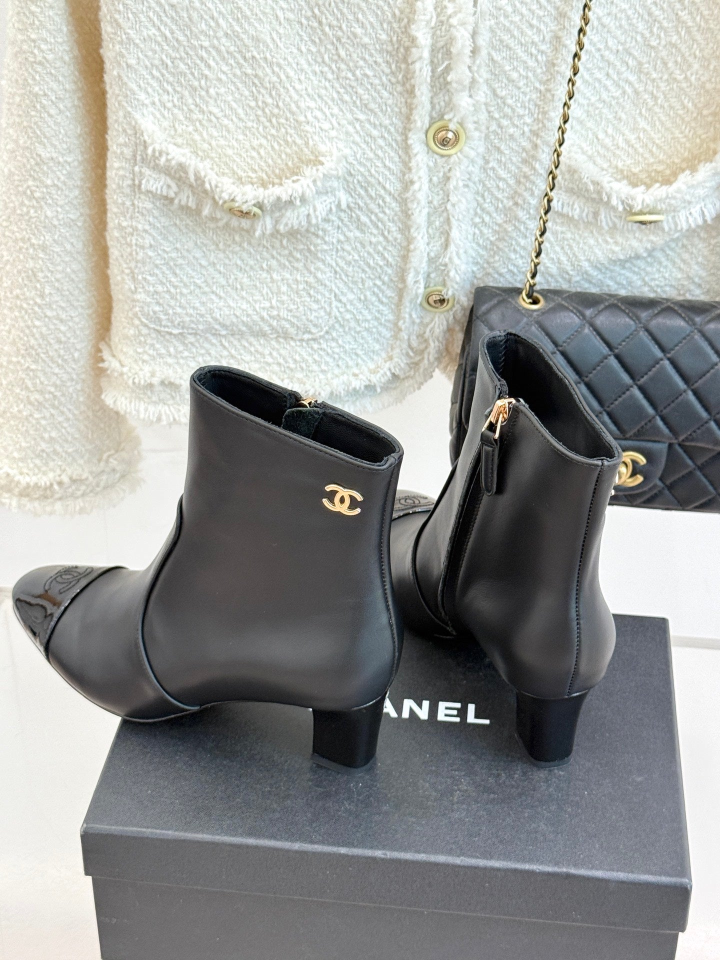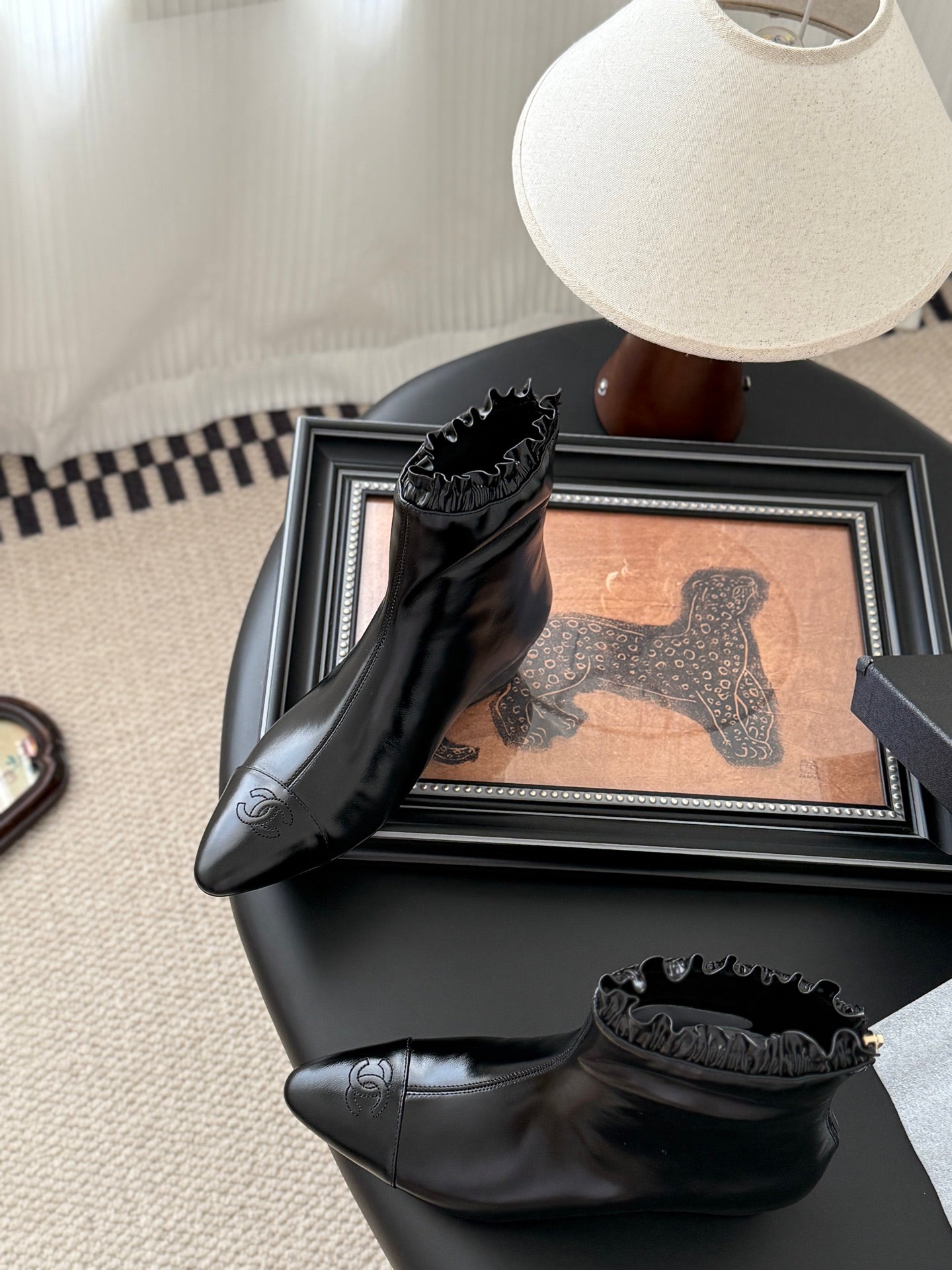 CC 25 Short Boot Black Calfskin Black Bow 430319