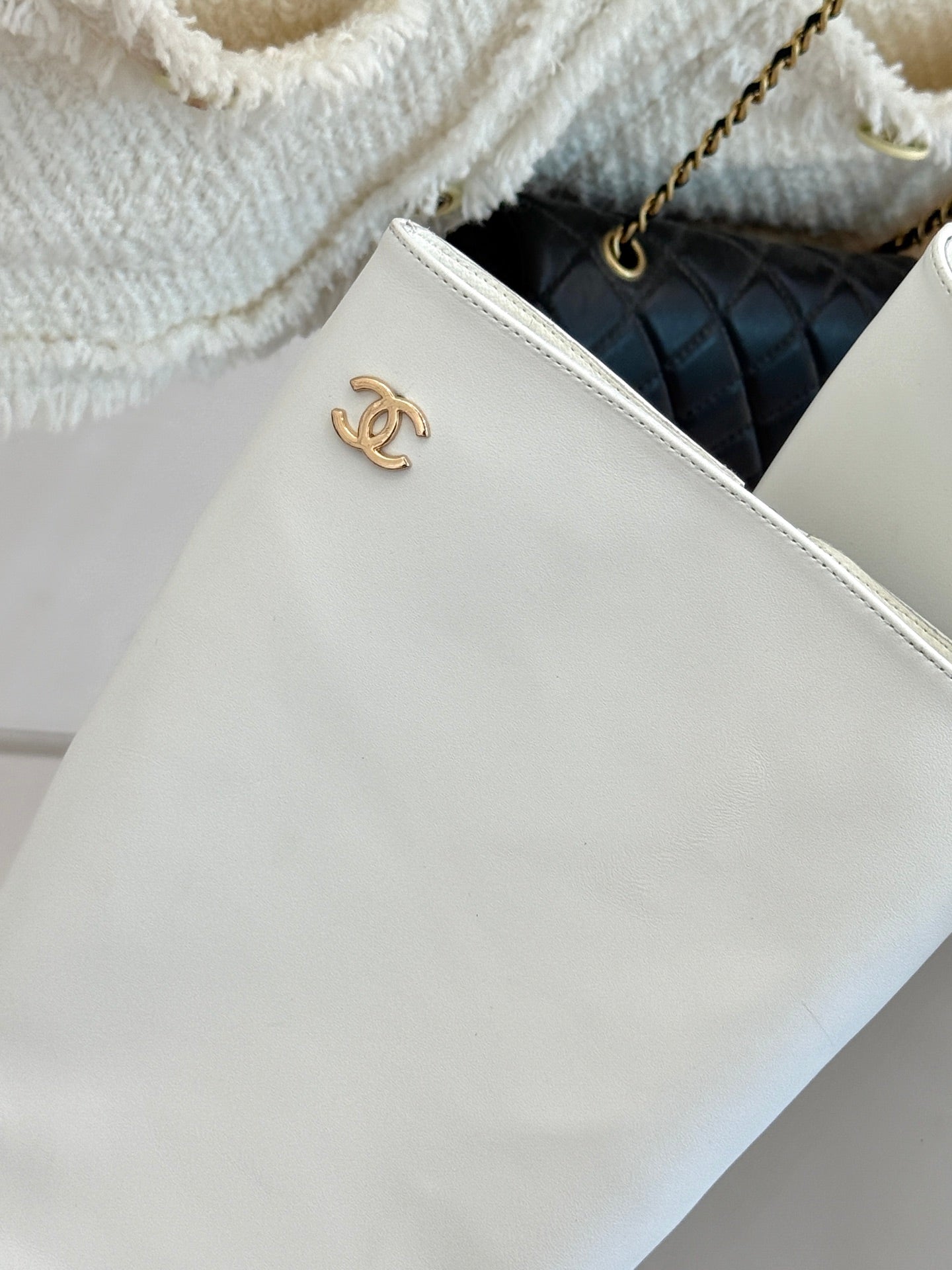 Chanel 25 Large Chain Flat-solved Boot White Lambskin 465420