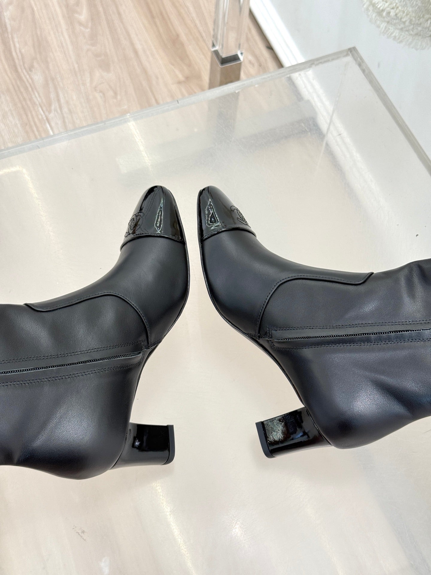 Chanel Double C Colorblock Heel Boot Black Sheepskin 465416