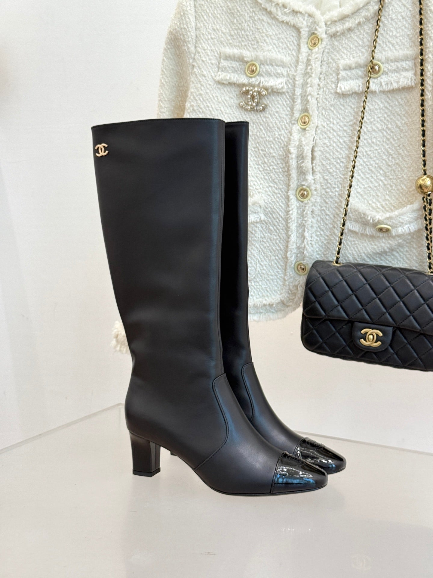 CC 25 High Boot Black Calfskin Grosgrain 430335