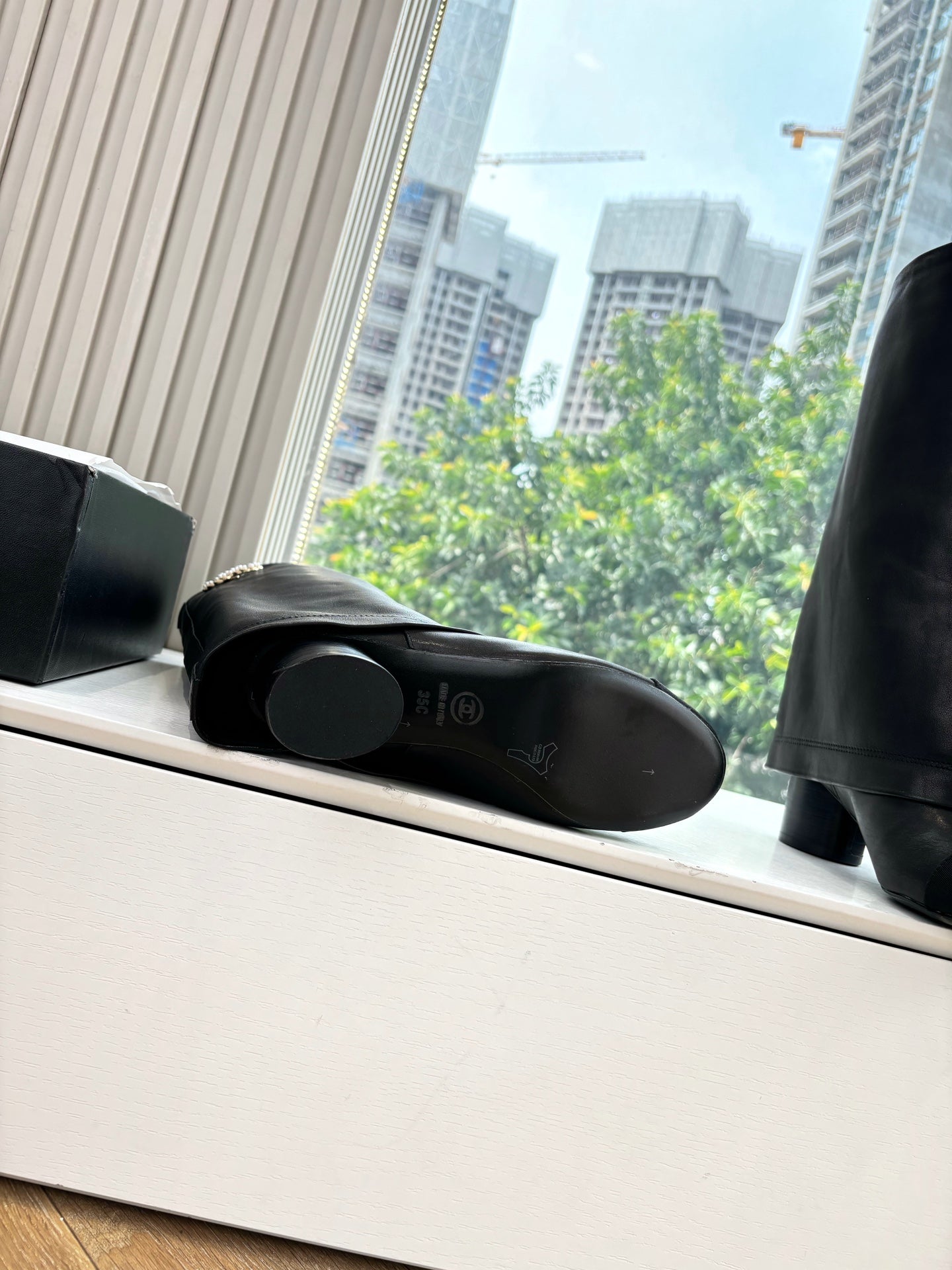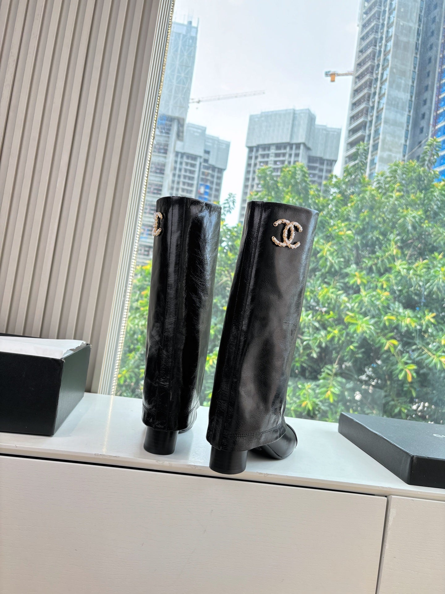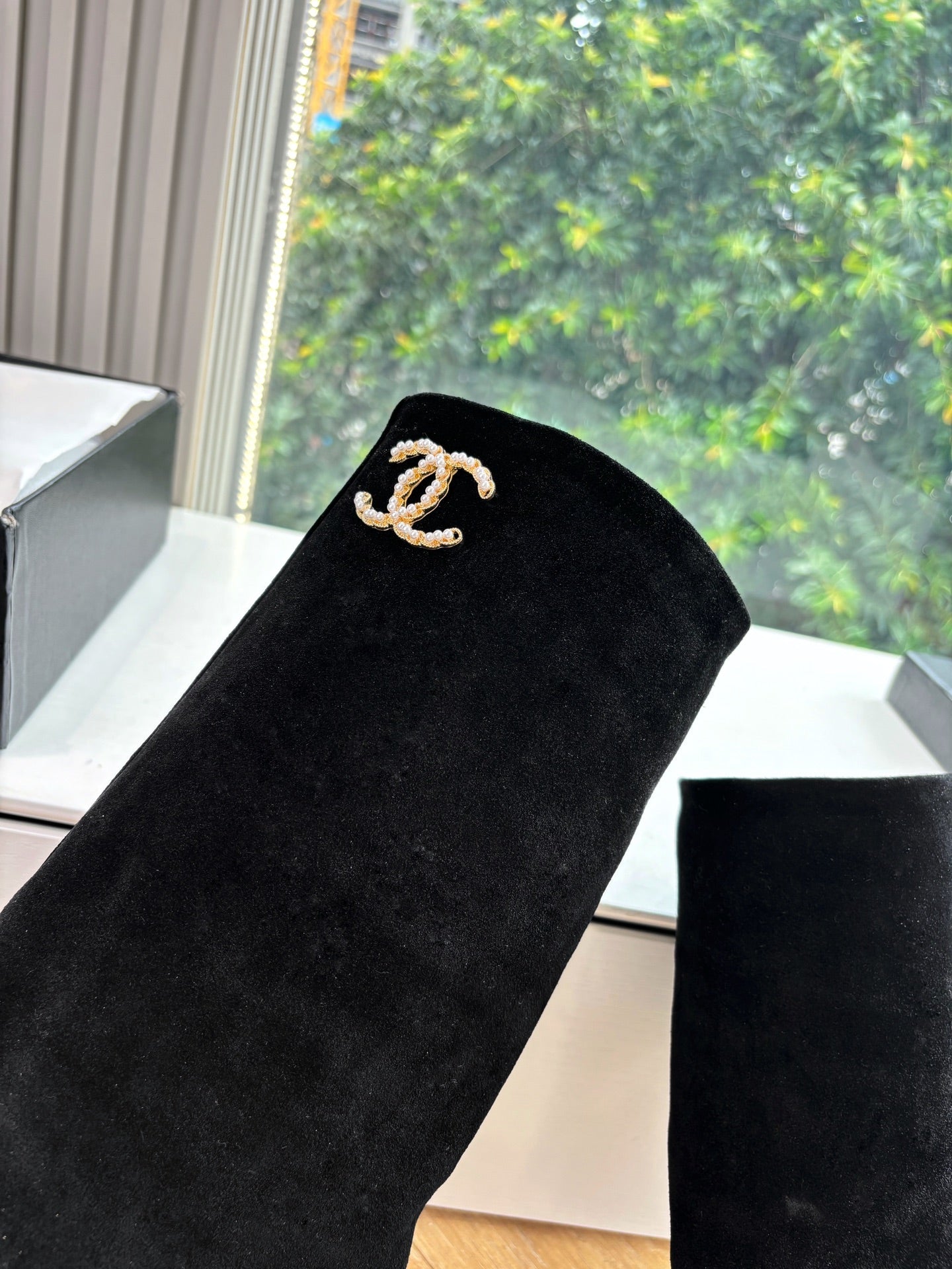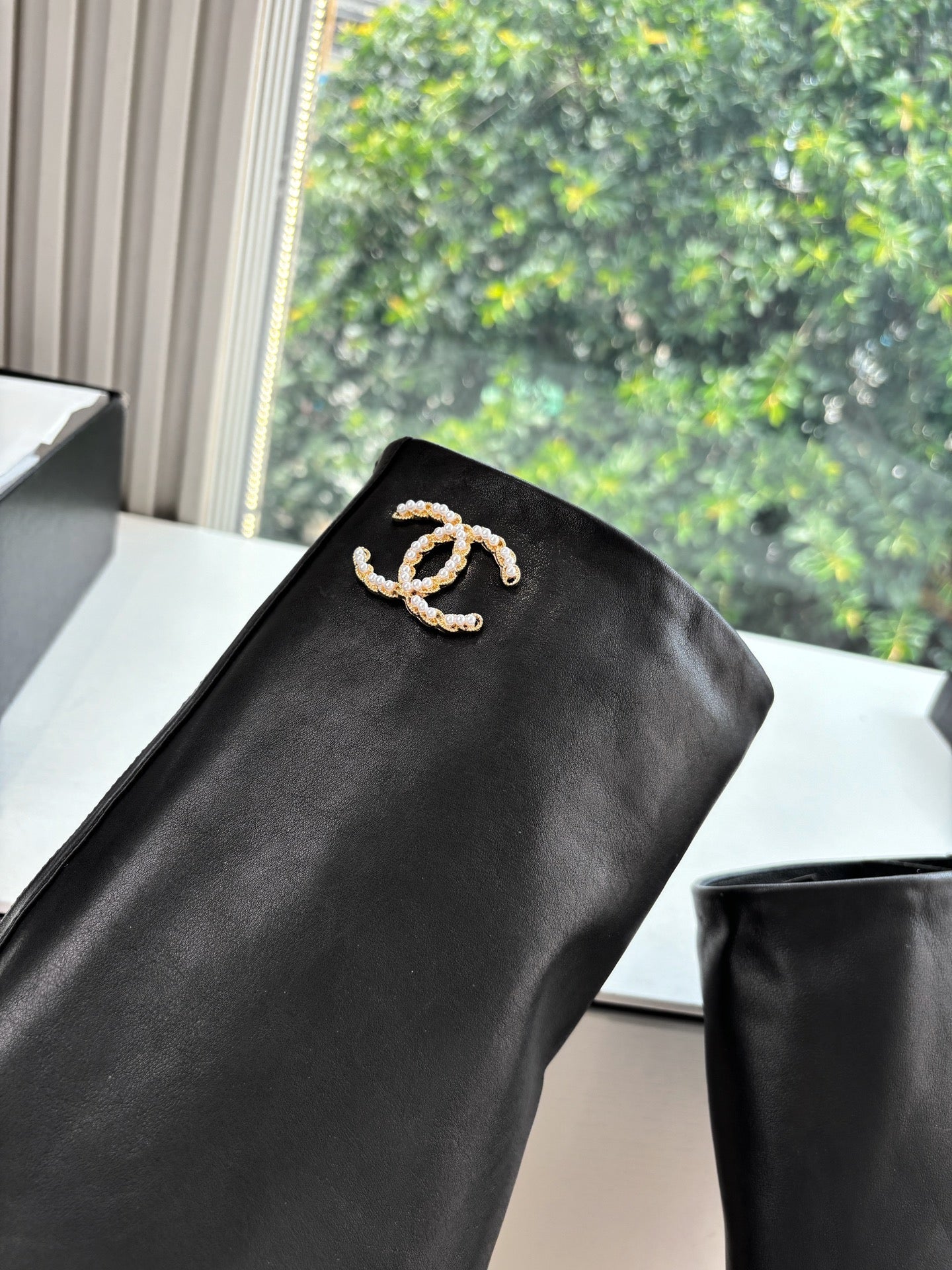 Chanel 25 Double C Giant Pearl Heel Long Boot Black White Sheepskin 465413