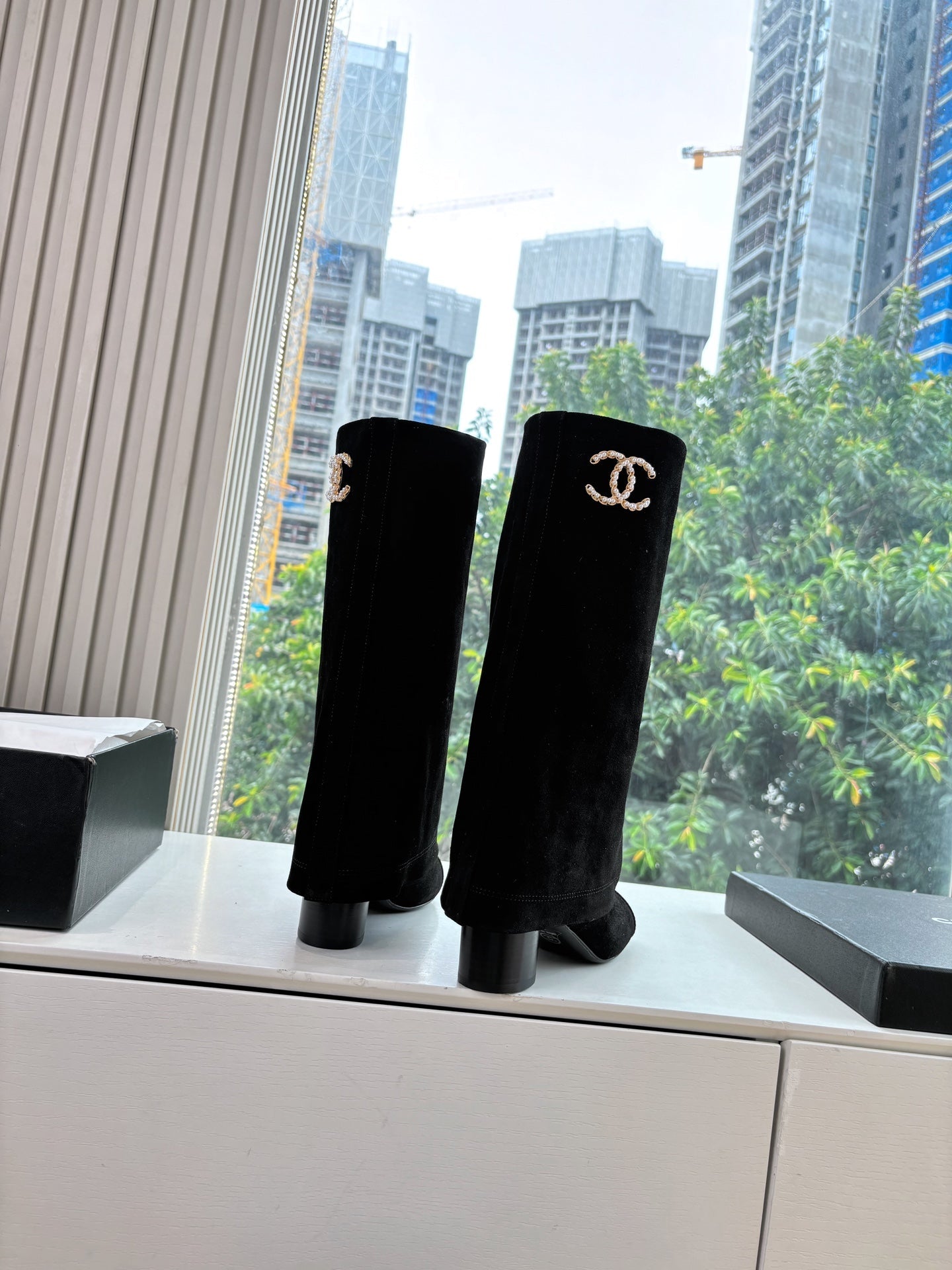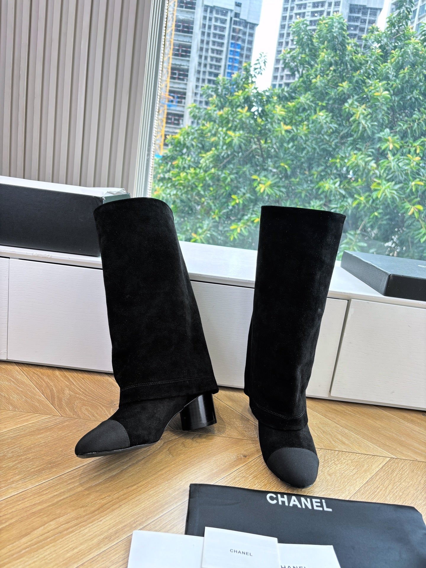 Chanel Double C Colorblock Heel Long Boot Black Sheepskin 465417