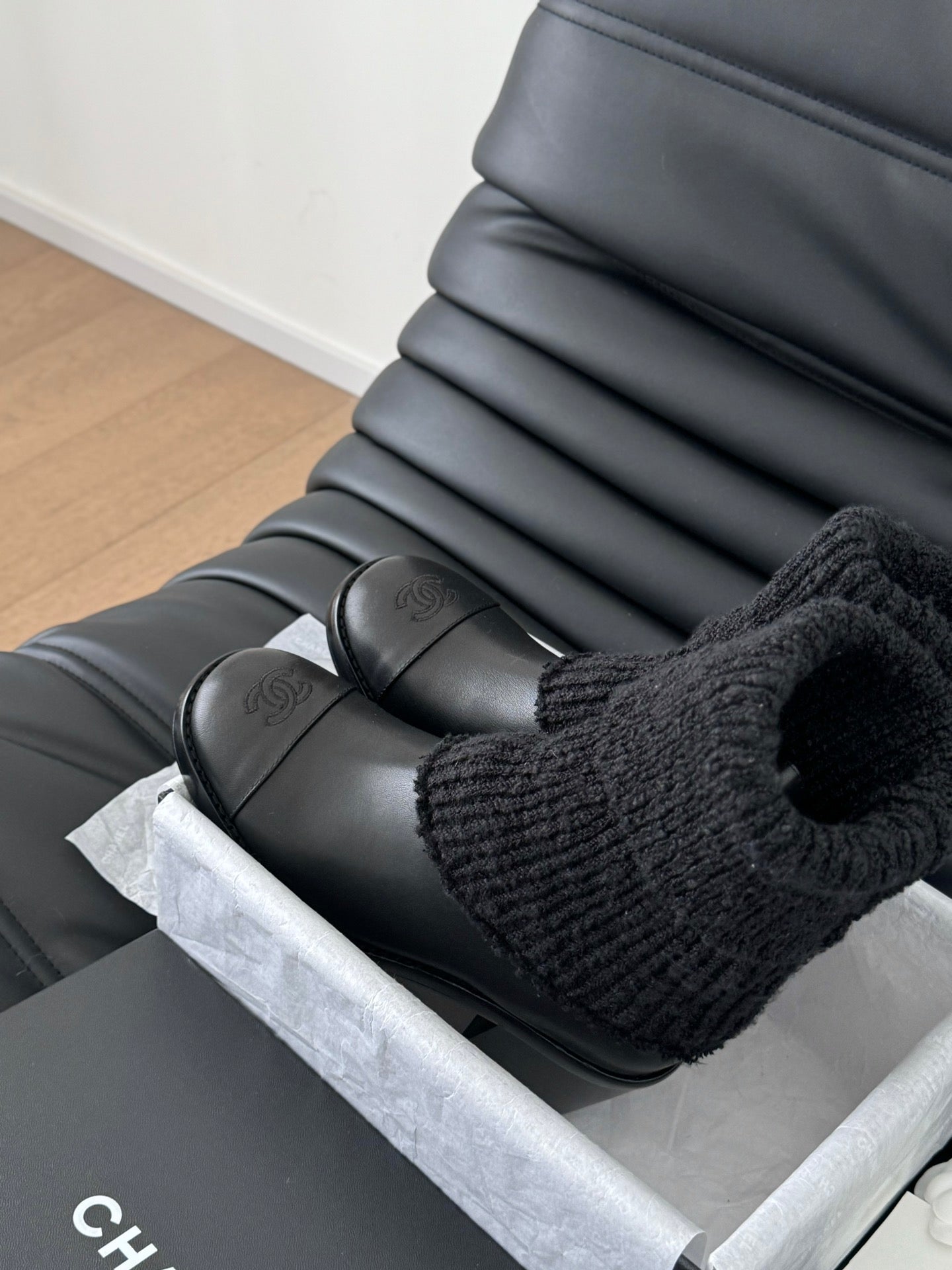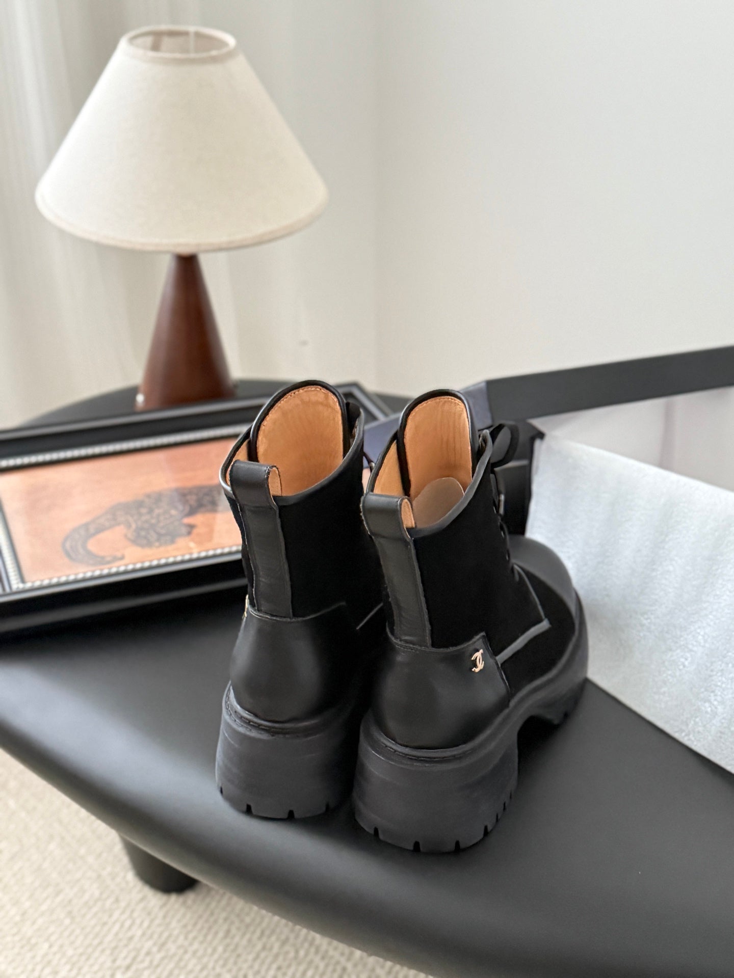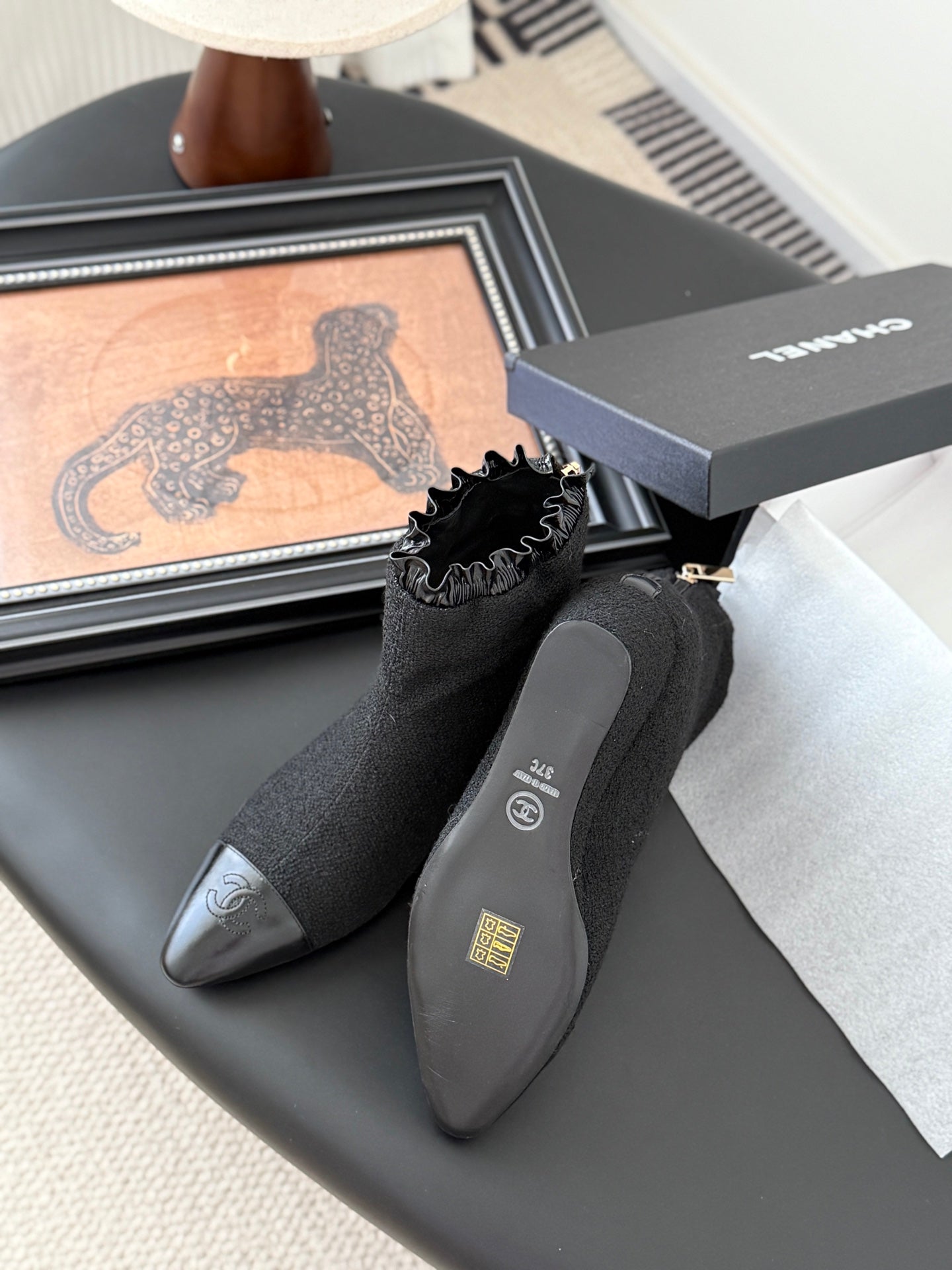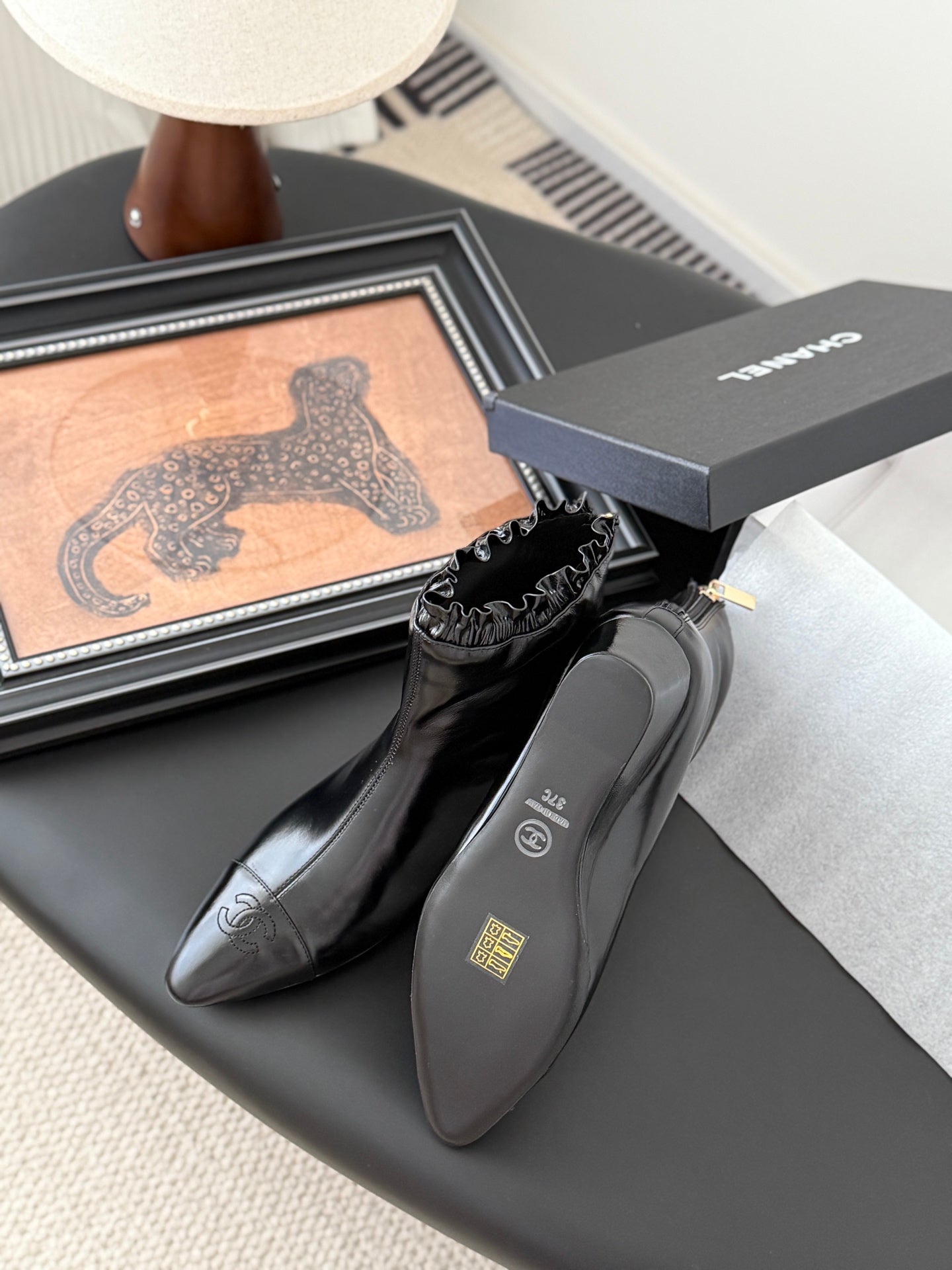 Chanel 25 Large Chain Flat-solved Boot Black Lambskin 465422