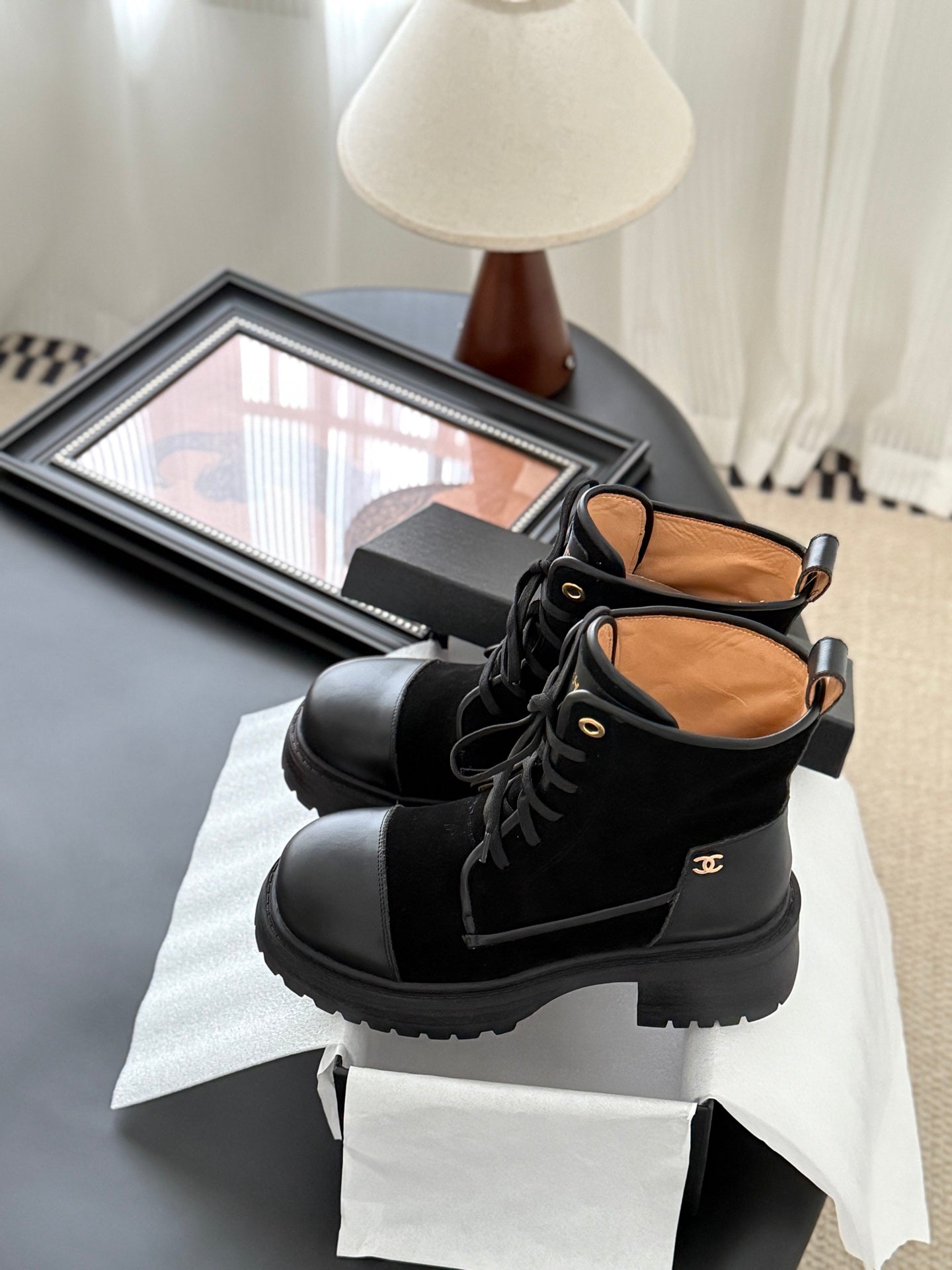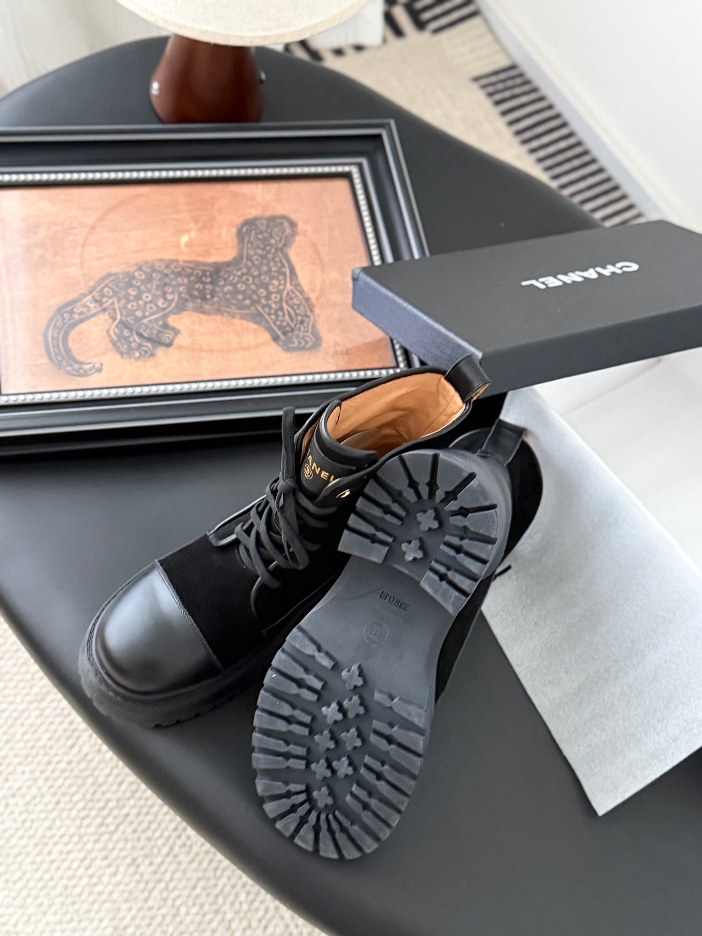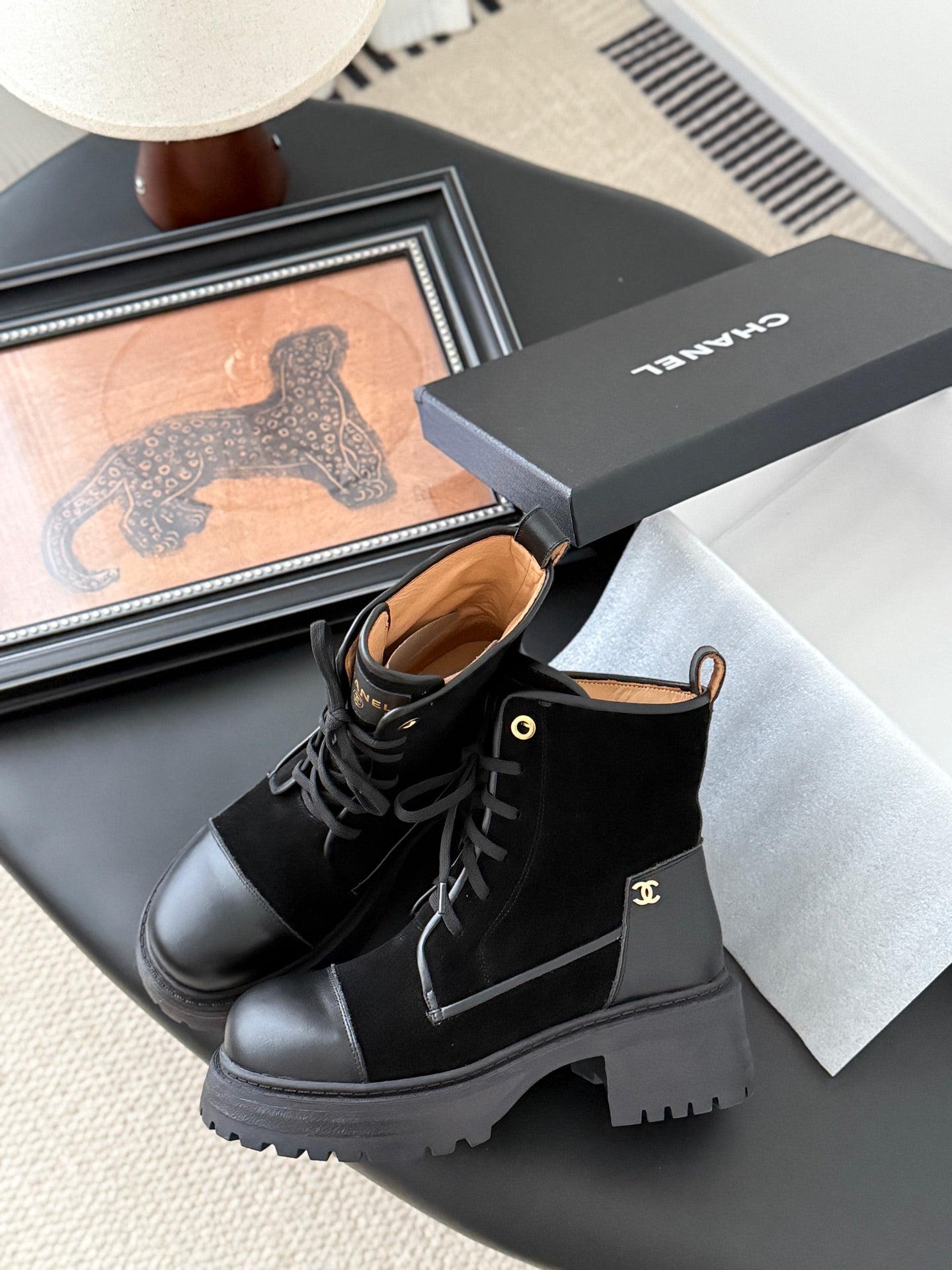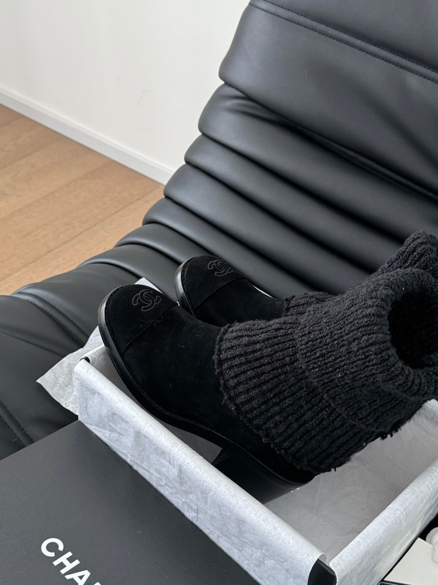 Chanel 25 Large Chain Flat-solved Boot Black Lambskin 465422