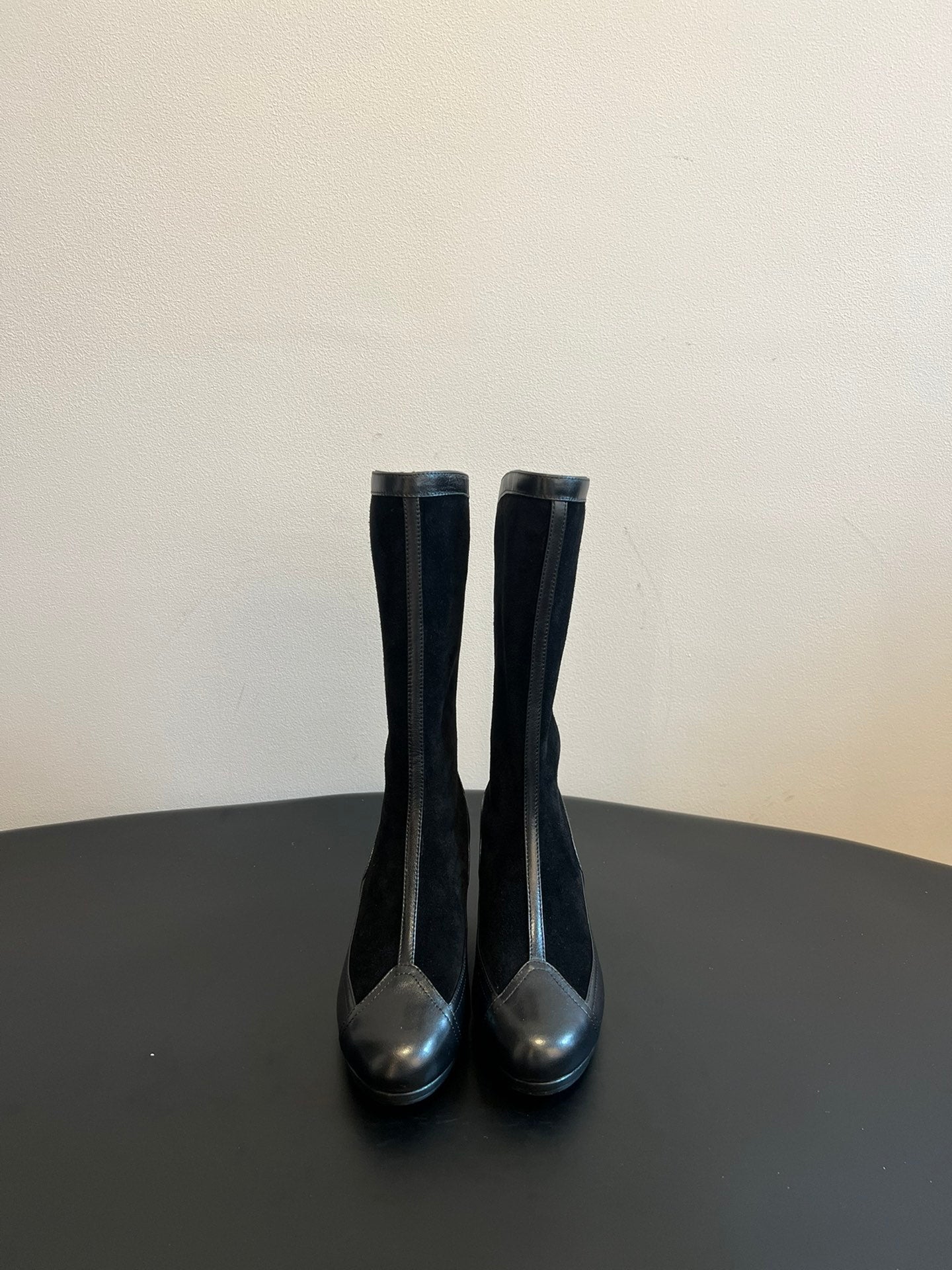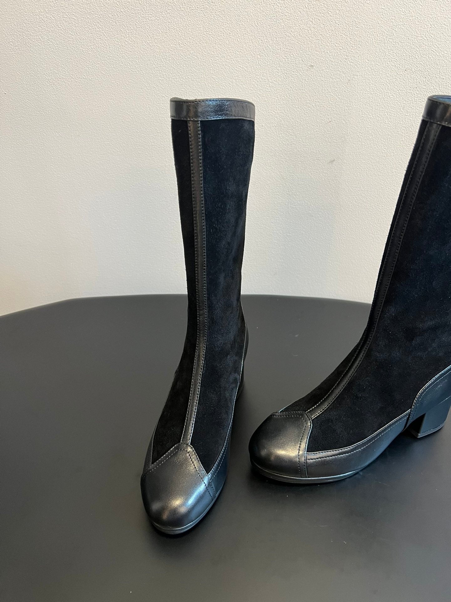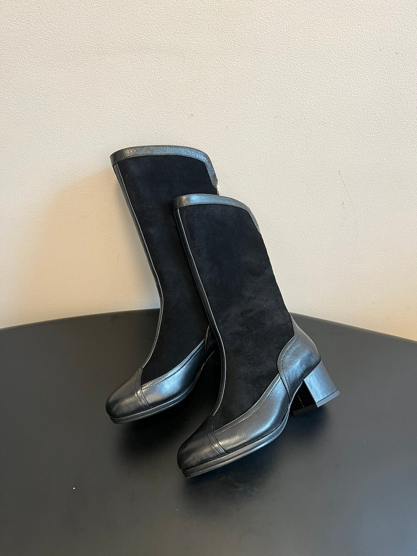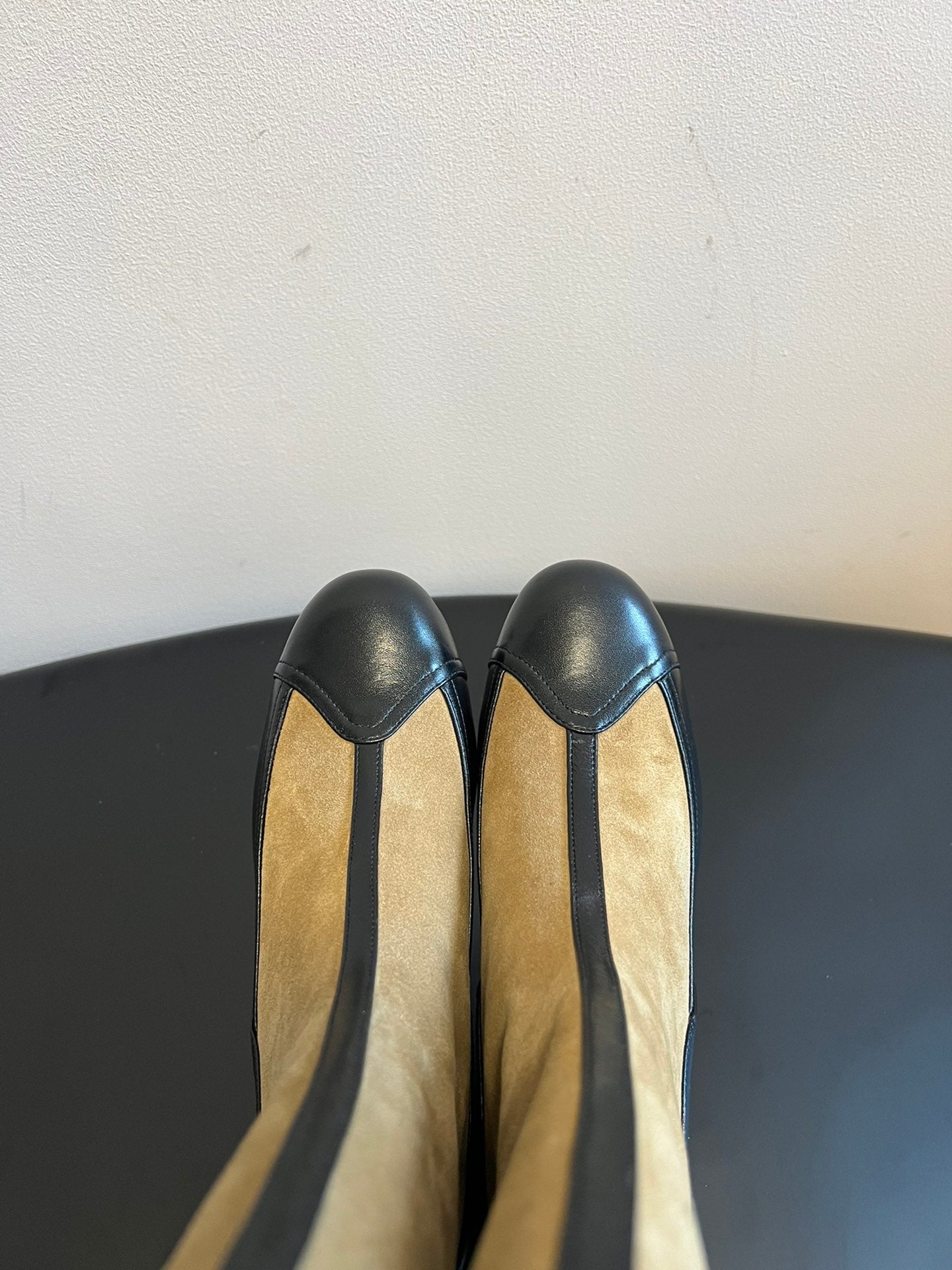 SHORT BOOTS BEIGE CREAM MIX BLACK SUEDE LAMBSKIN