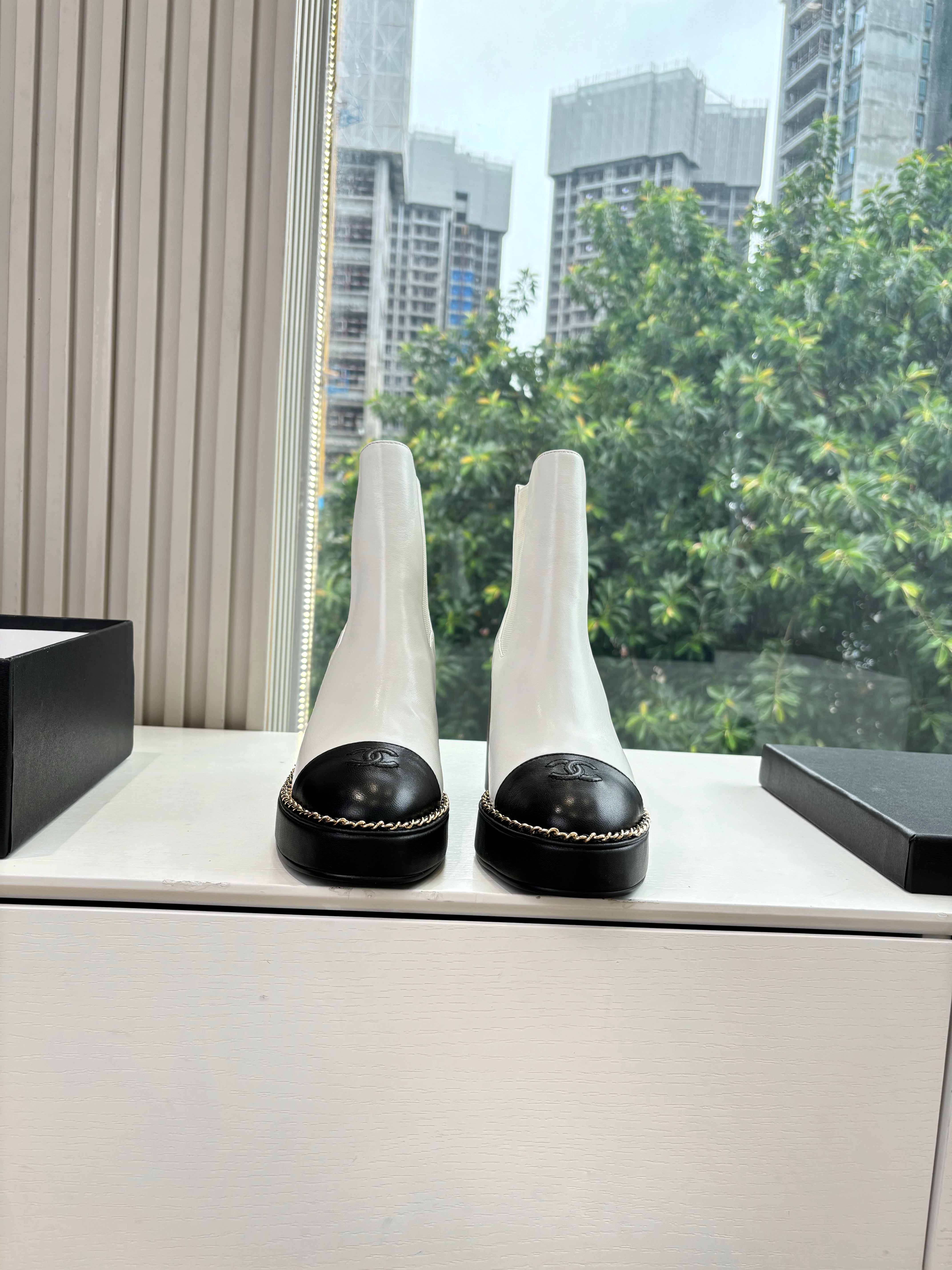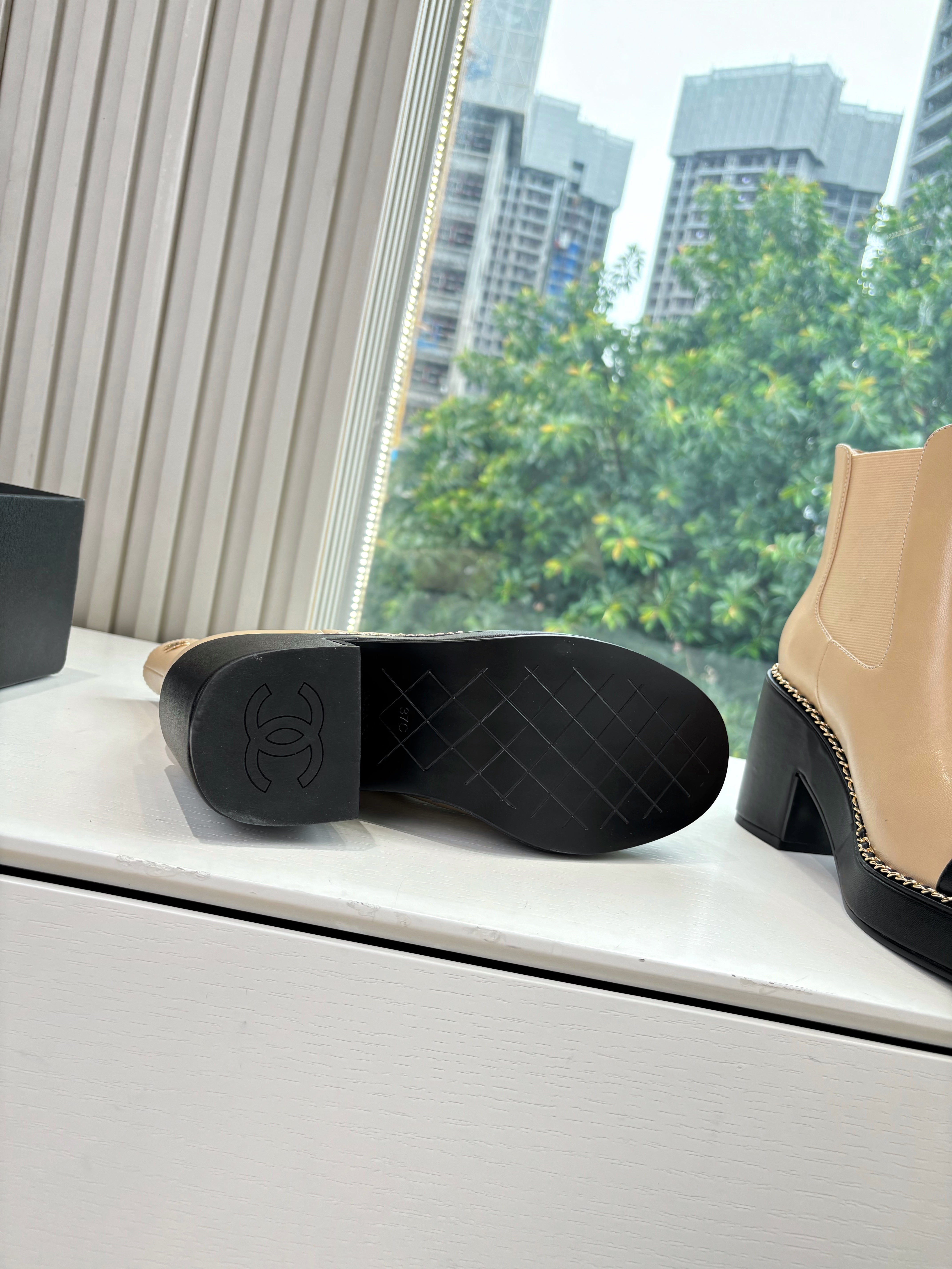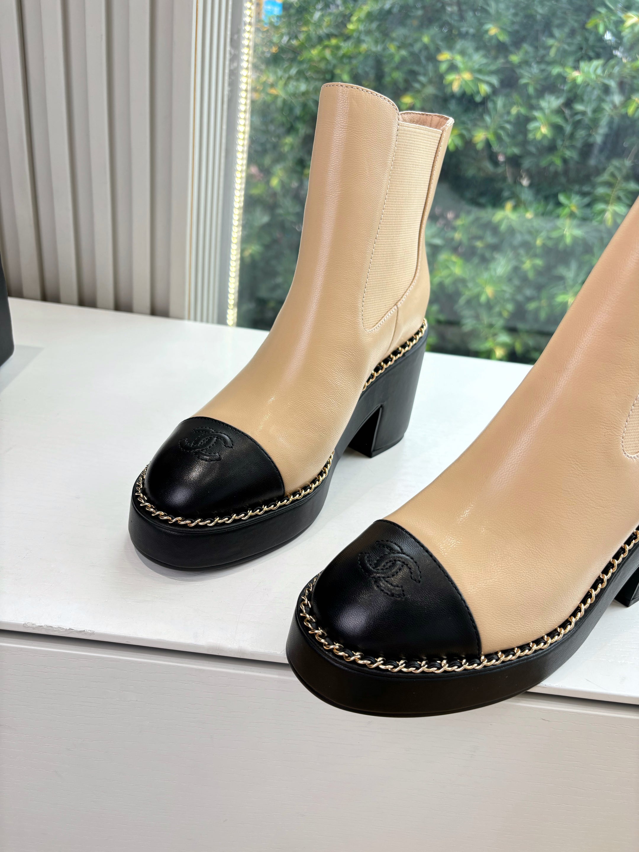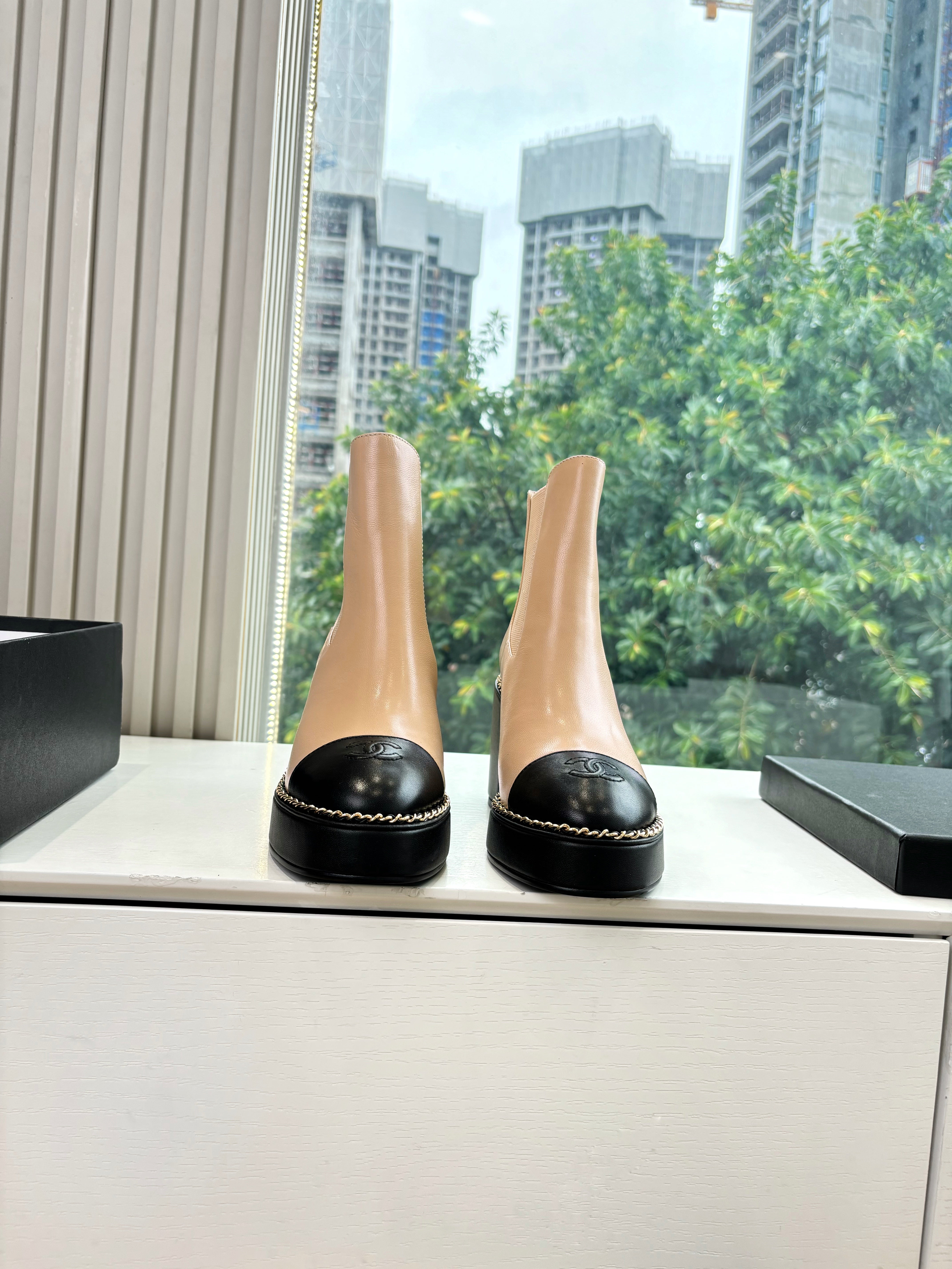 Chanel 25A Winter New Low Boots Black Beige Cowhide 393515