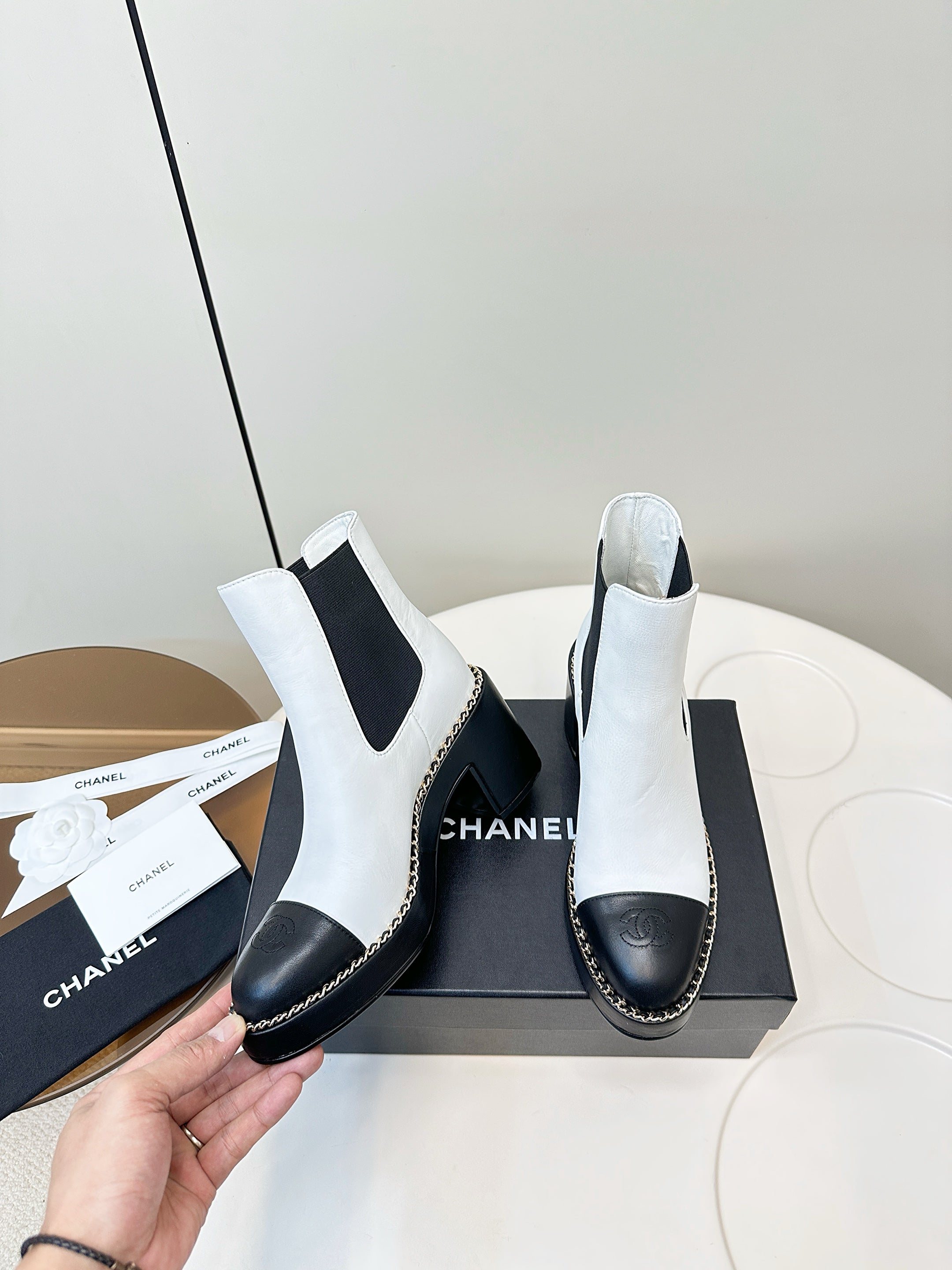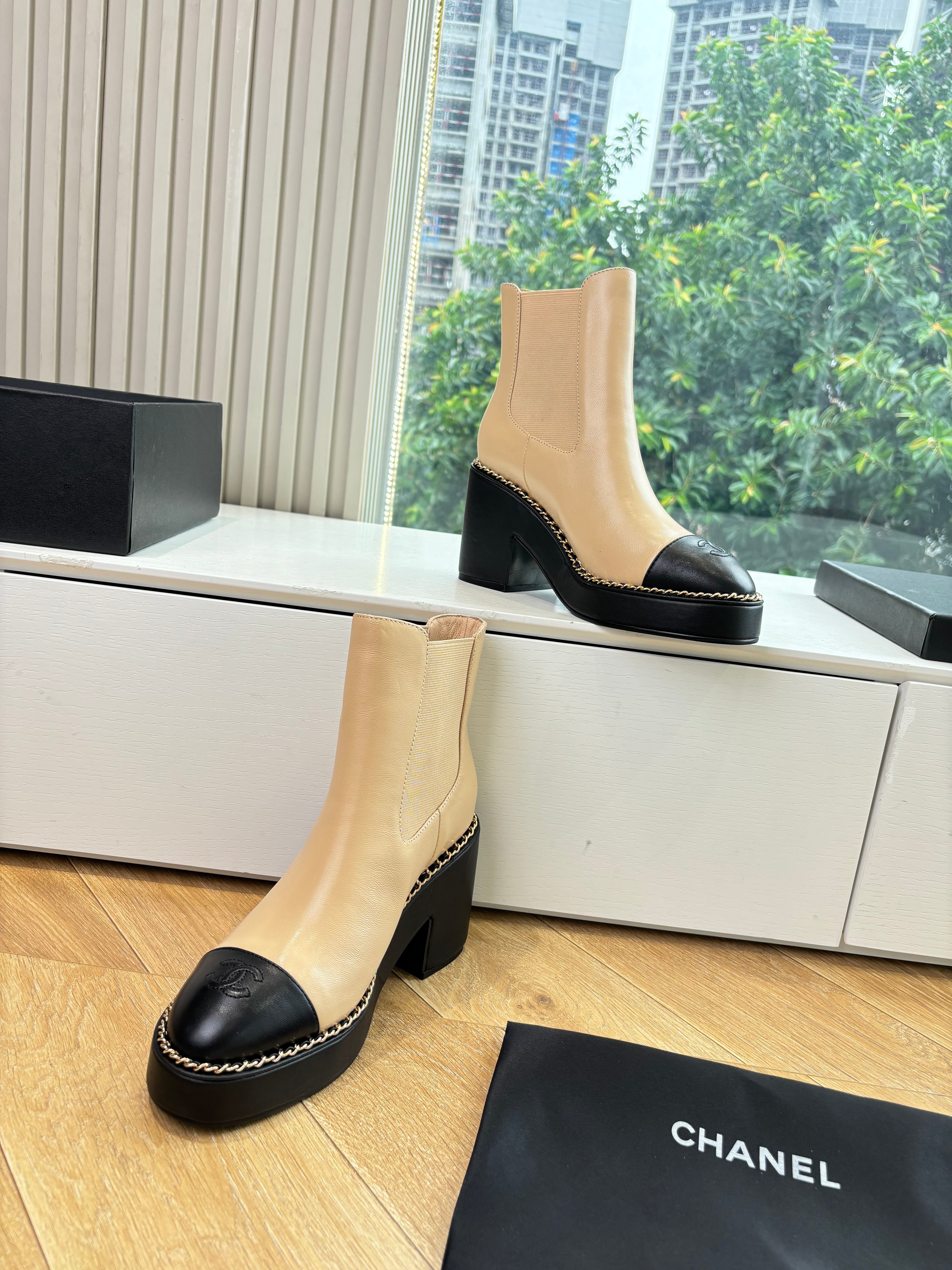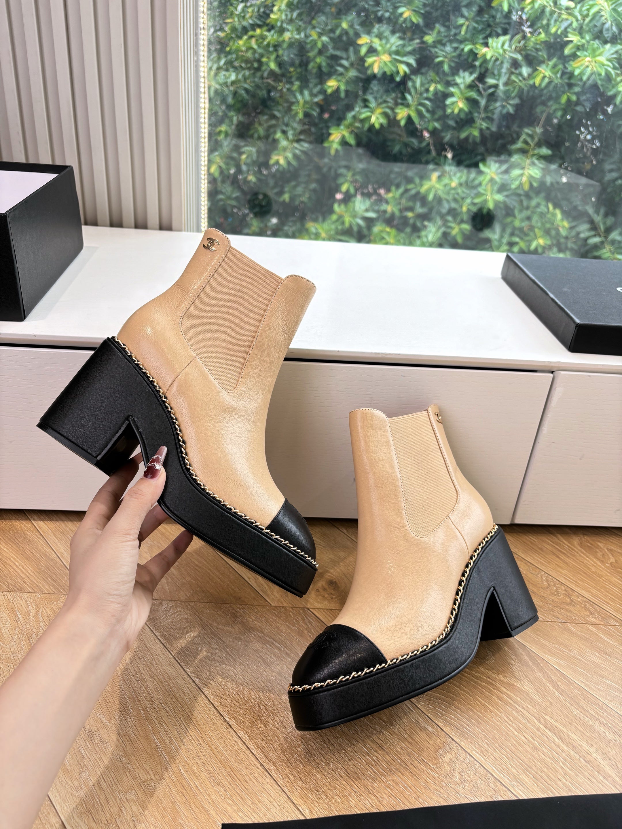 Chanel 25A Winter New Low Boots Black Beige Cowhide 393515