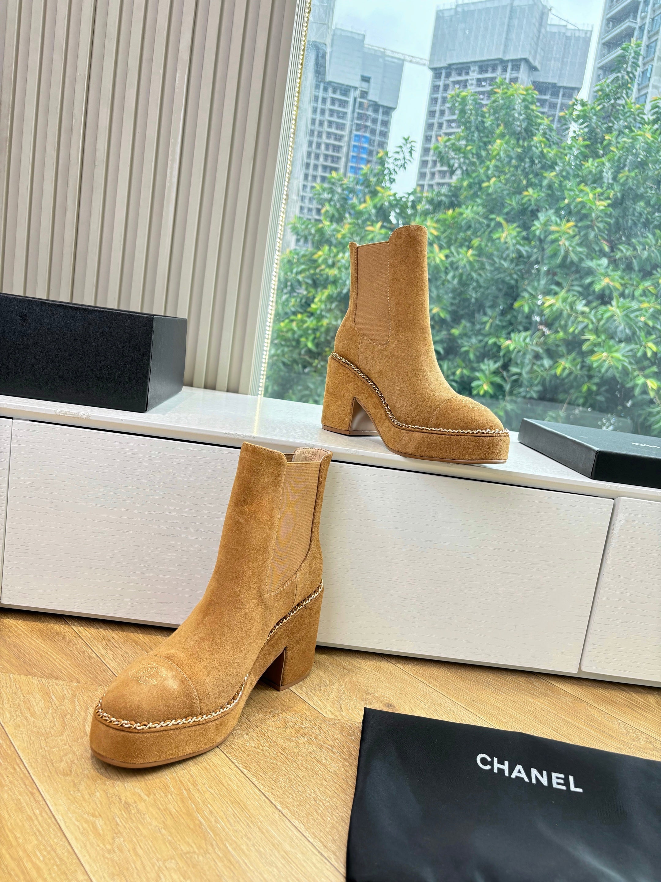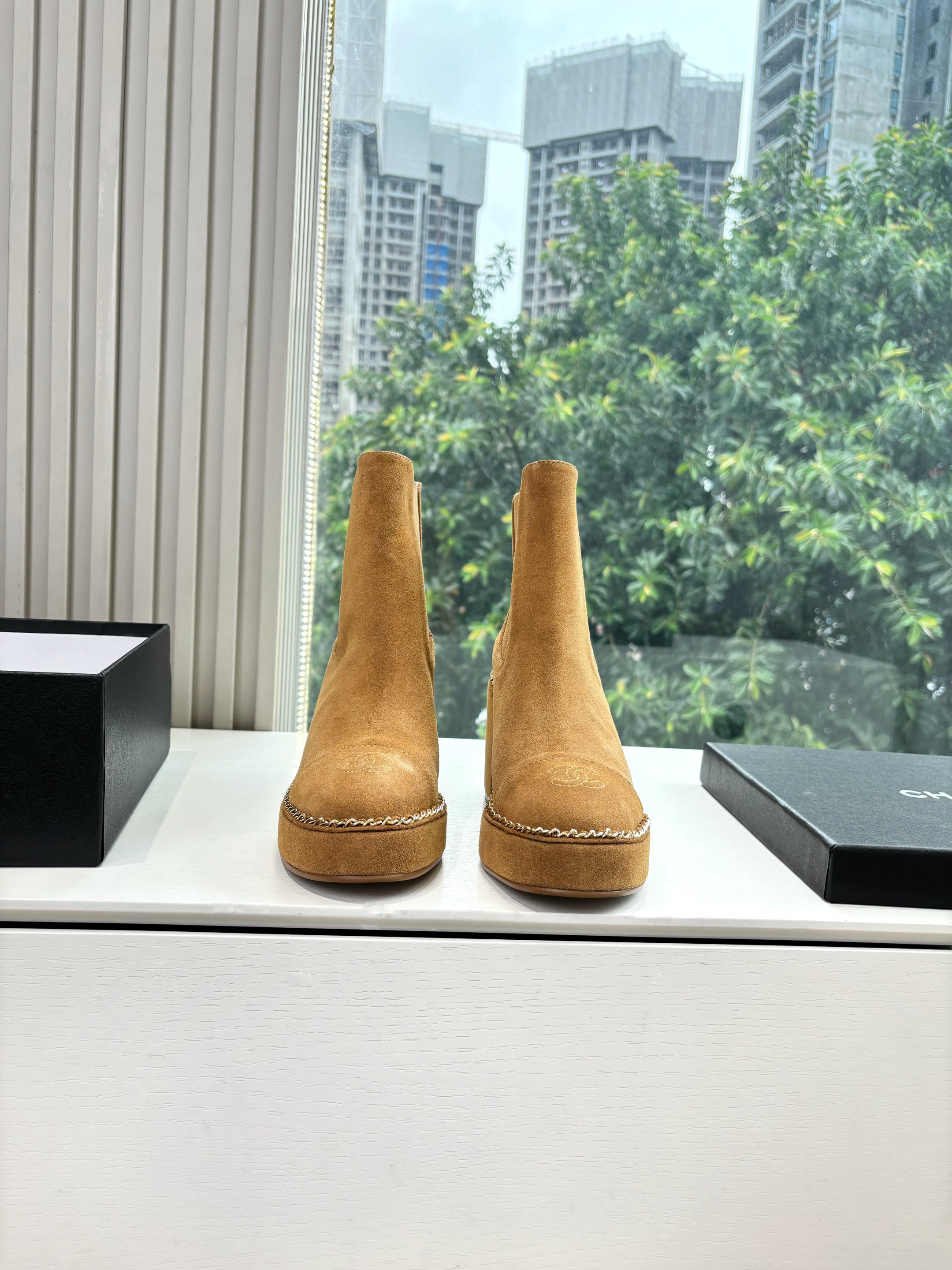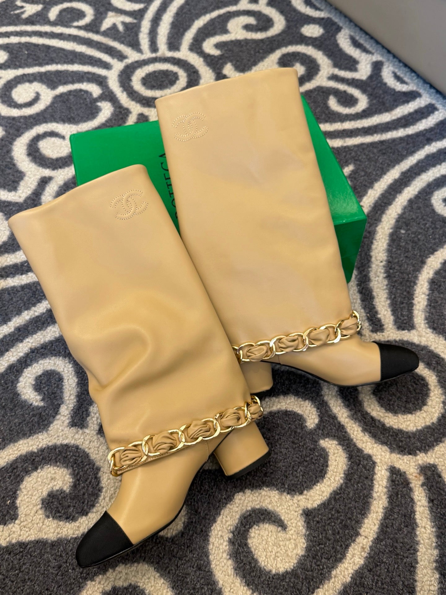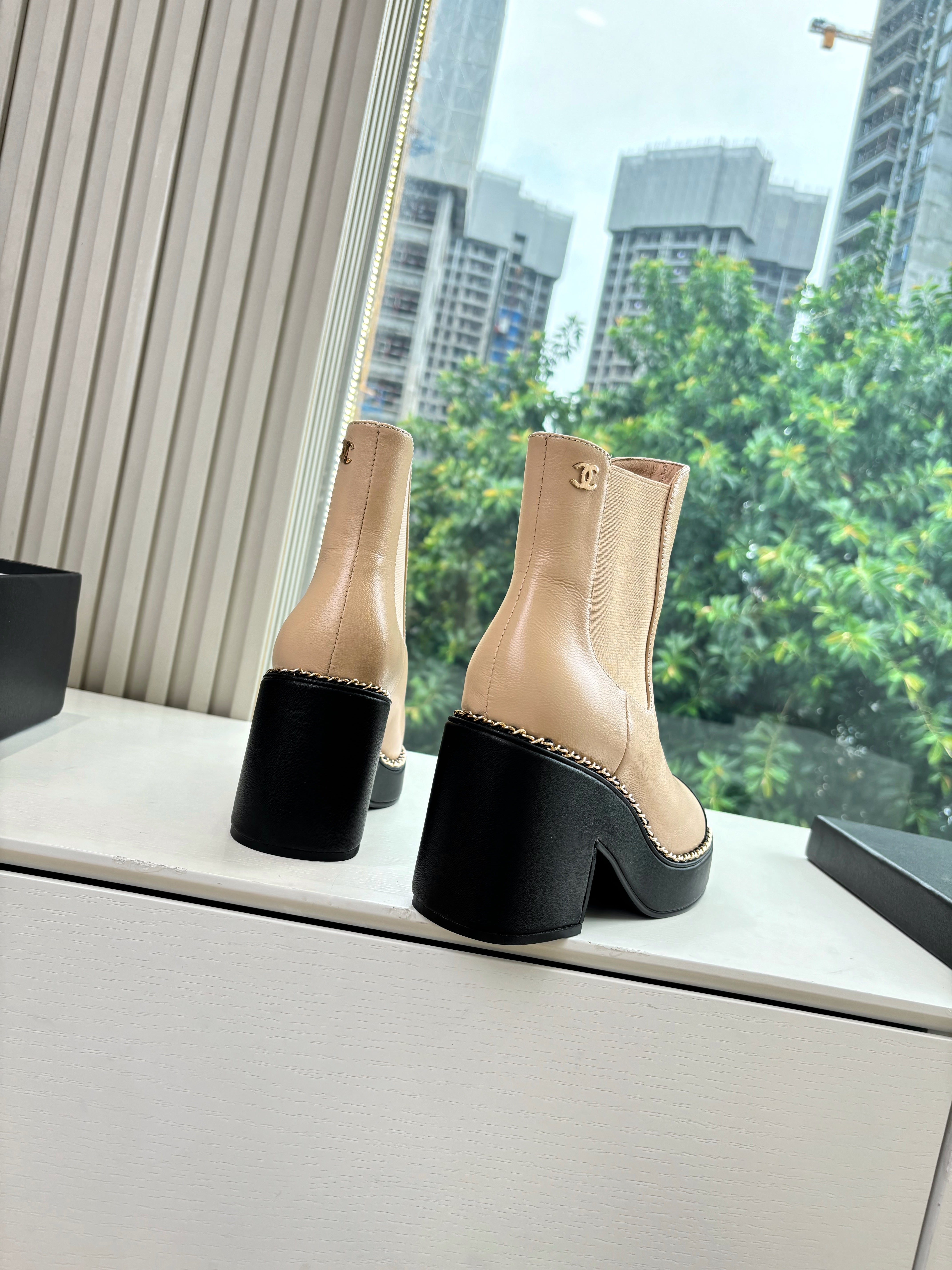 Chanel 25A Winter New Low Boots Black Beige Cowhide 393515