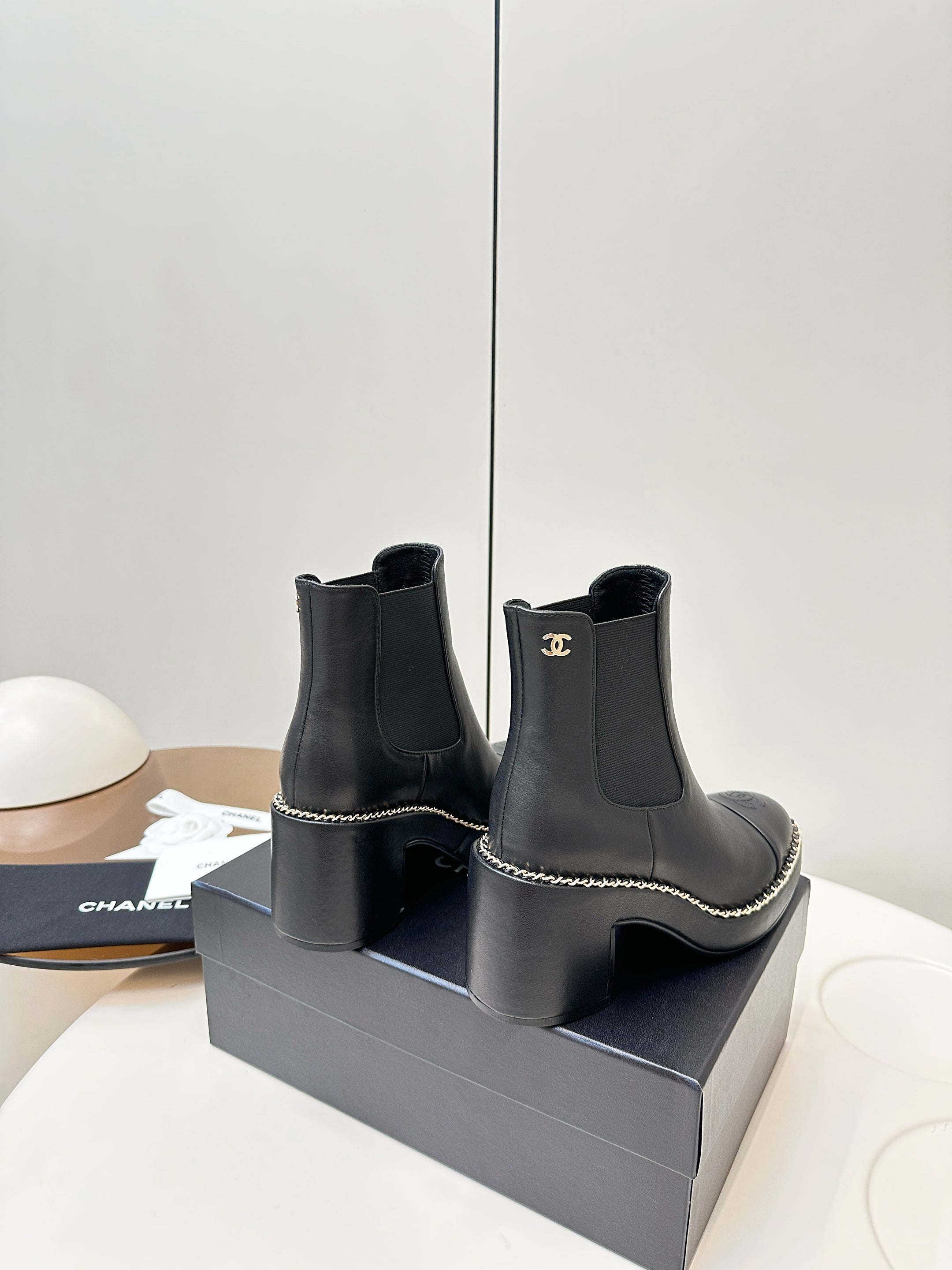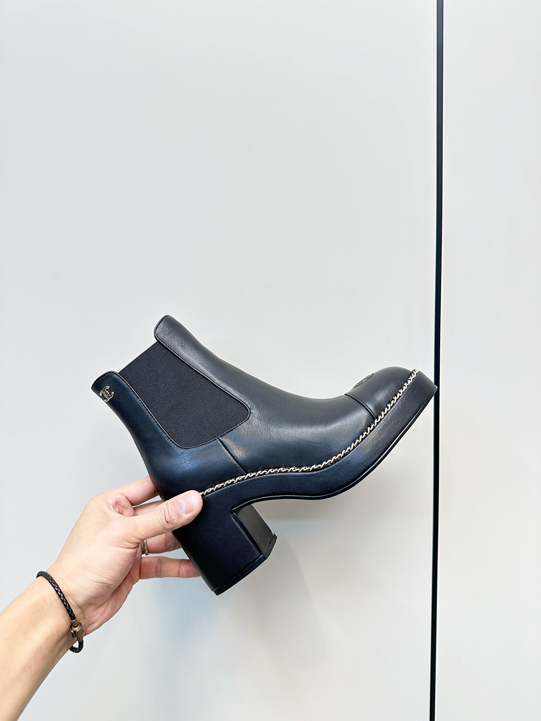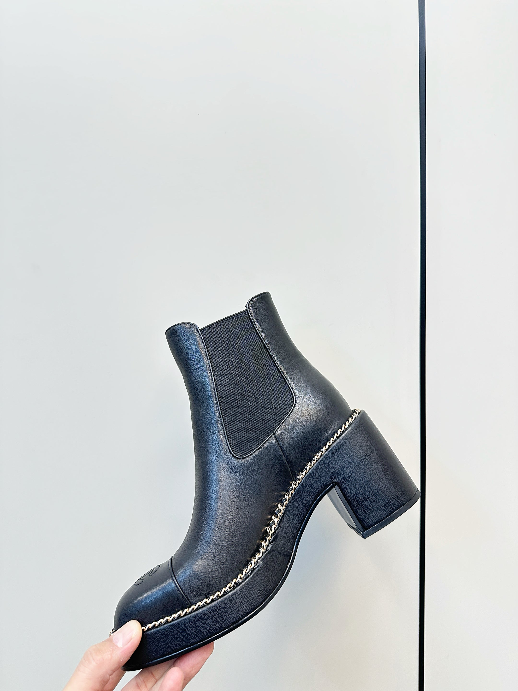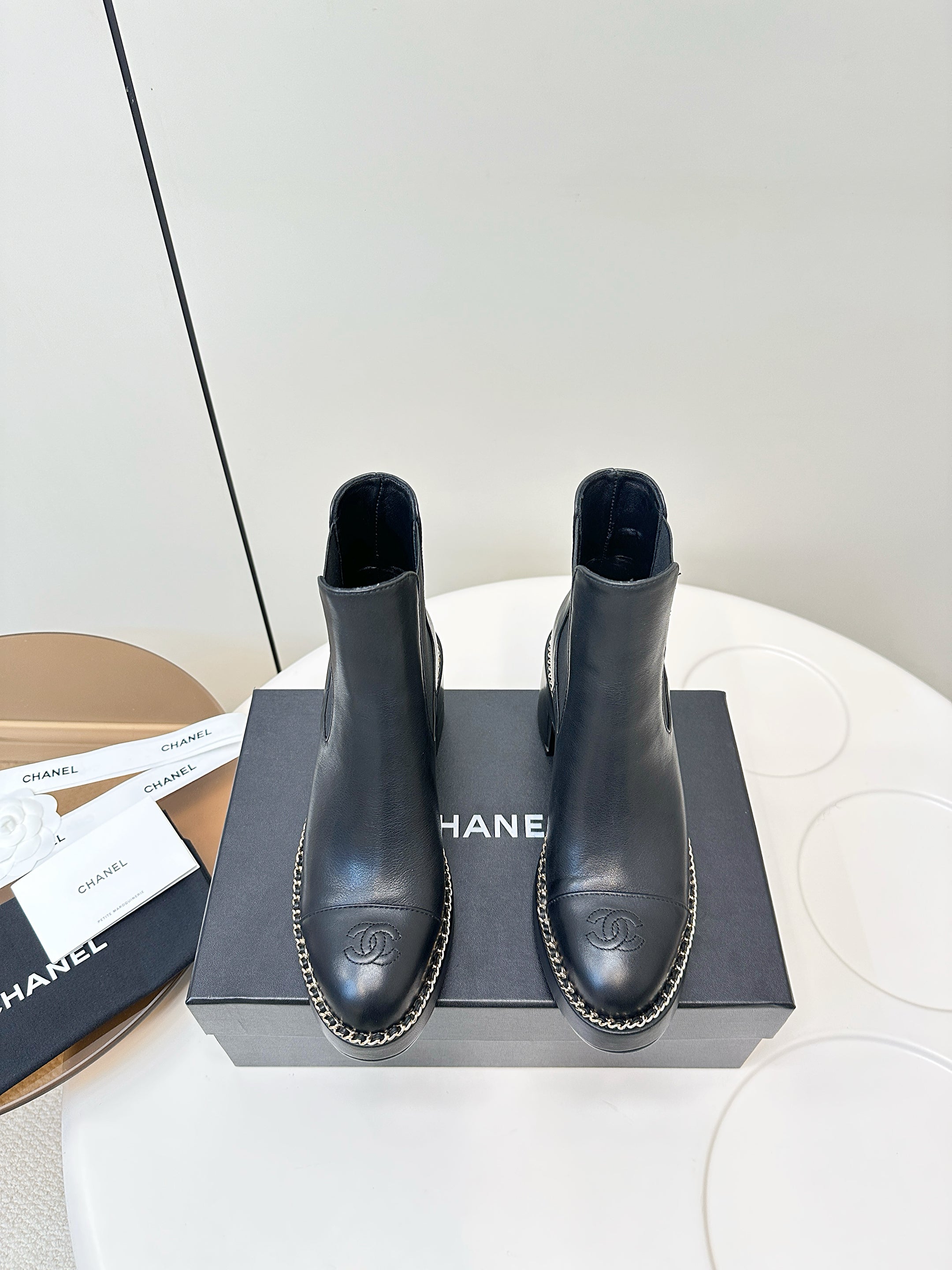 Chanel 25A Winter New Low Boots Black Cowhide 393516