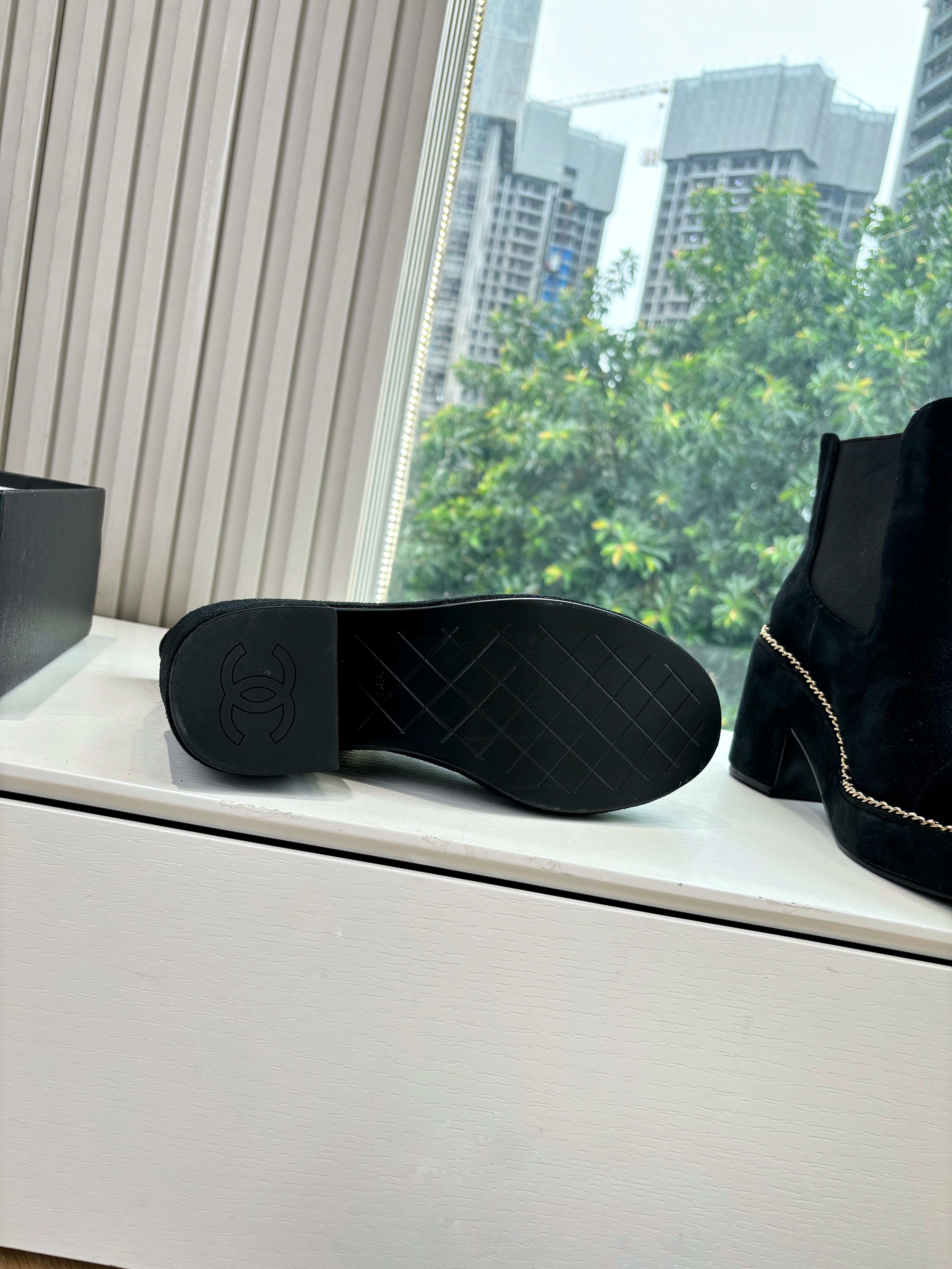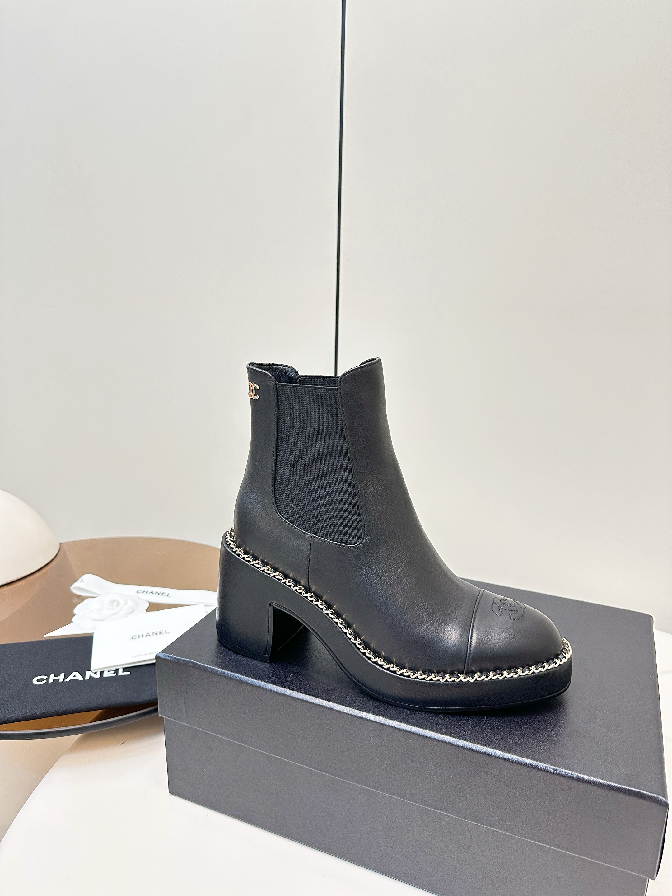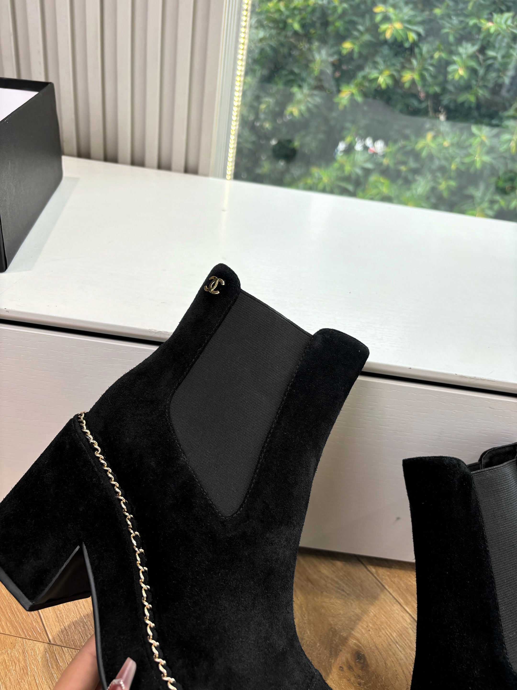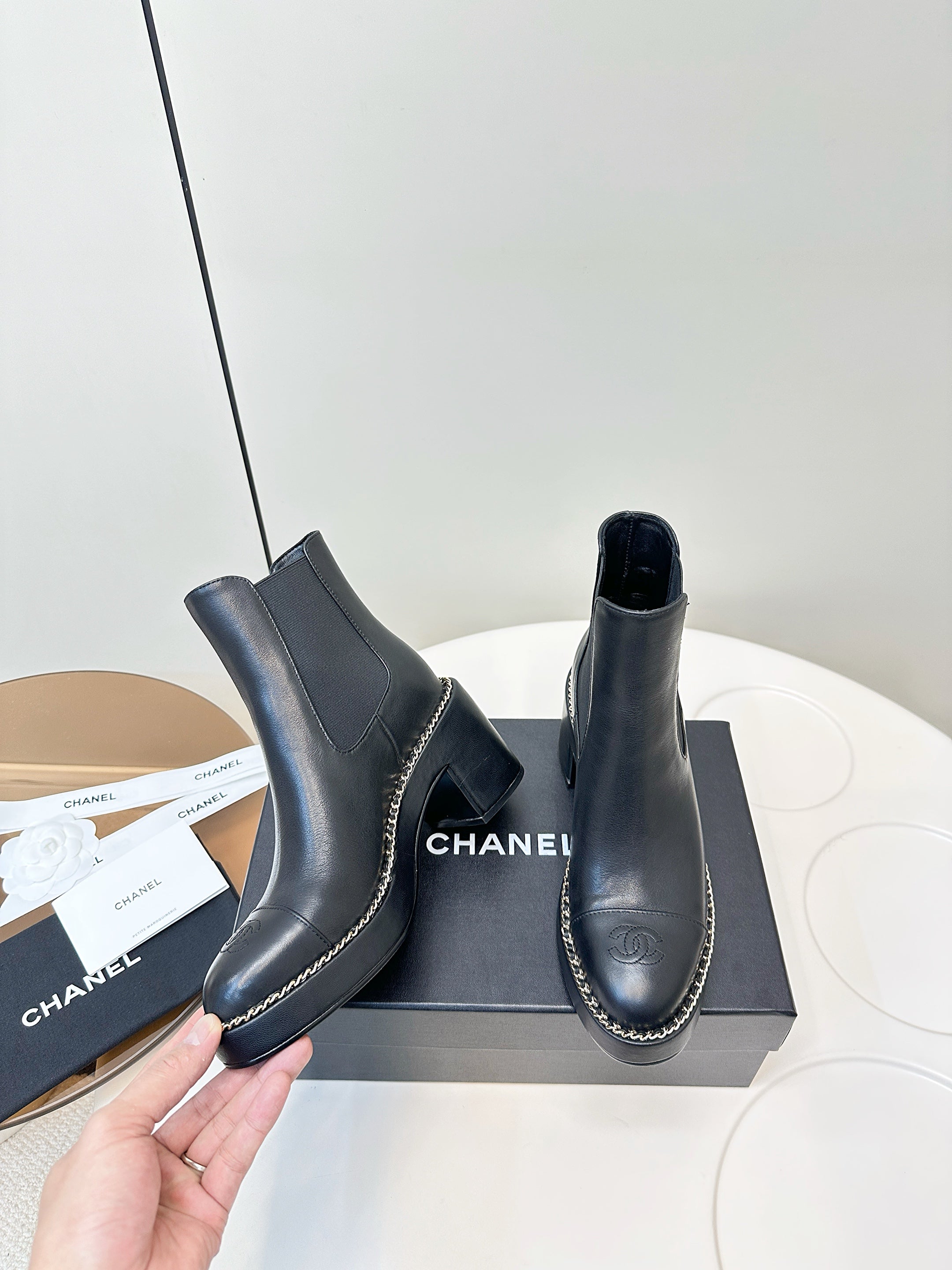 Chanel 25A Winter New Low Boots Black Cowhide 393516