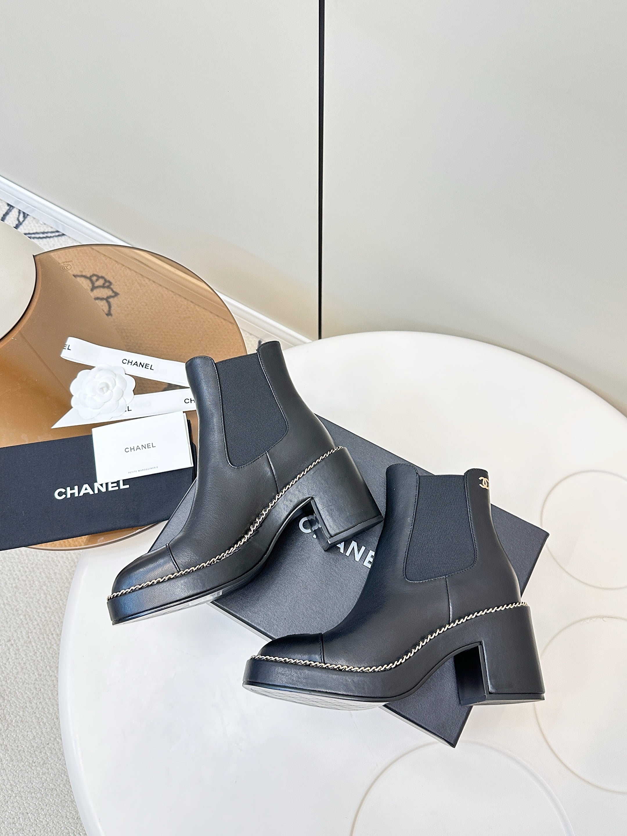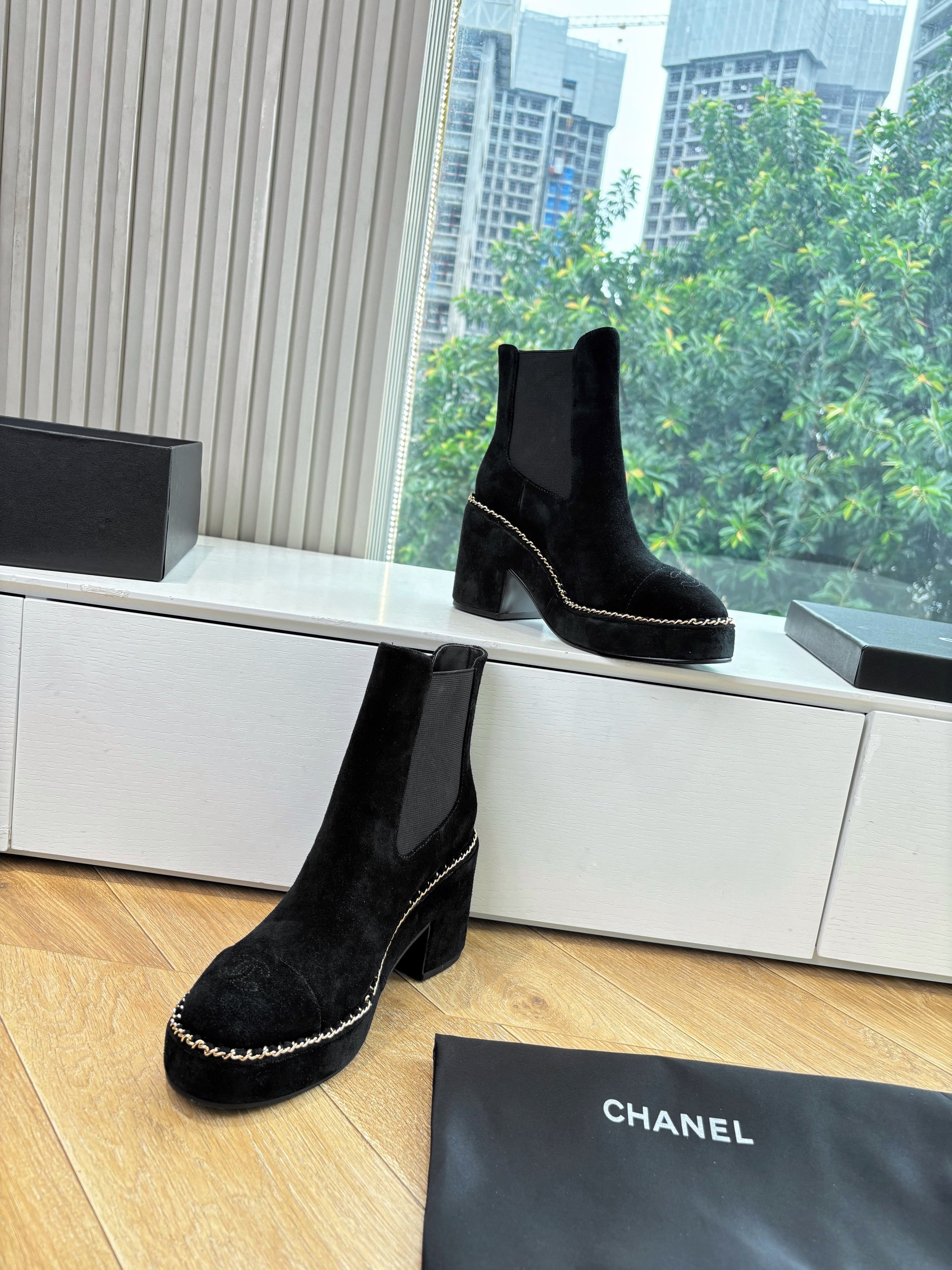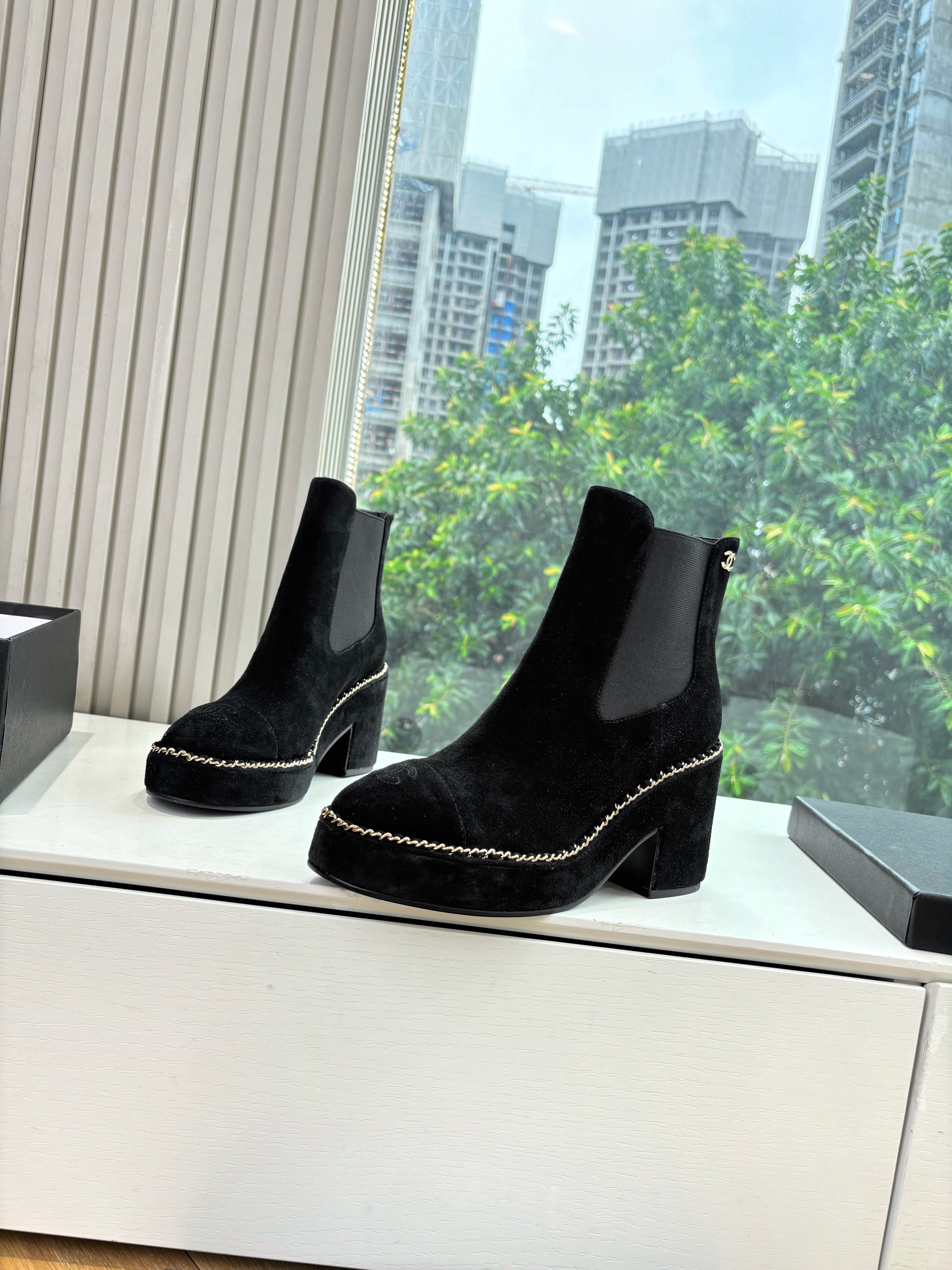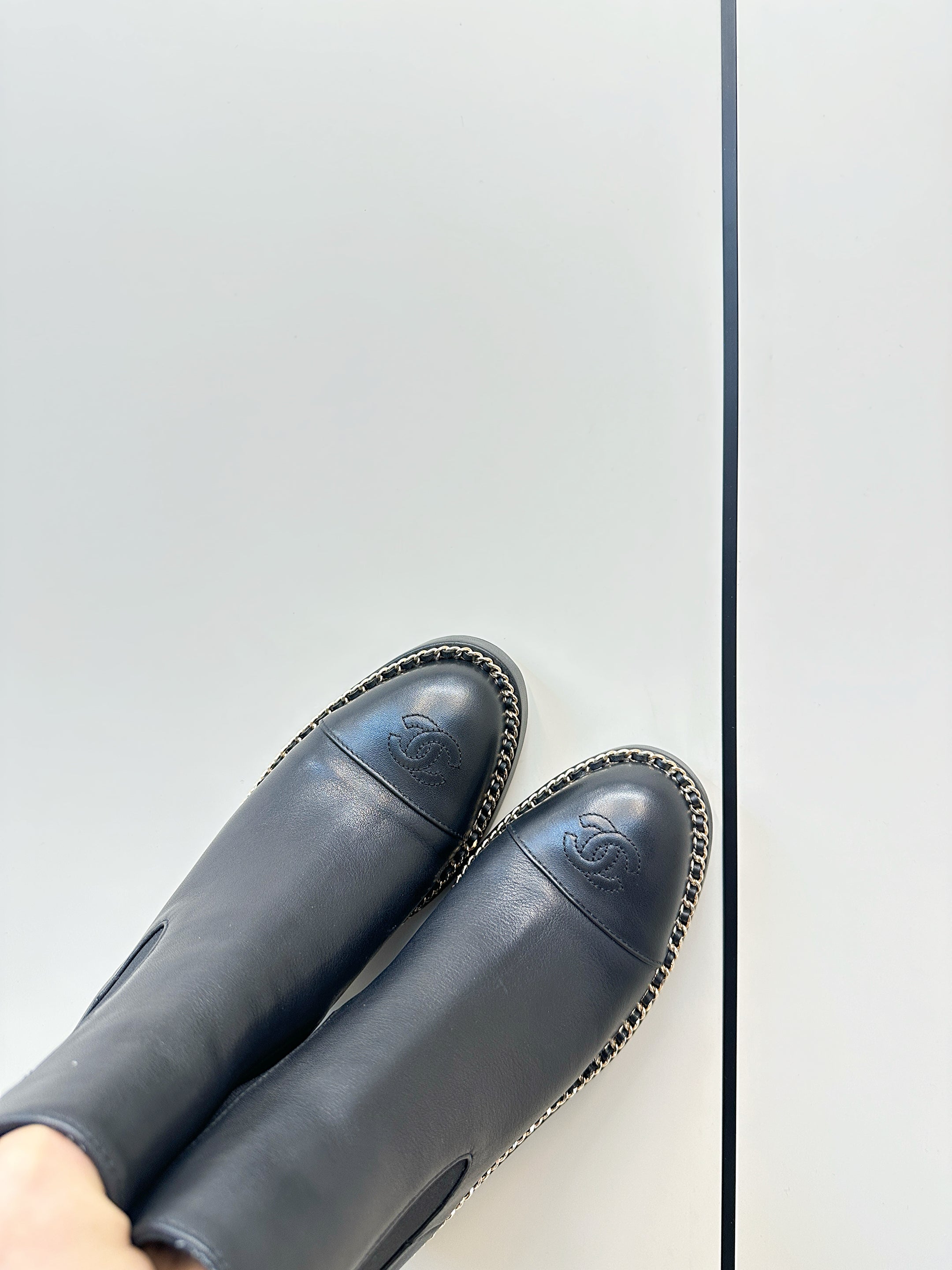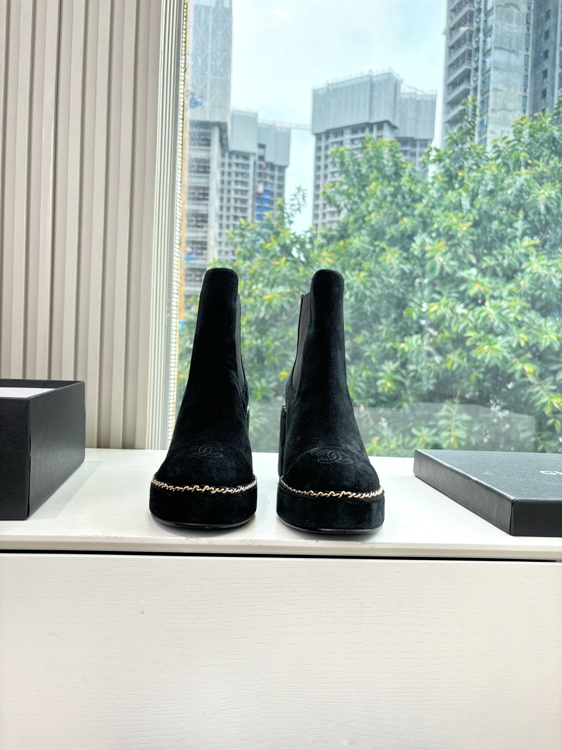 Chanel 25A Winter New Low Boots Black Cowhide 393516