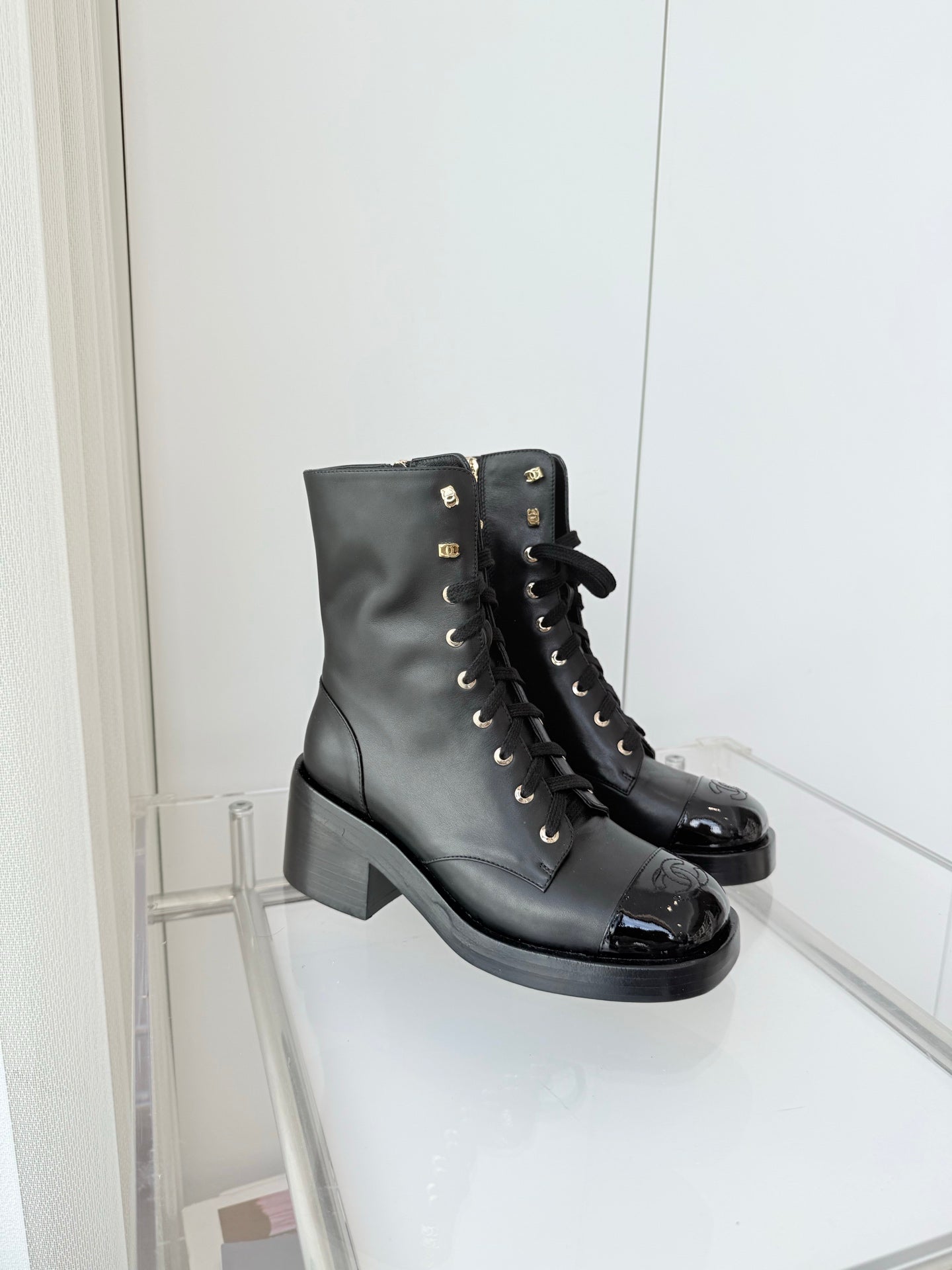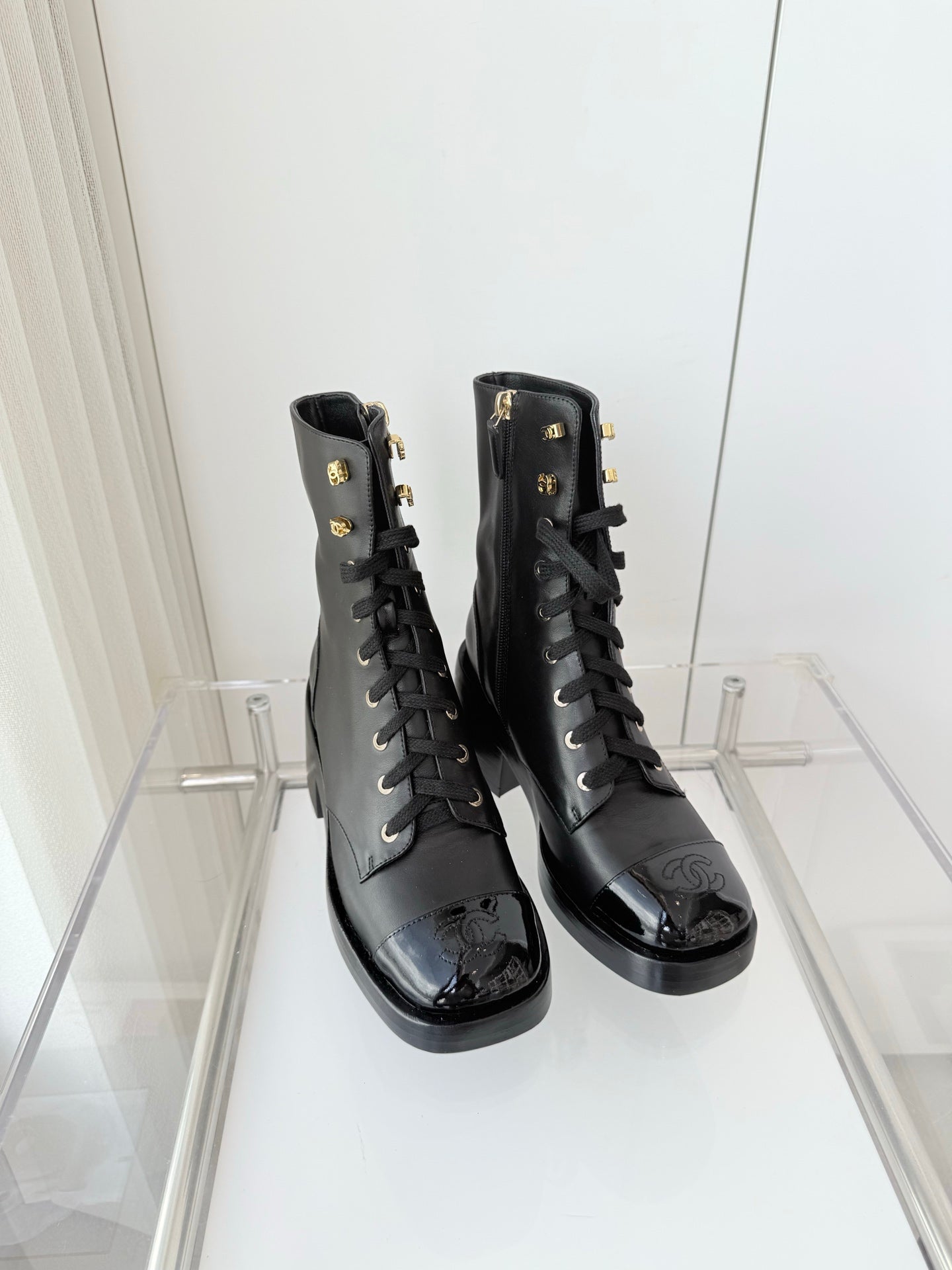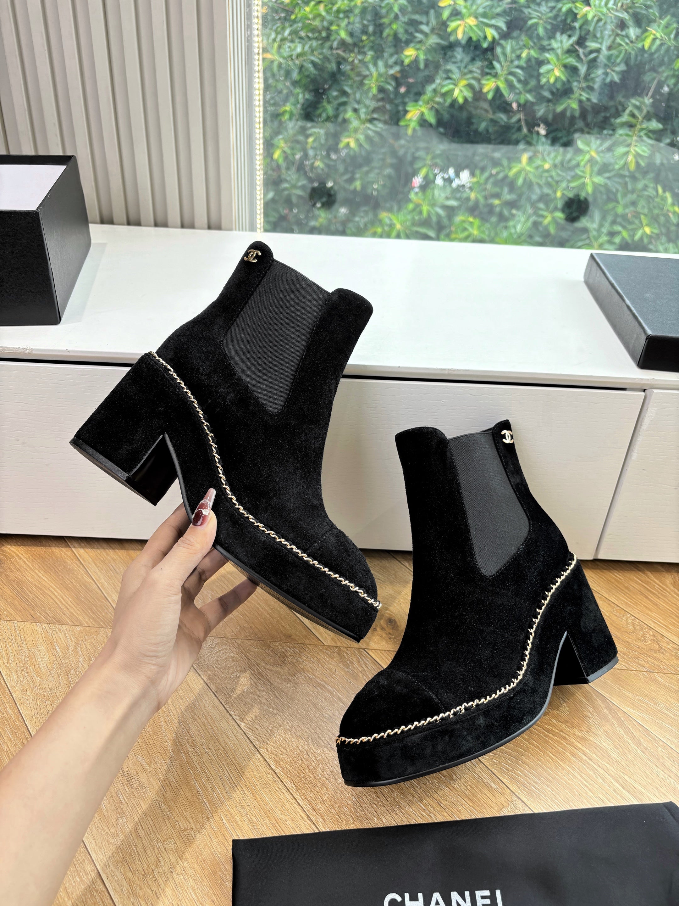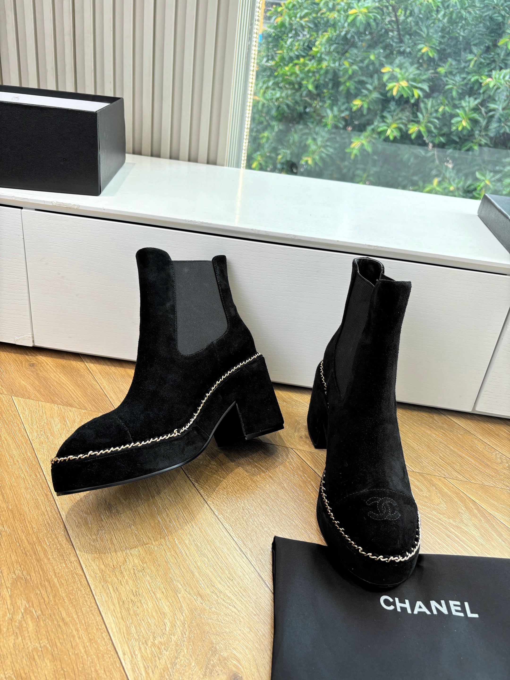 Chanel 25A Winter New Low Boots Black Cowhide 393516