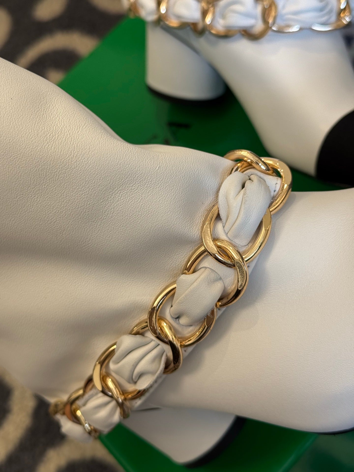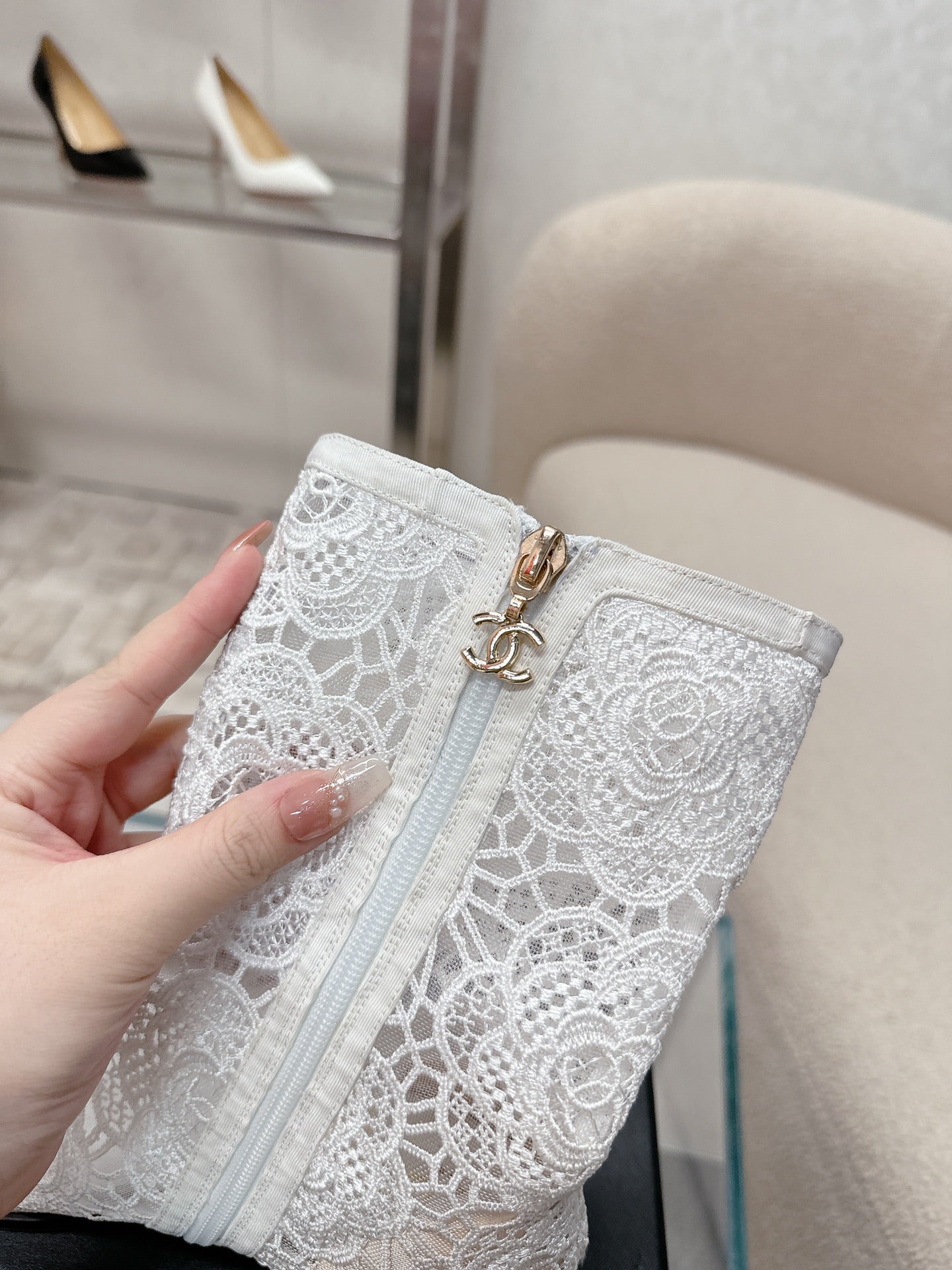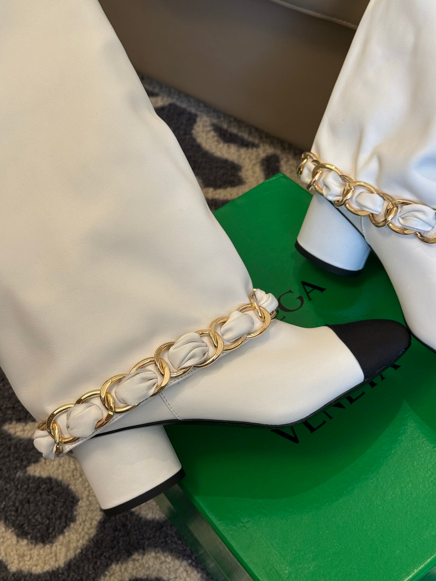 CC 25 Short Boot White Calfskin Black Bow 430317