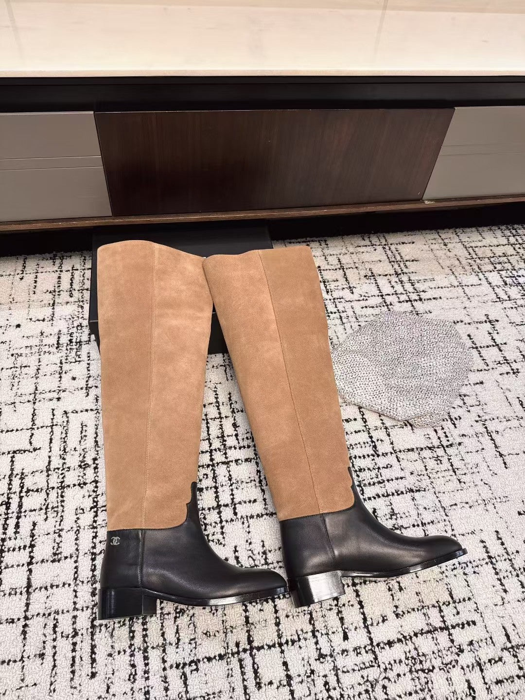 Chanel 25A Winter New Thigh Boots Black Cowhide Mix Suede 393520