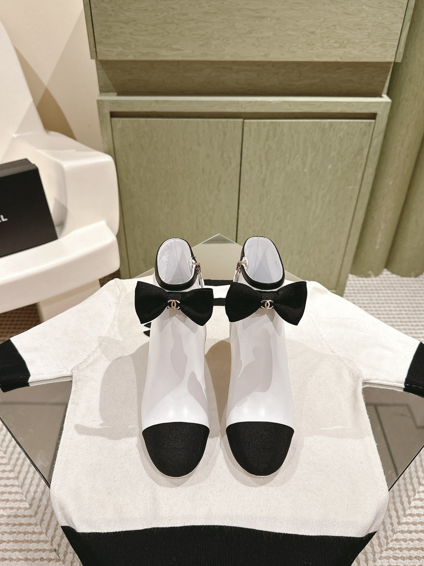 CC Ankle Boot 65 White Calfskin Black Patent Calfksin Leather Strap