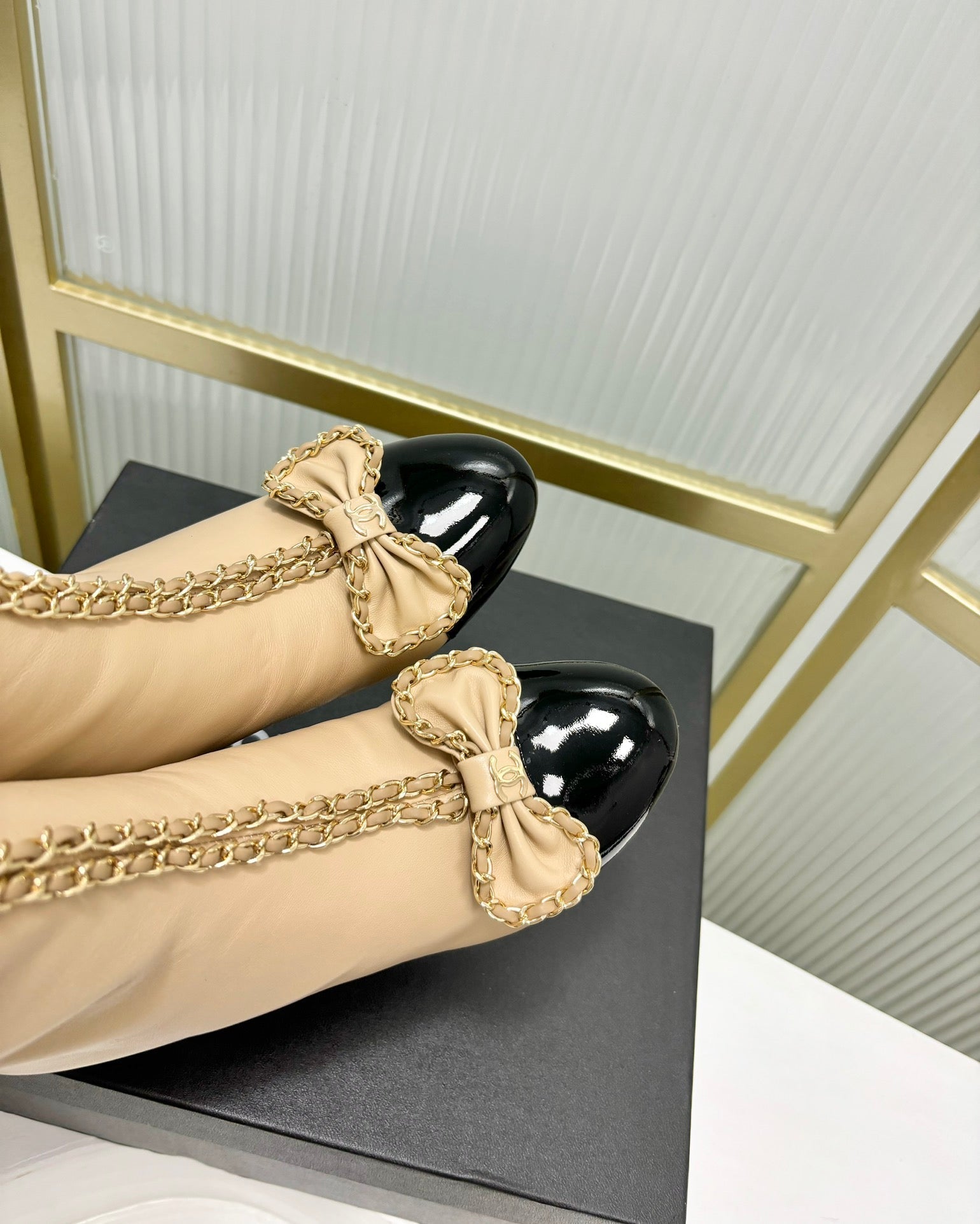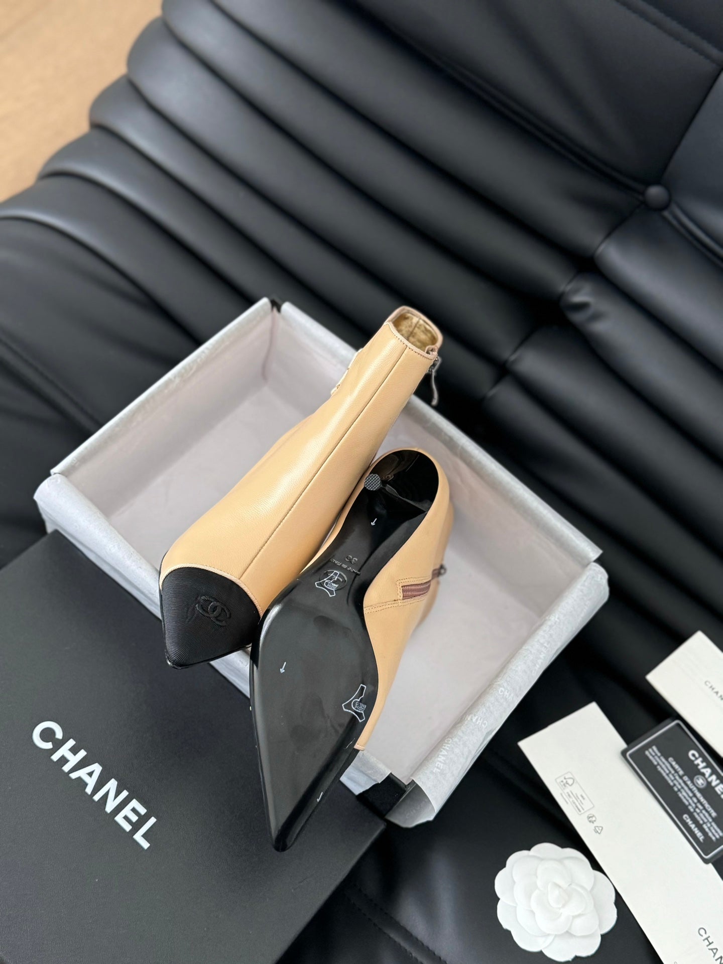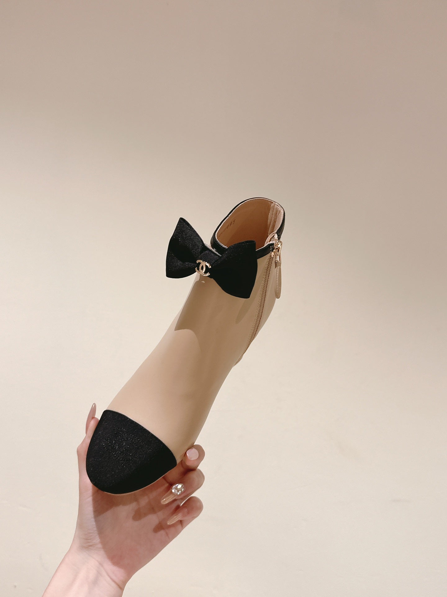 CC Ankle Boot Beige Calfskin Black Patent Calfskin