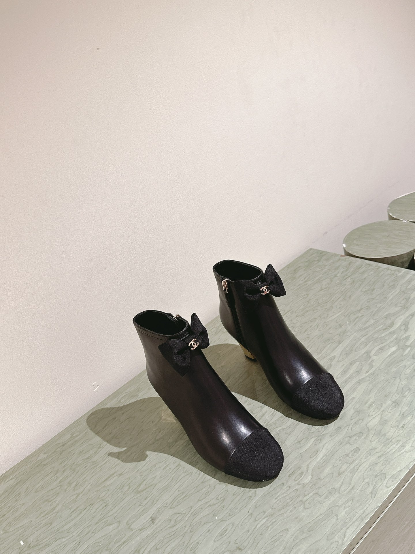 CC Ankle Boot Black Calfskin Grosgrain Leather Strap