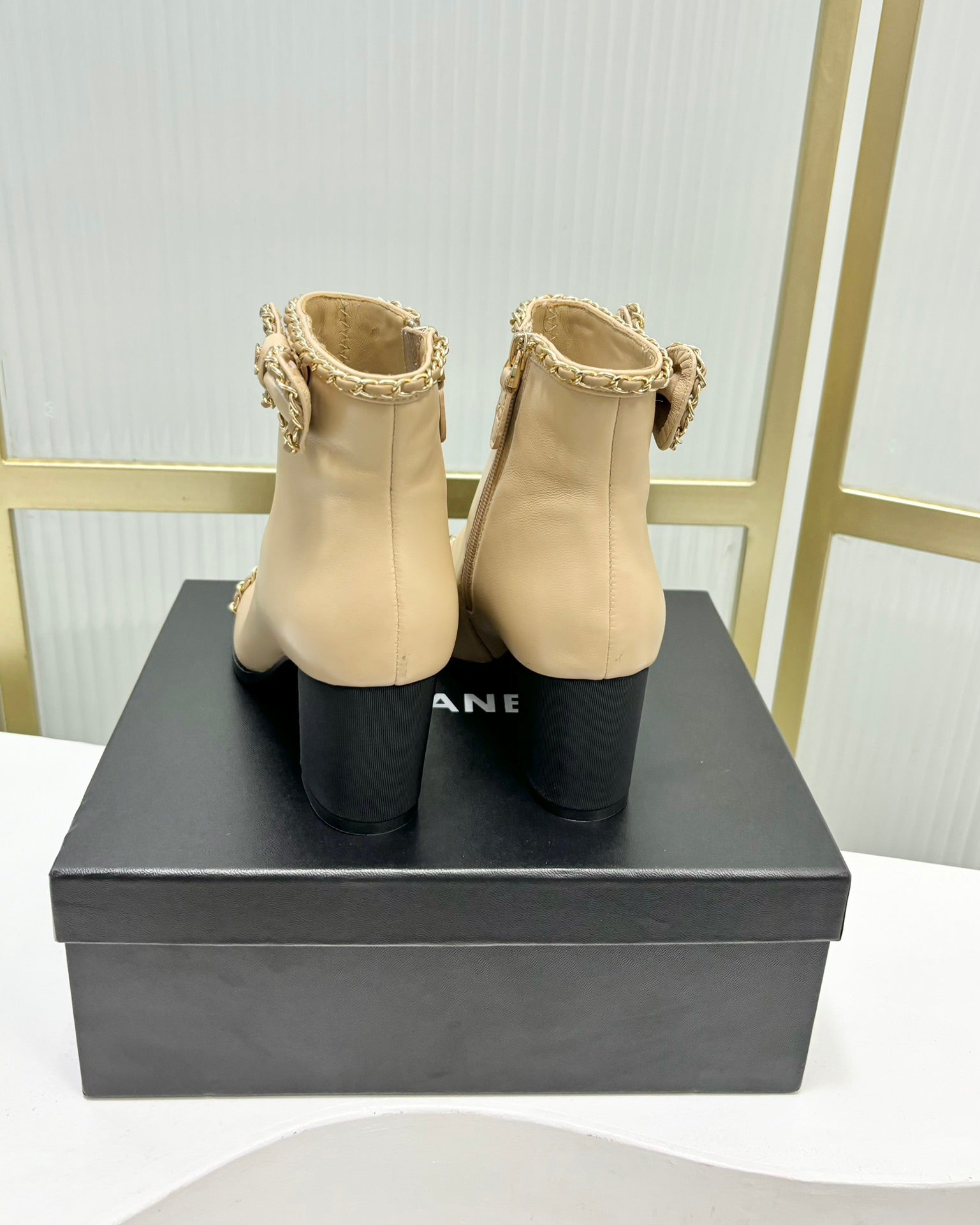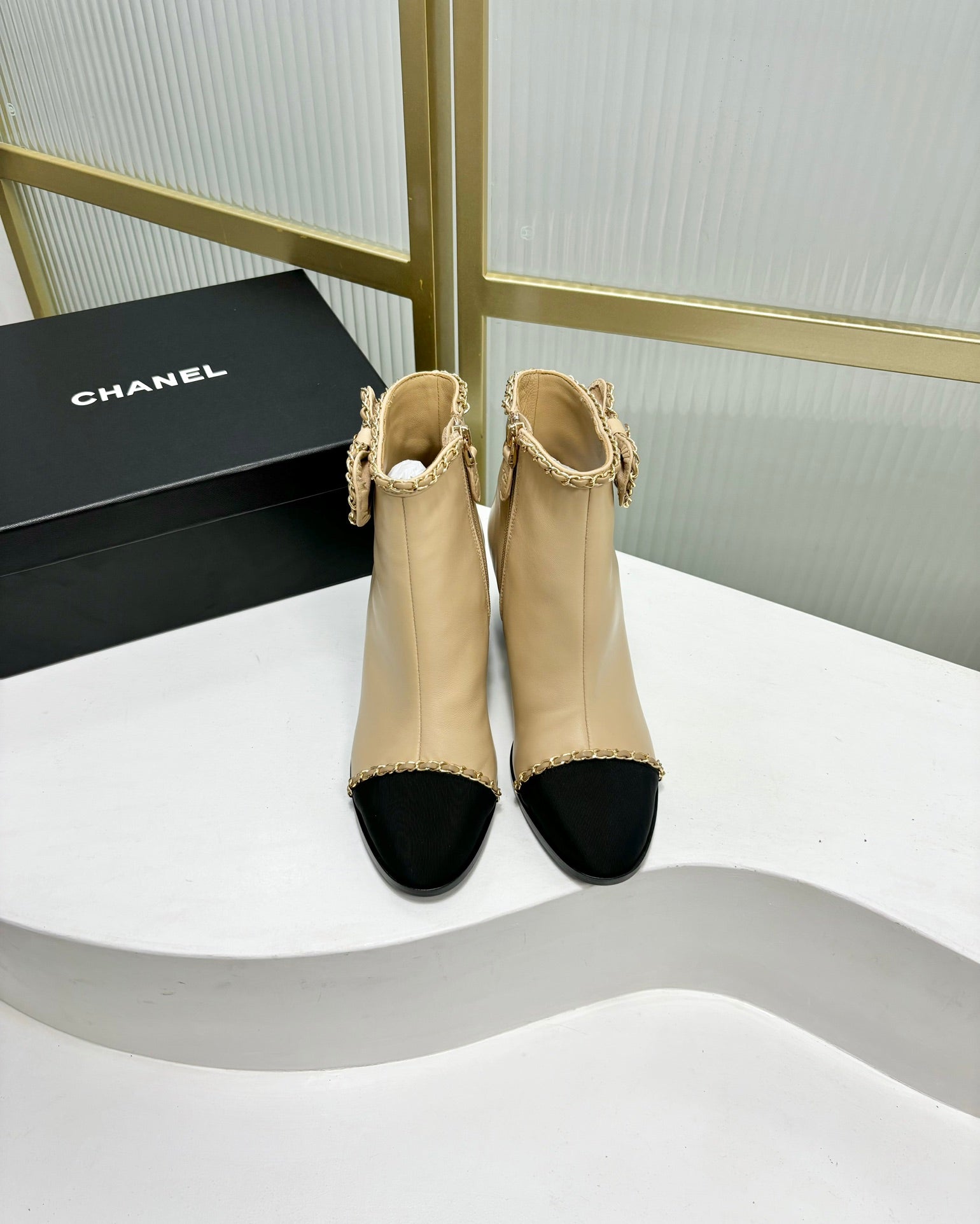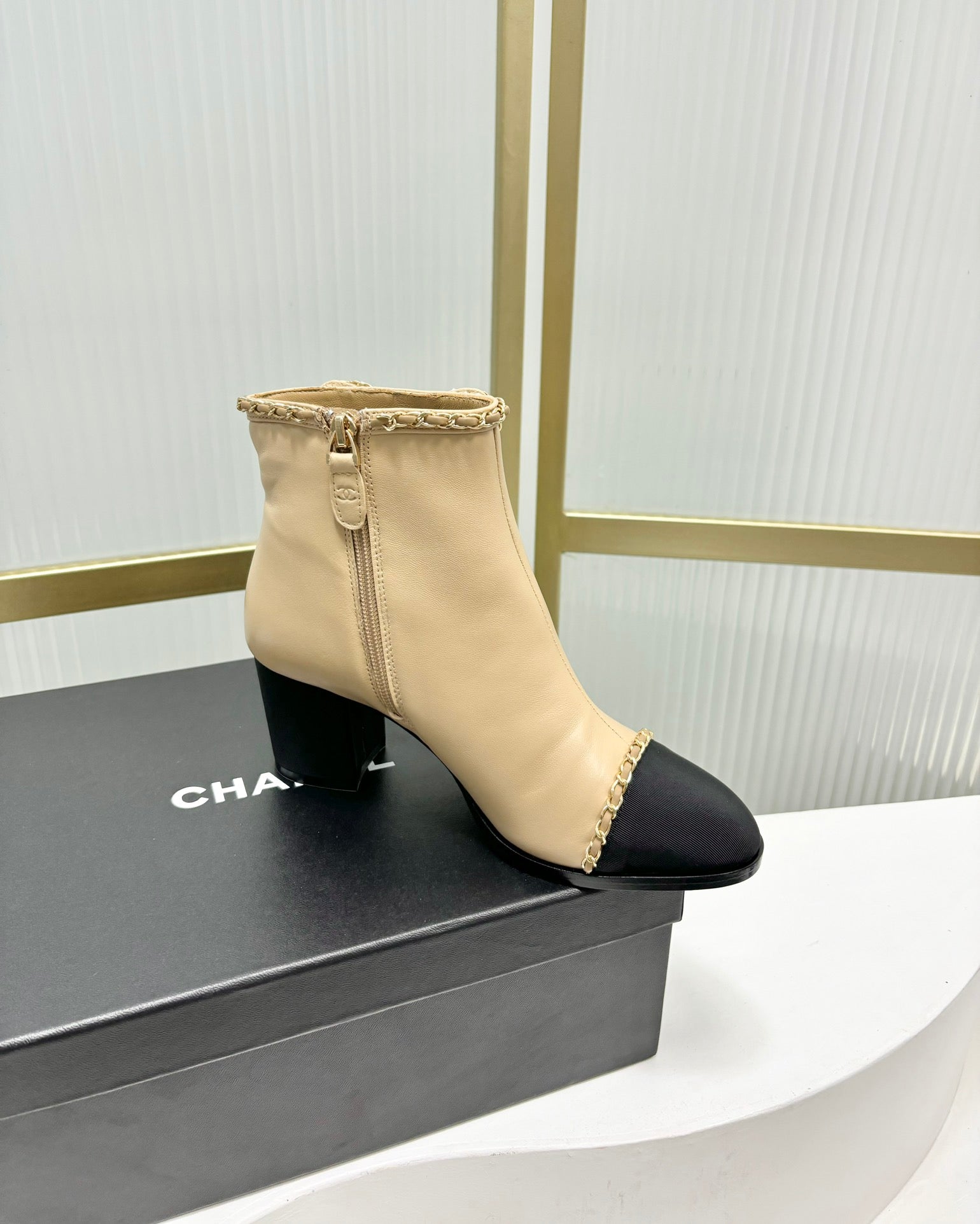 CC Ankle Boot Beige Calfskin Black Grosgrain
