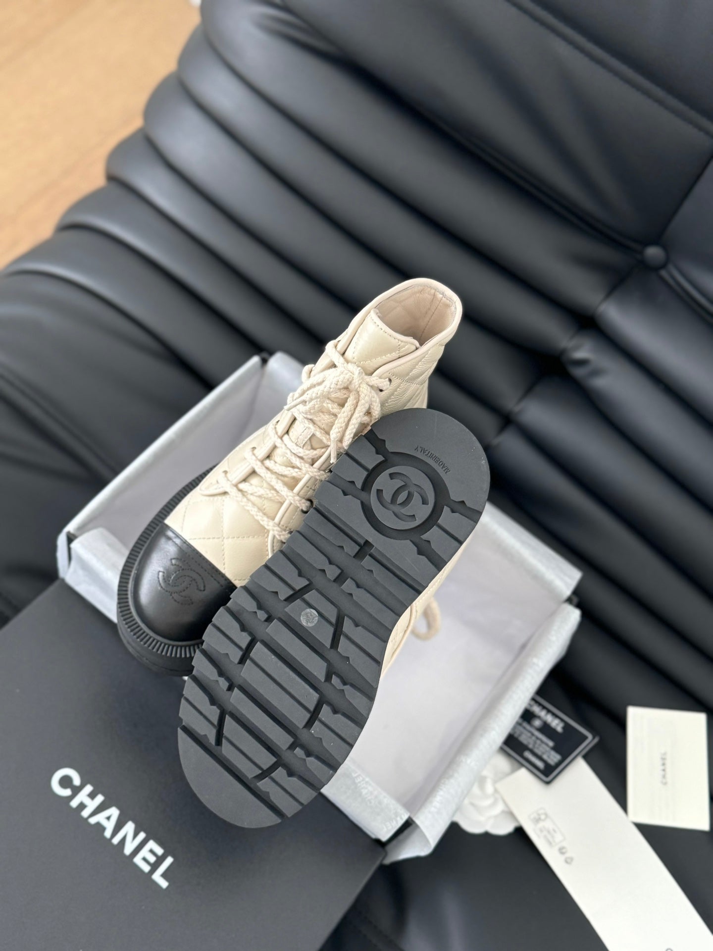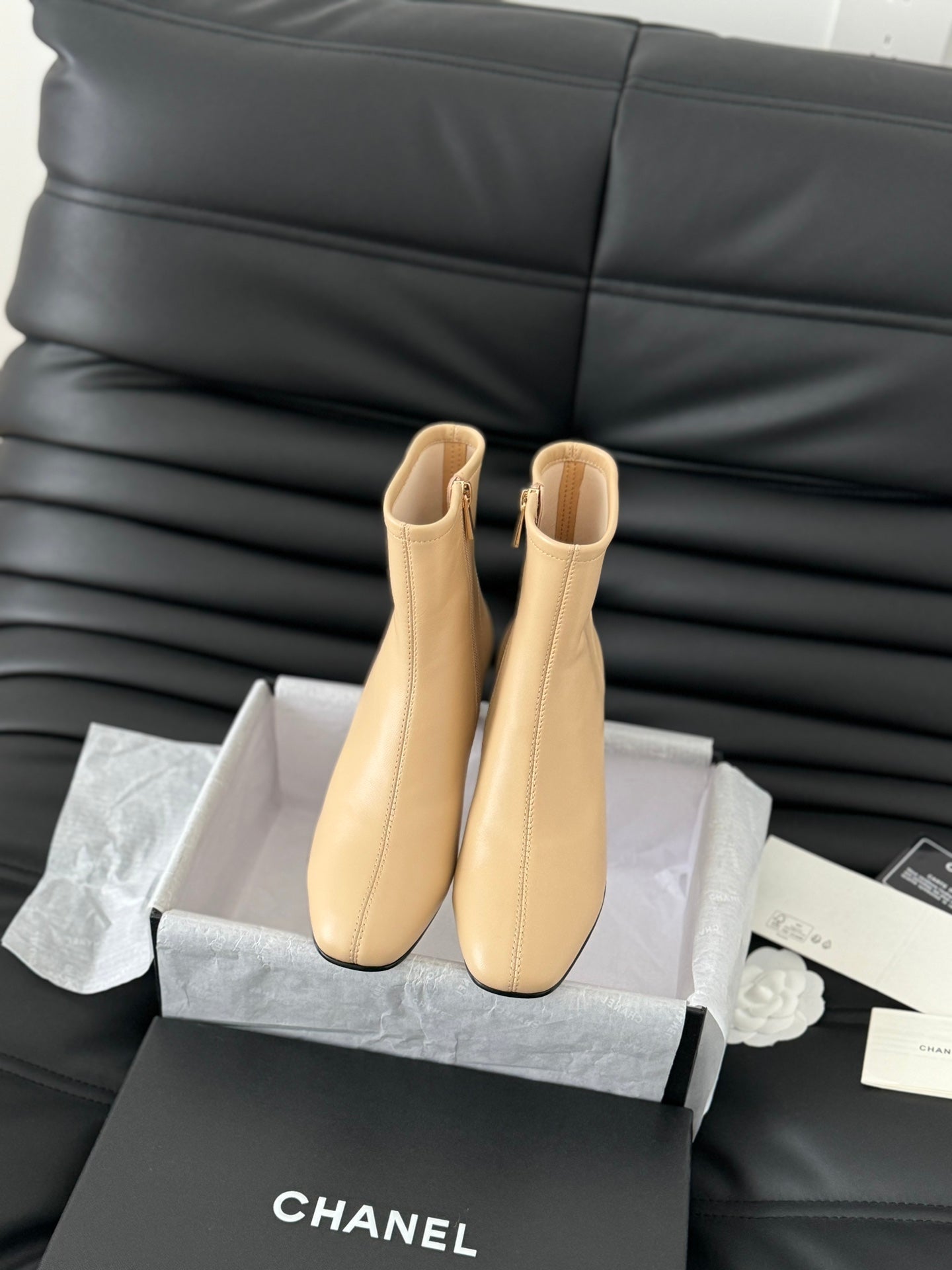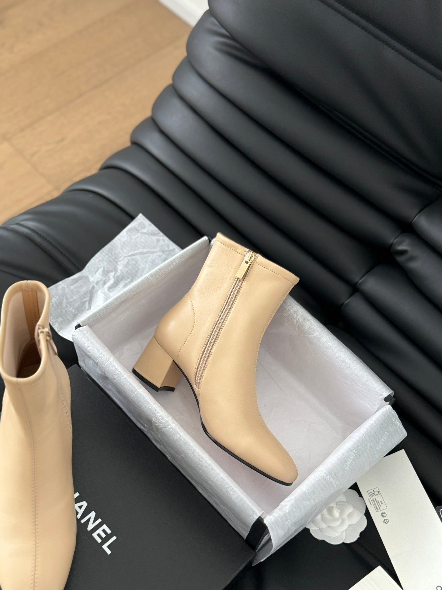 CC Ankle Boot Beige Calfskin Black Grosgrain