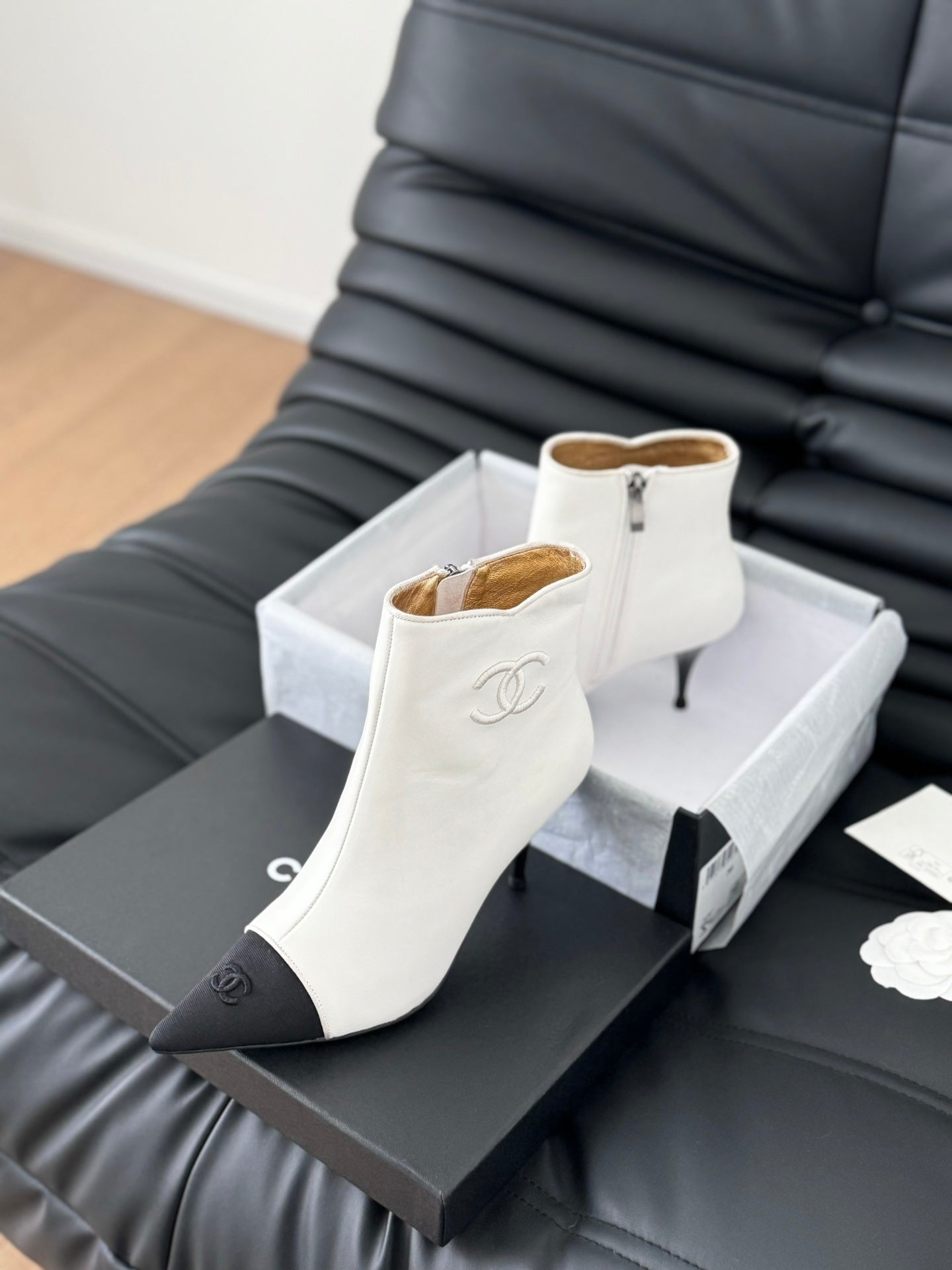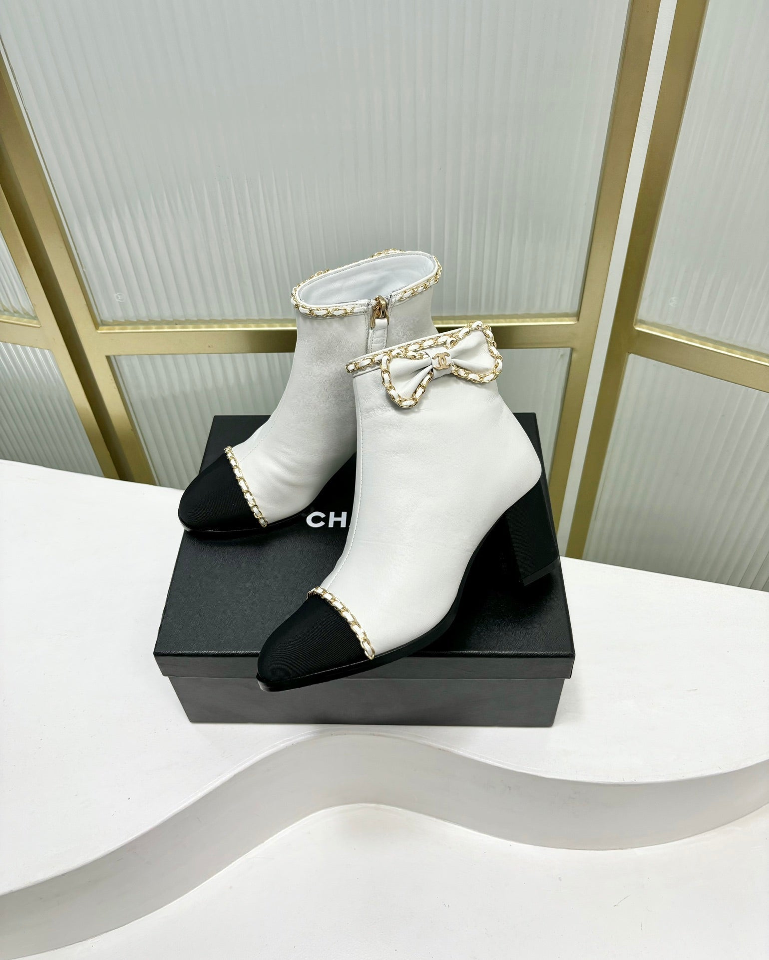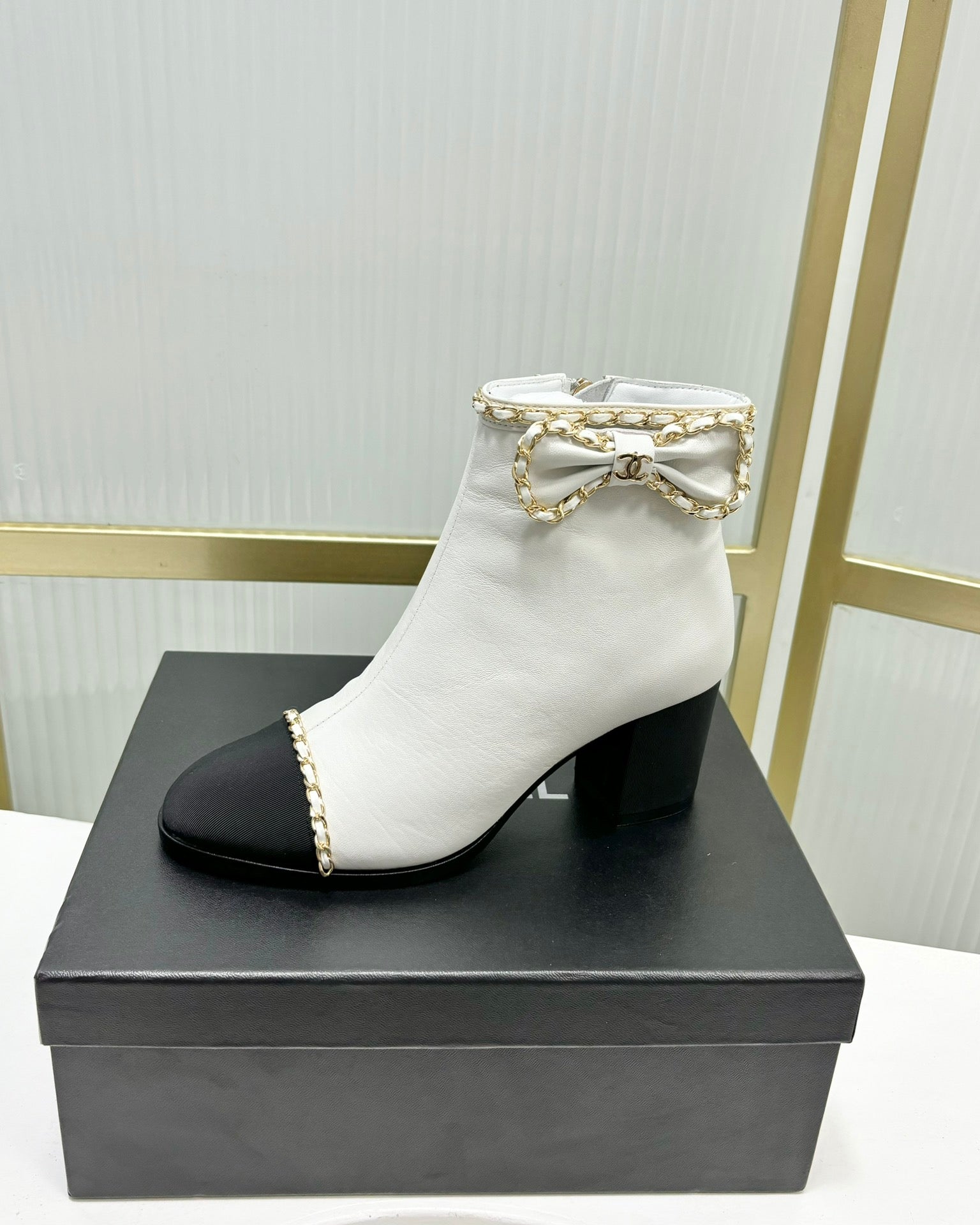 CC Ankle Boot White Calfskin Black Patent Calfskin