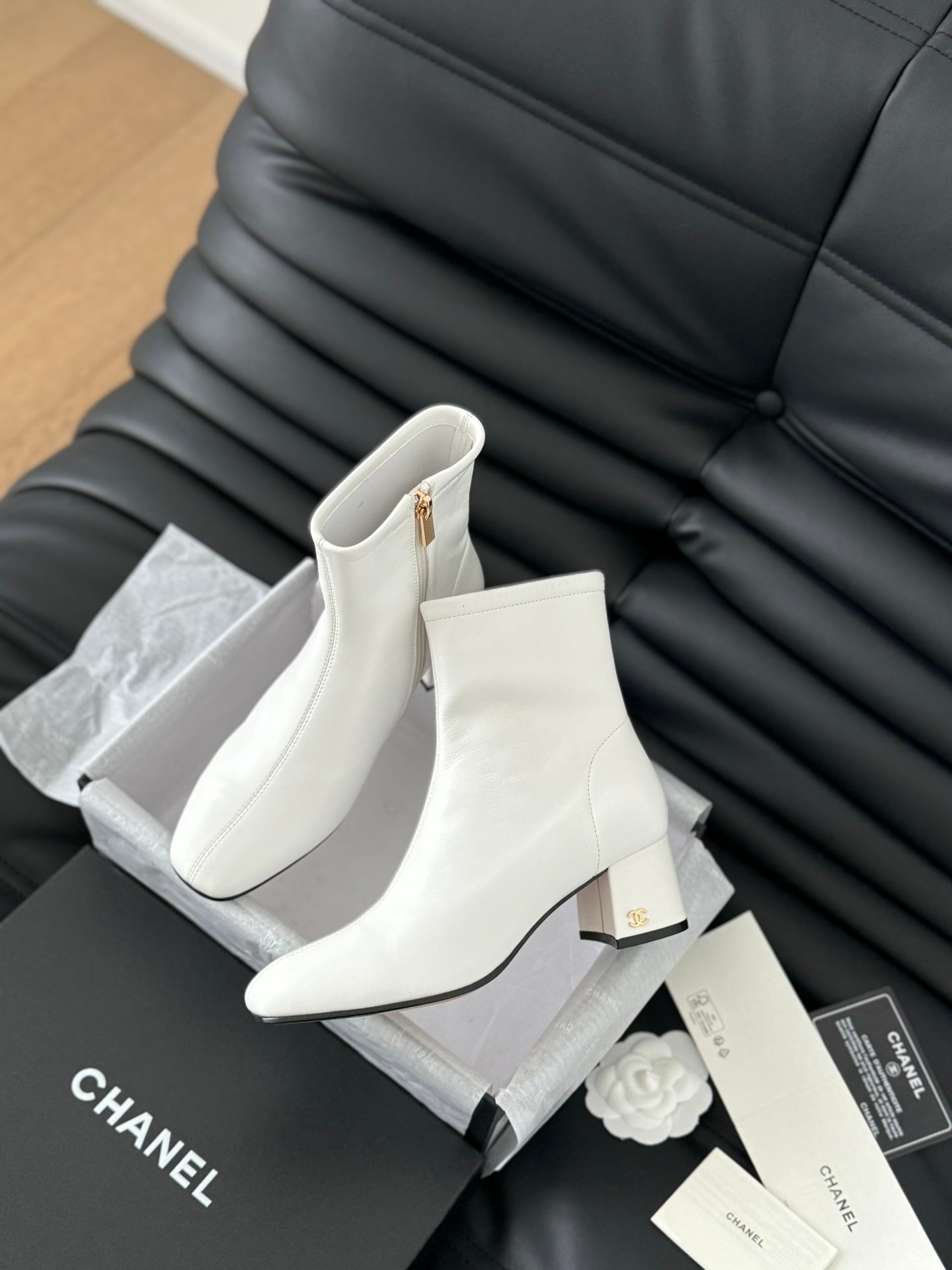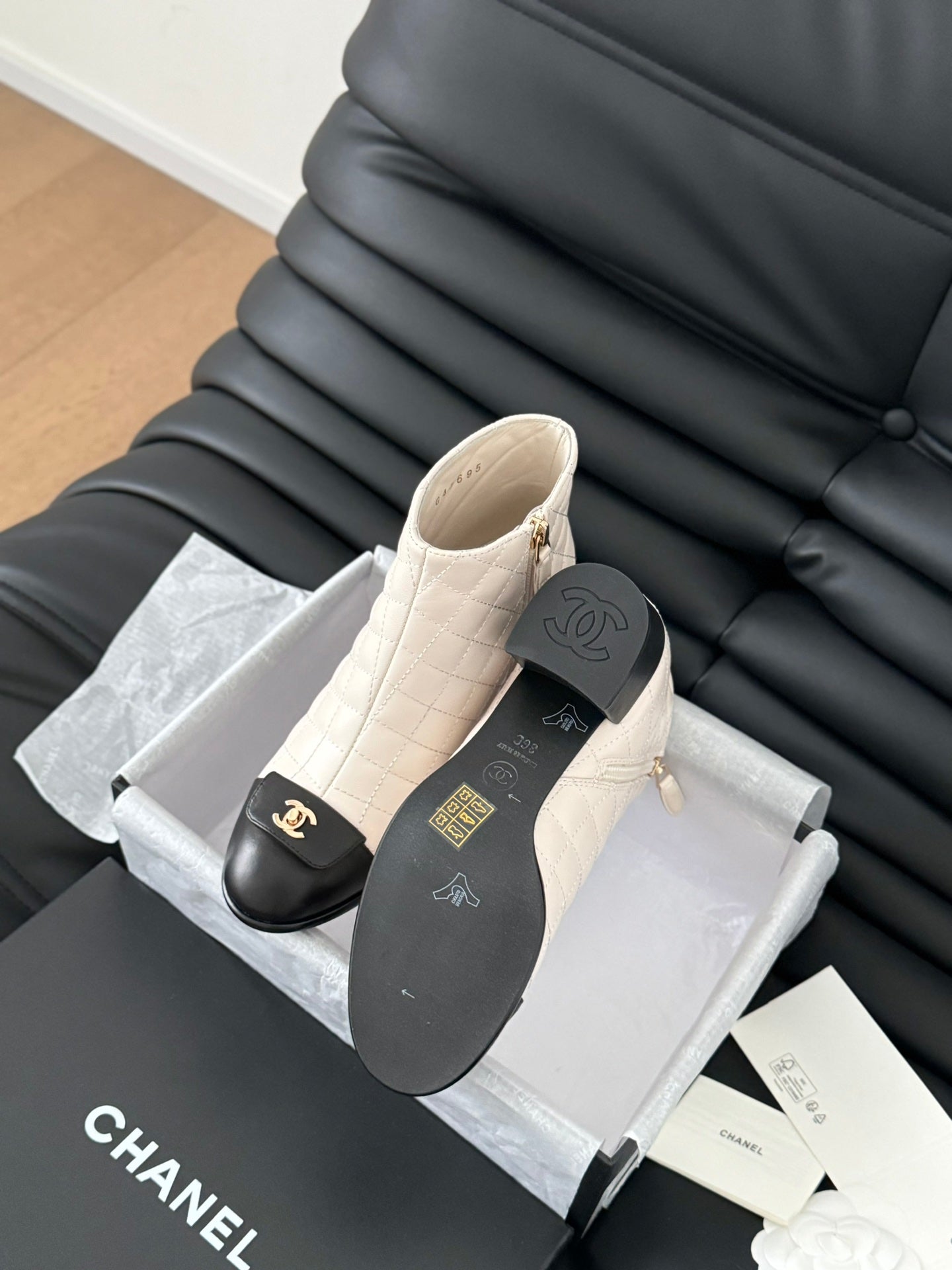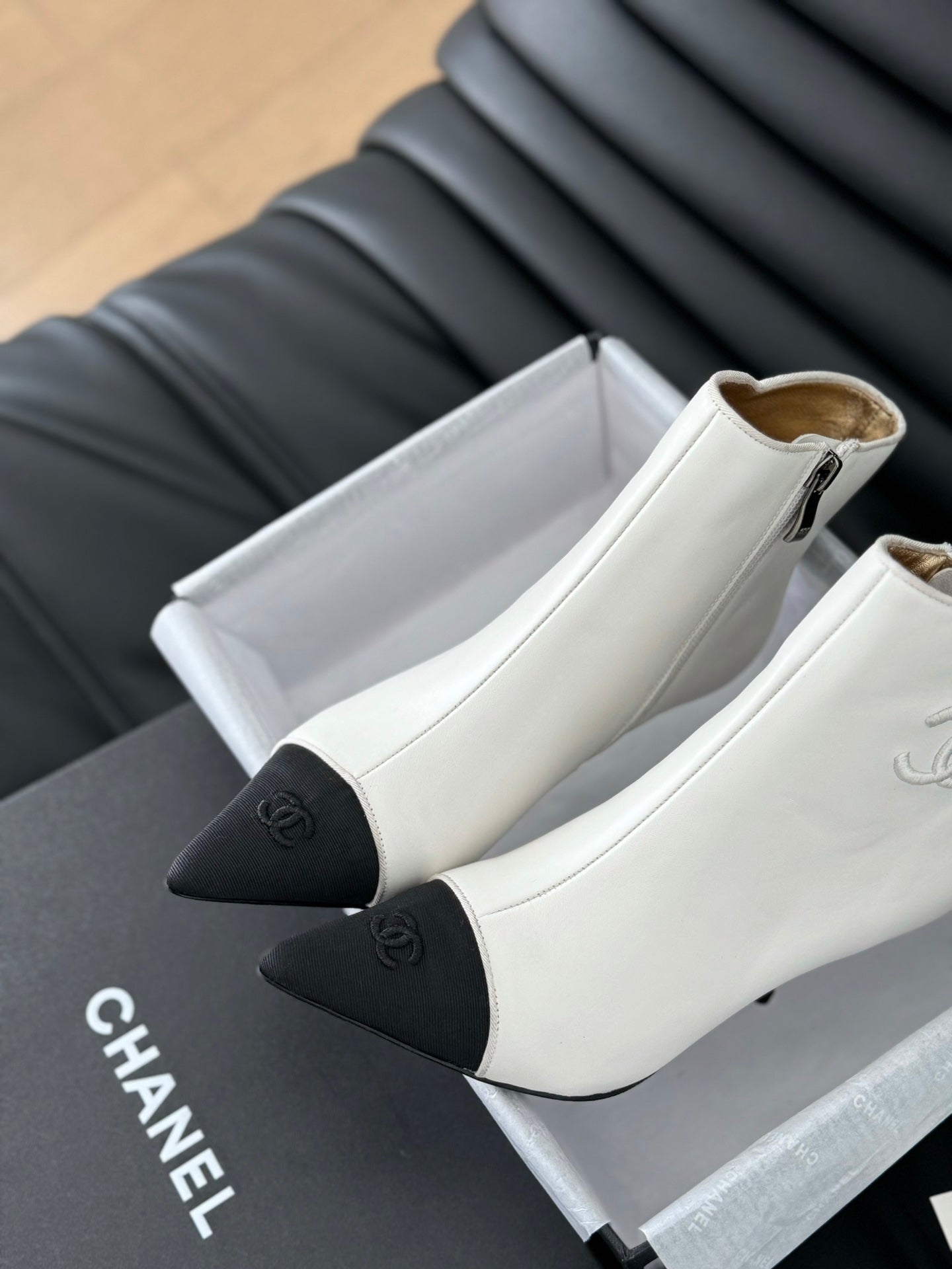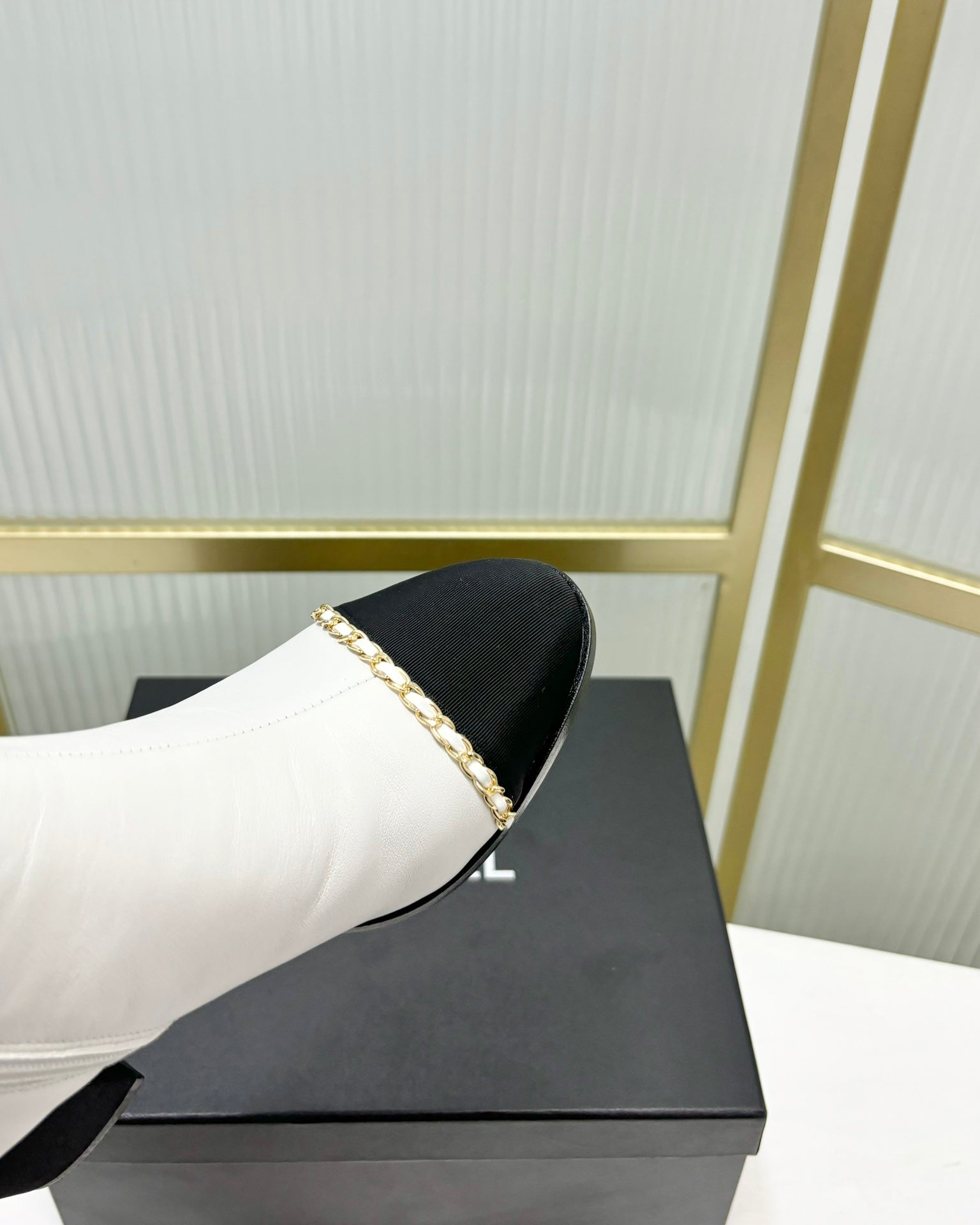 CC Ankle Boot White Calfskin Black Patent Calfskin