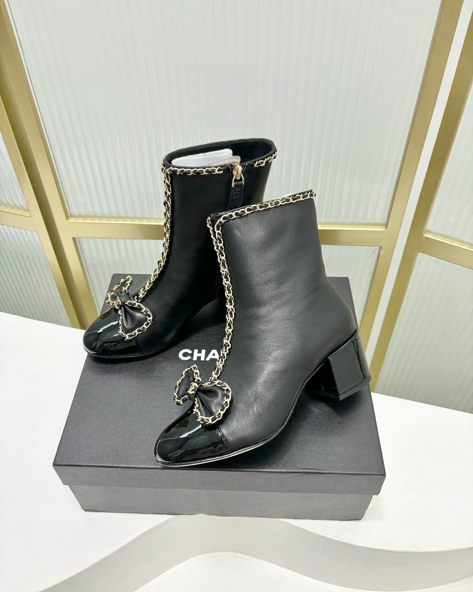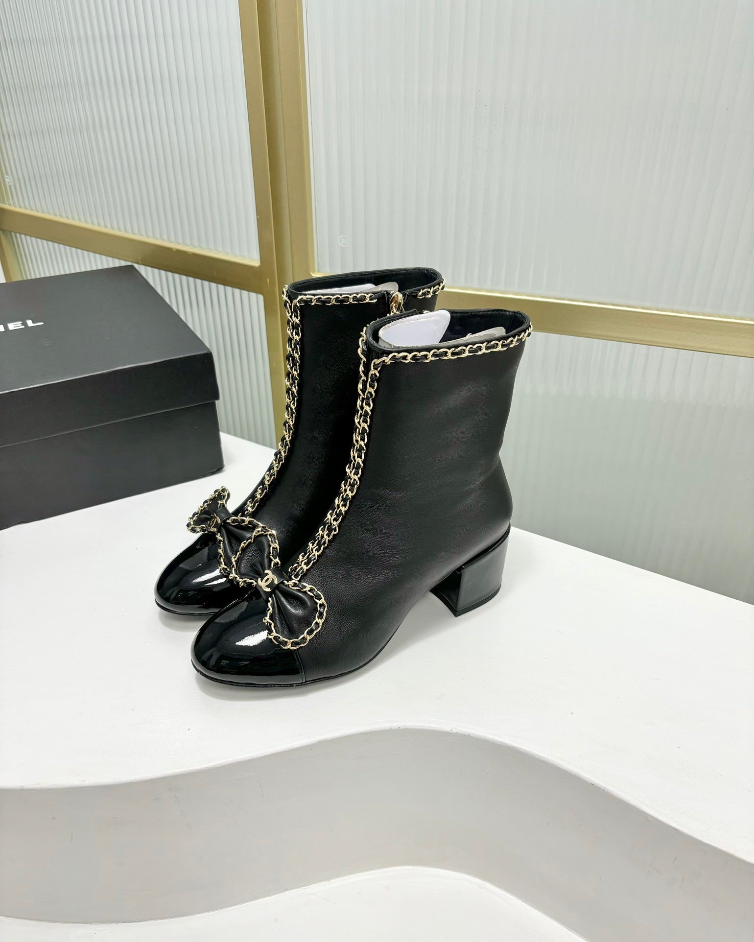 CC Ankle Boot Black Calfskin Patent Calfskin