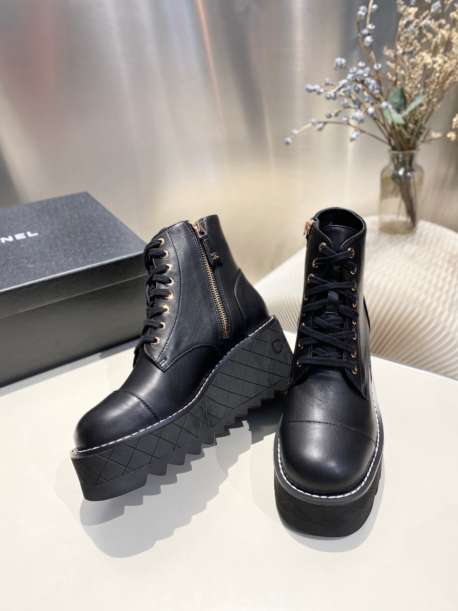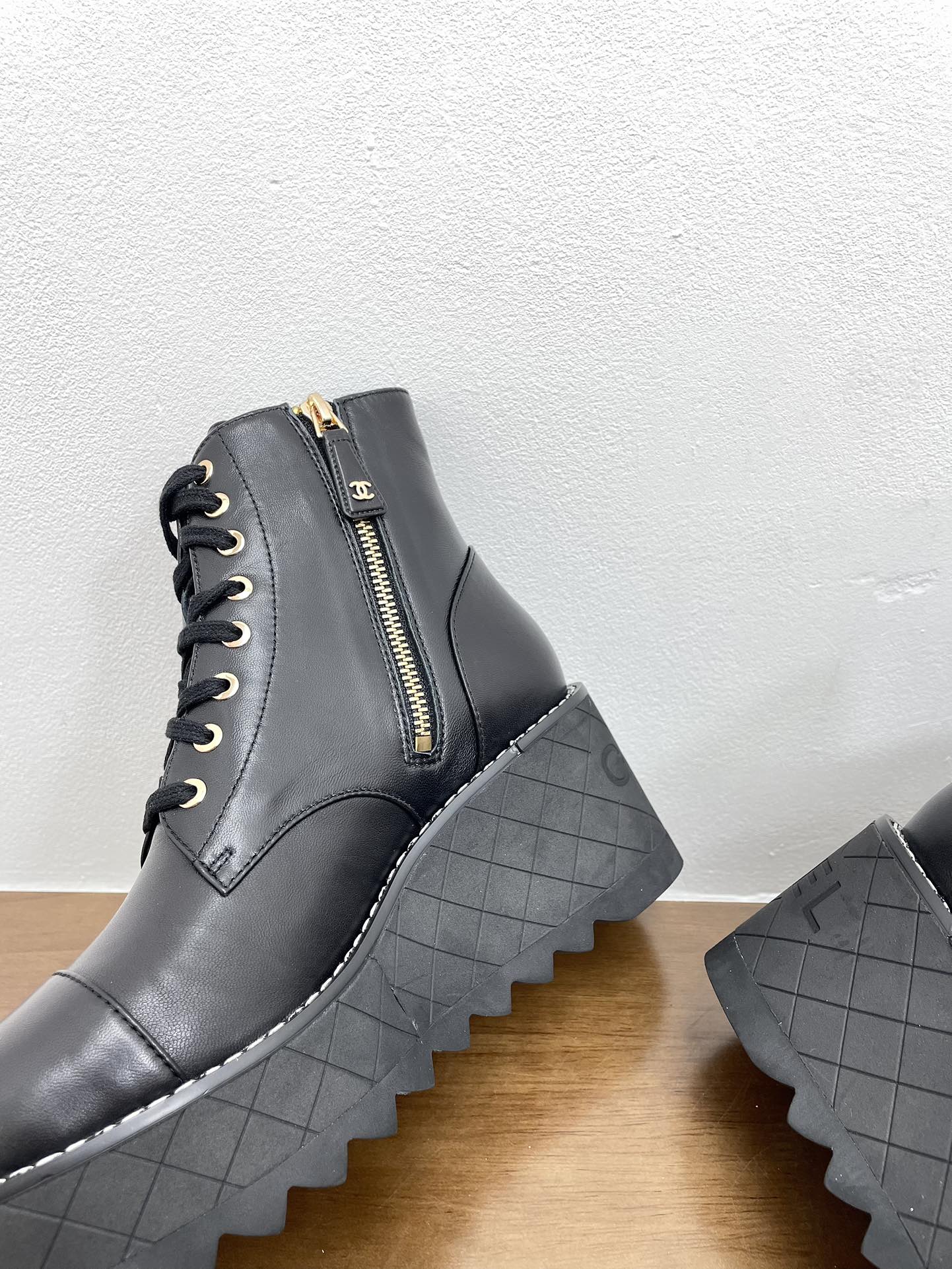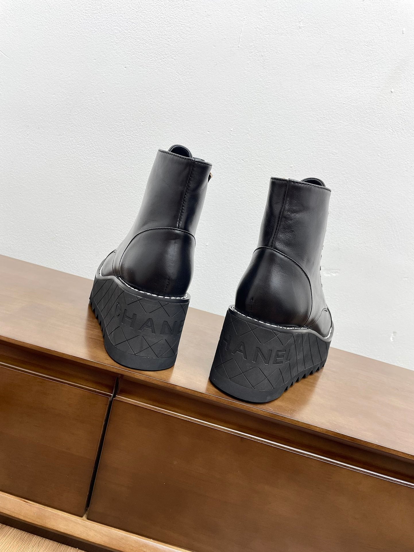 CC CHUNKY BOOTS IN BLACK SMOOTH FLEECE AND CALFSKIN