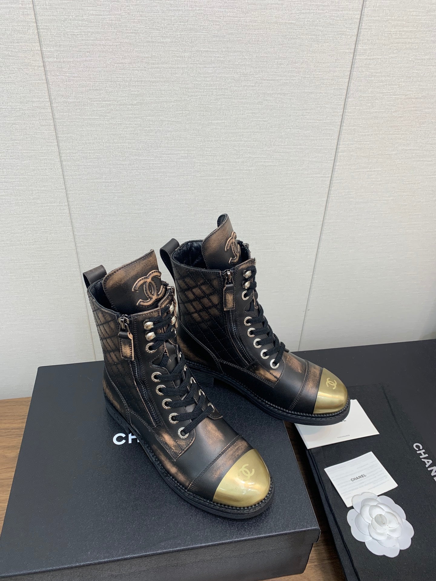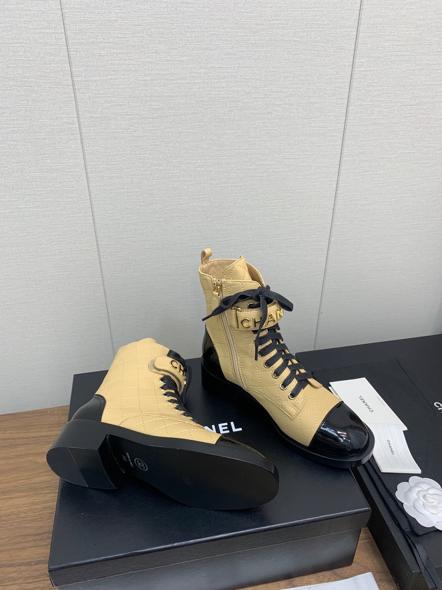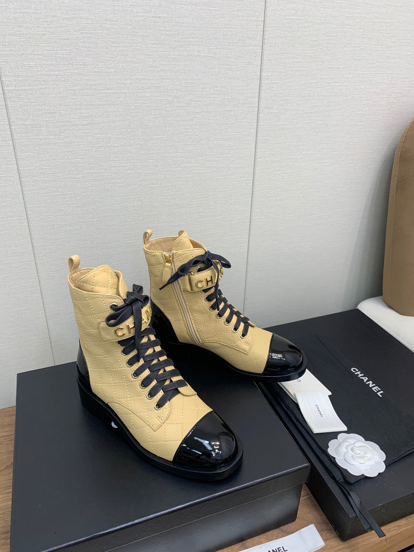 CC SHORT BOOTS 65 MM IN SEPIA BEIGE MIX BLACK QUILTED PATTERN LAMBSKIN