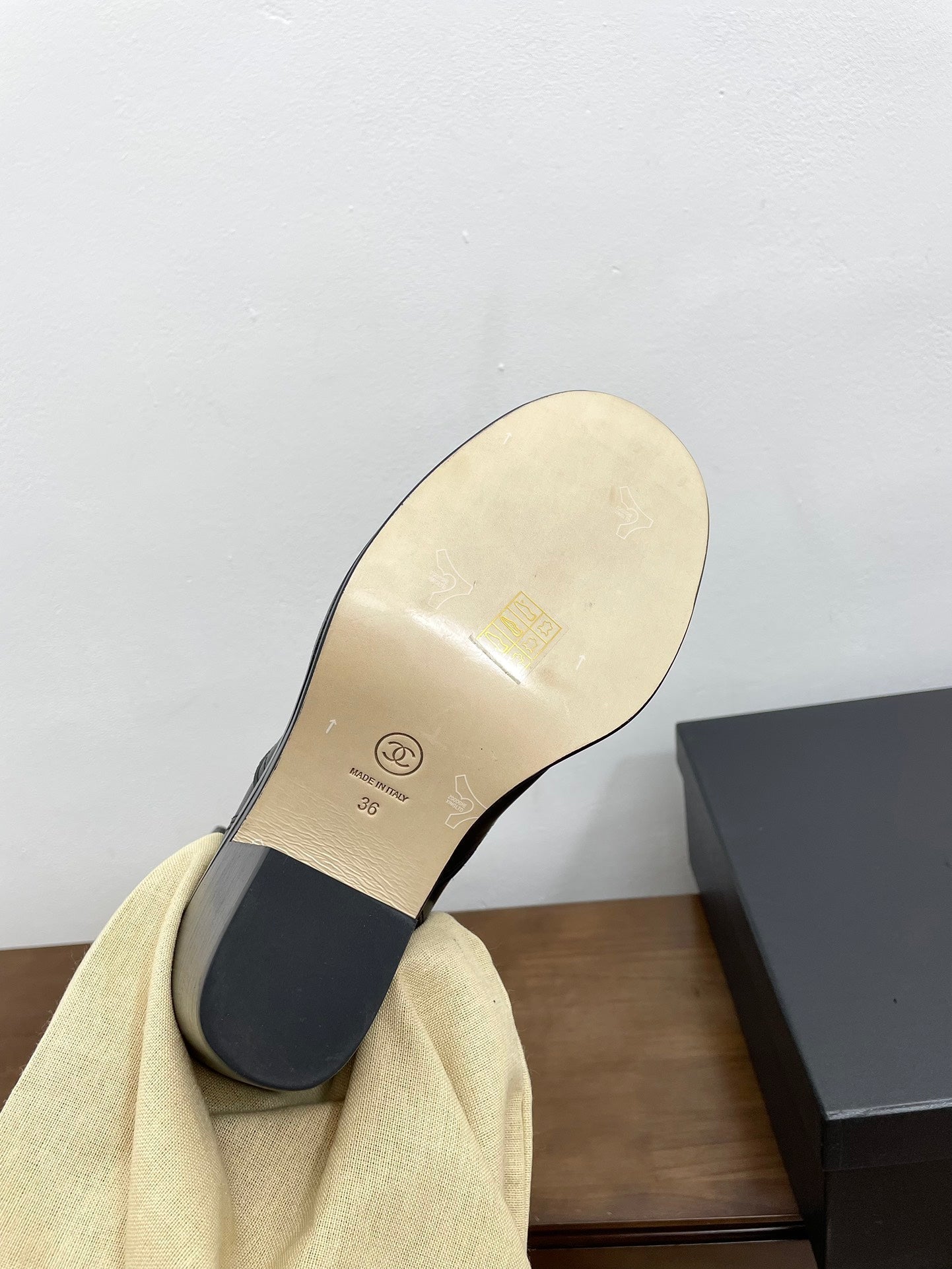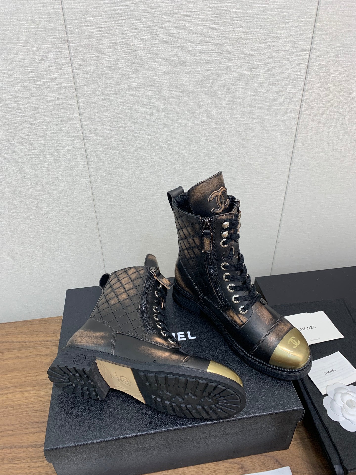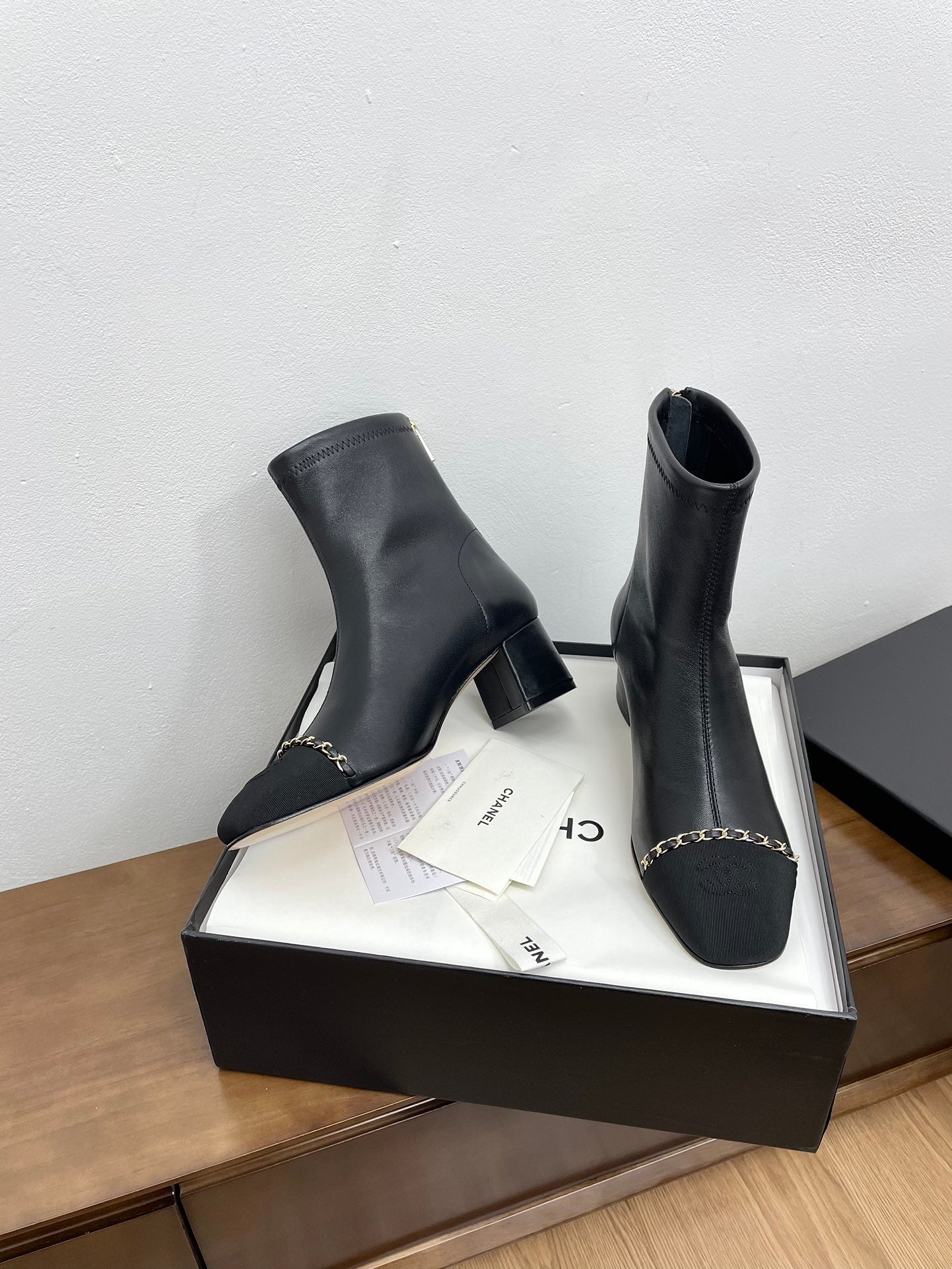 CC Short boots Black Cowhide Mix Tweed Fabric