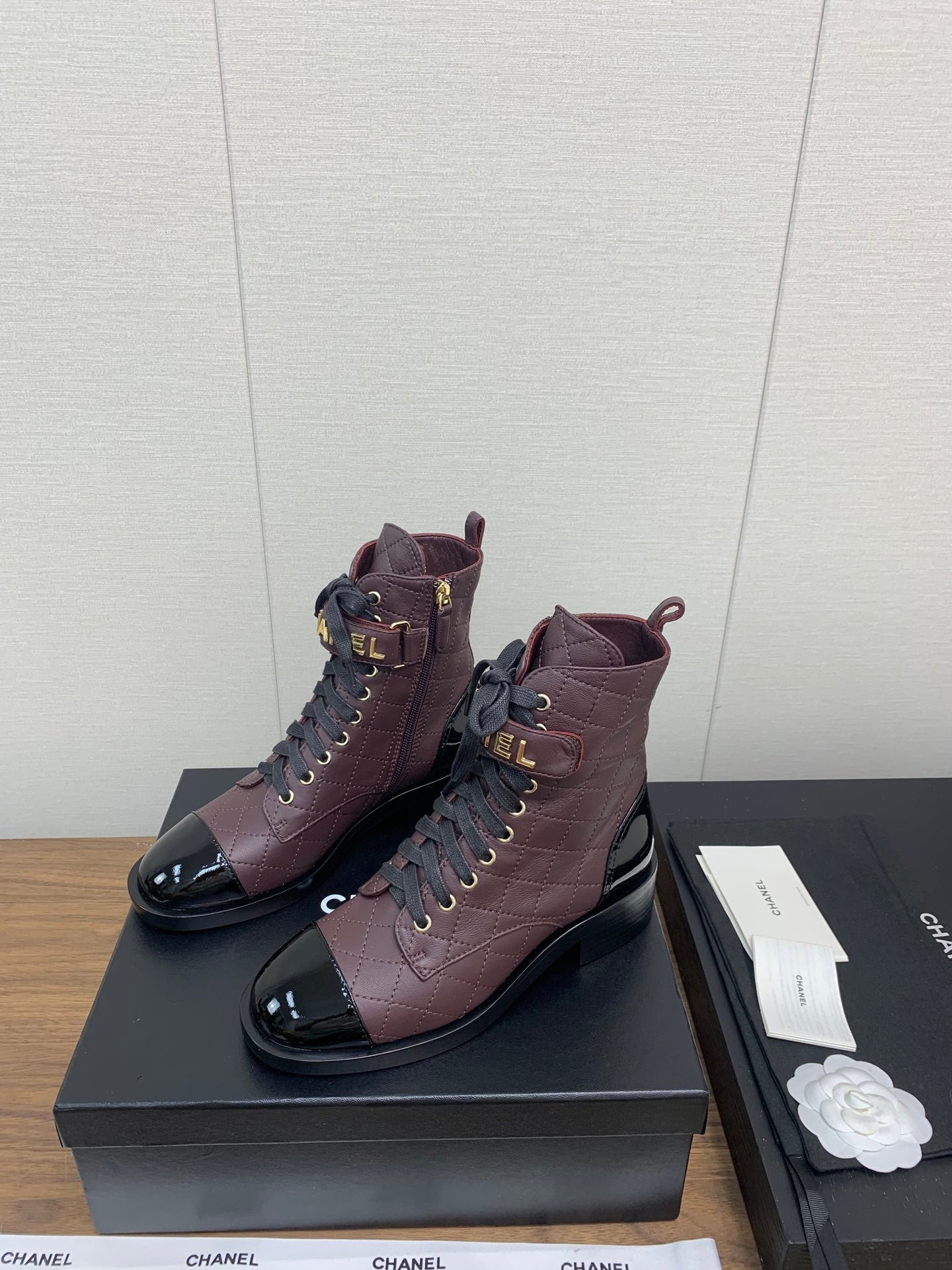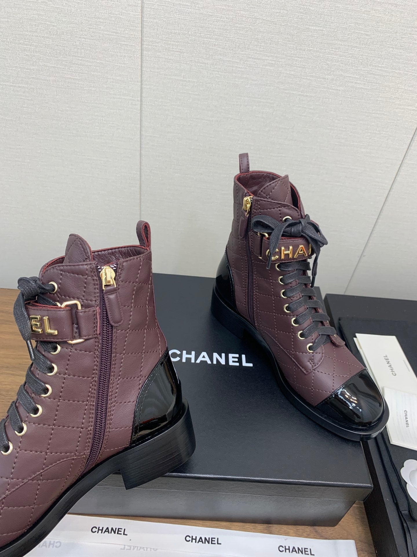 CC SHORT BOOTS 65 MM IN SANGRIA PURPLE MIX BLACK QUILTED PATTERN LAMBSKIN
