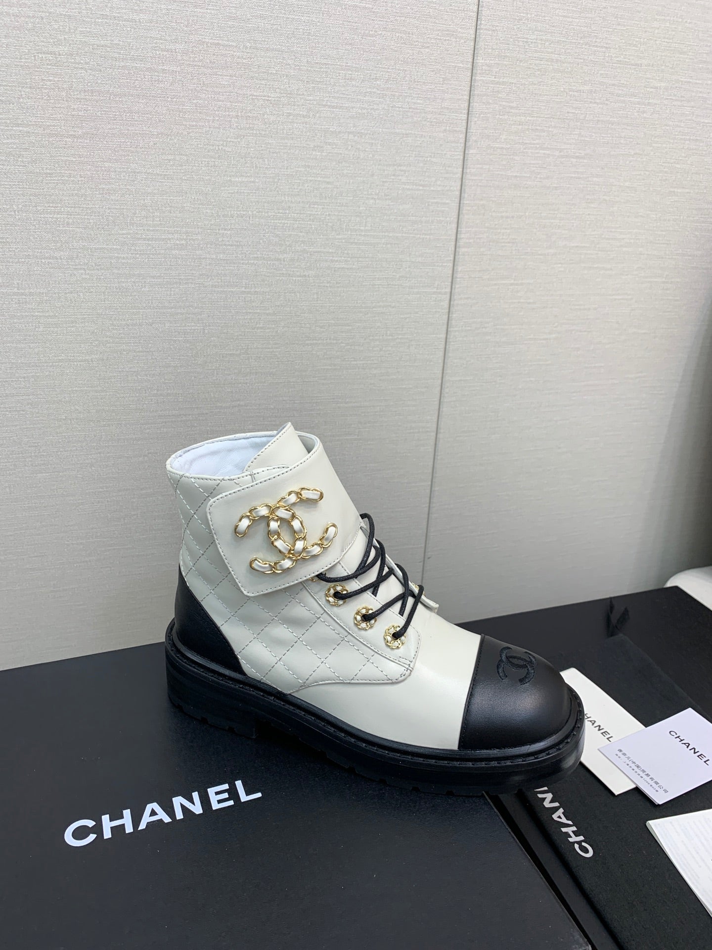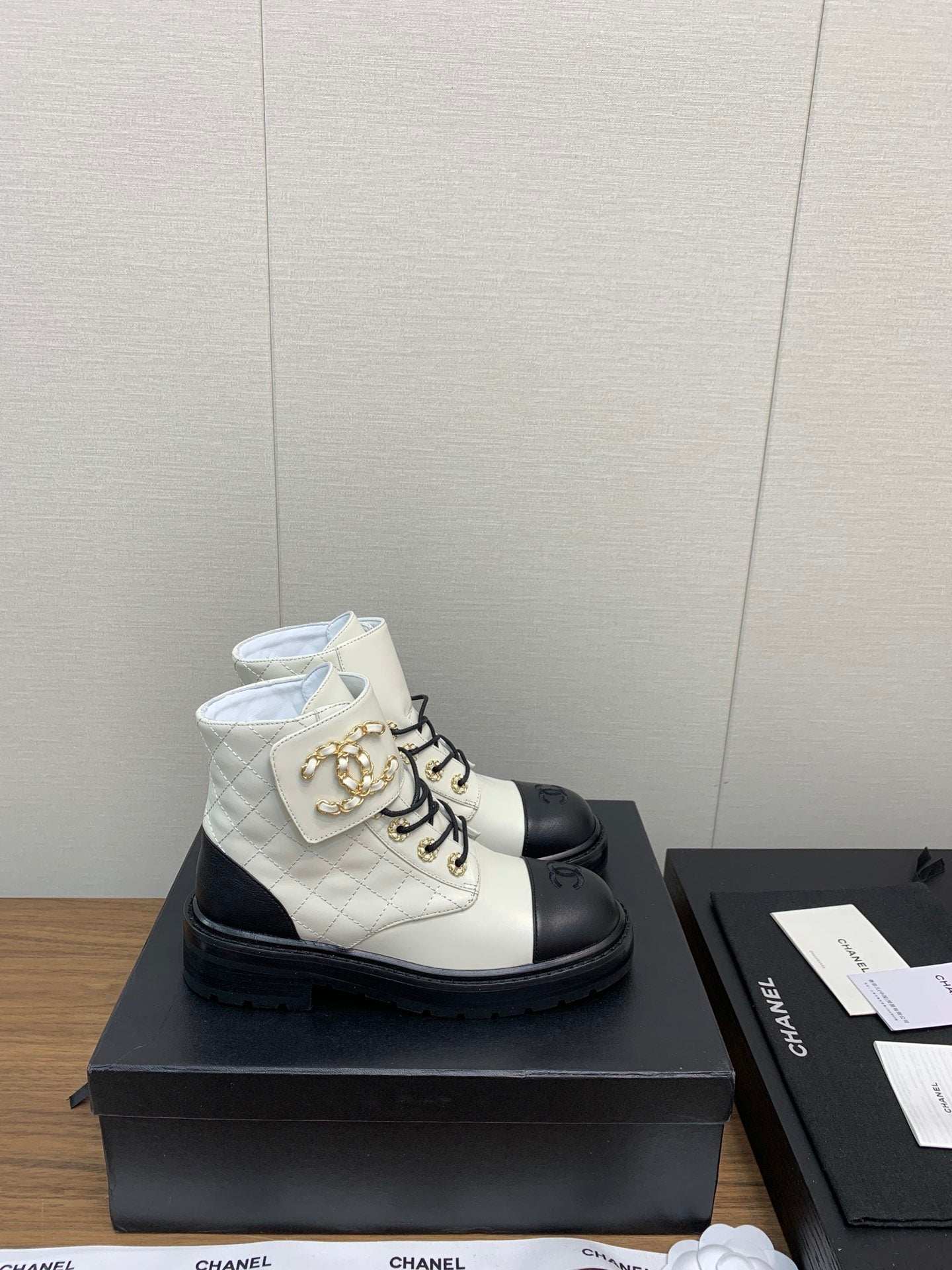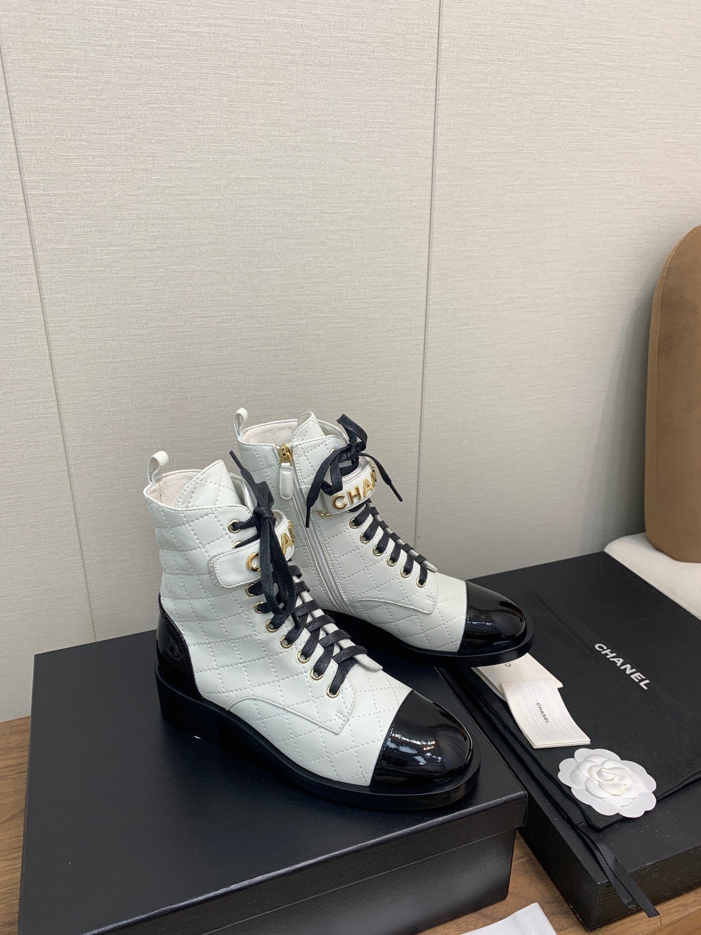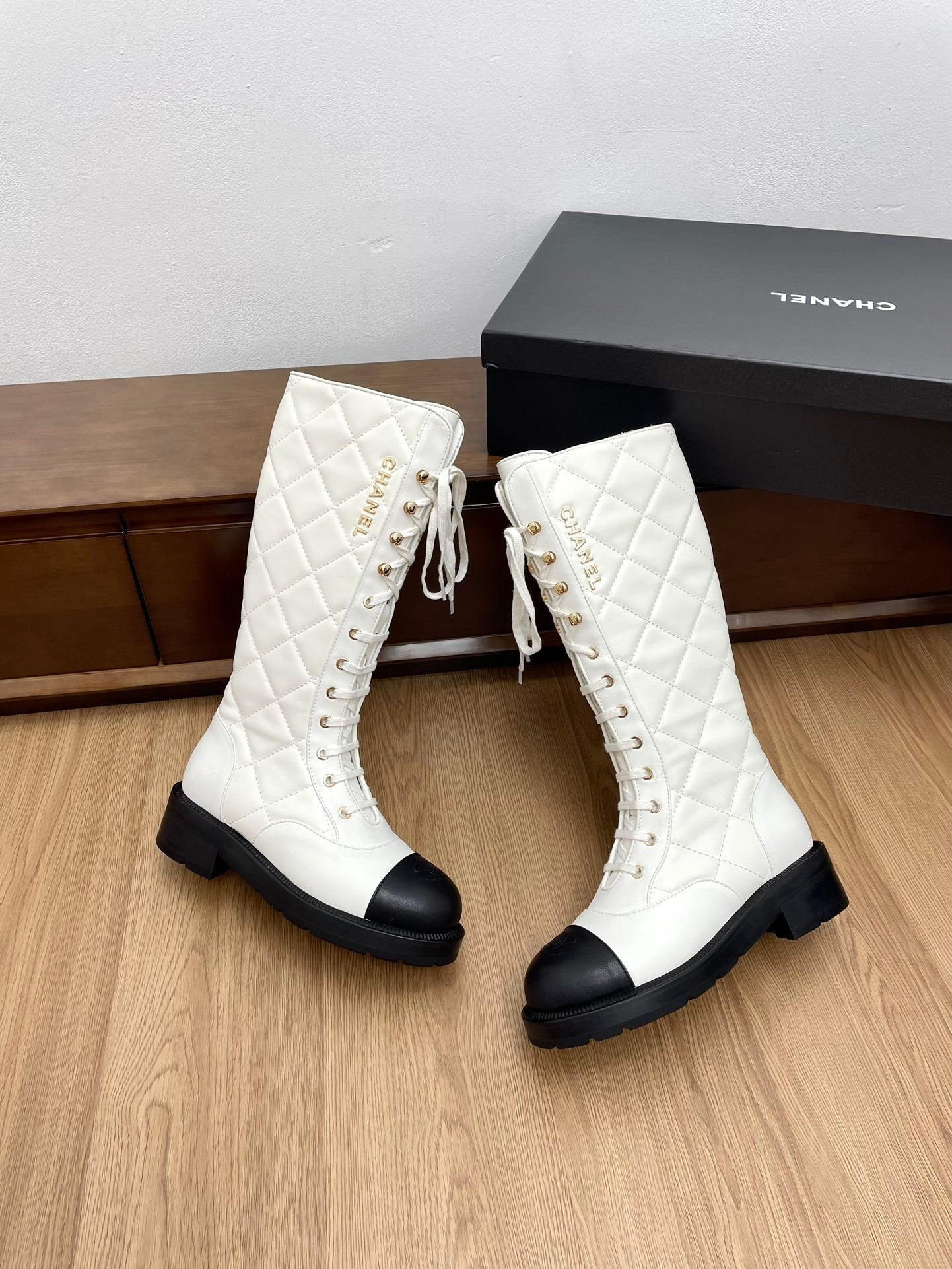 CC High Boots 45mm White Mix Black Quilted Cowhide