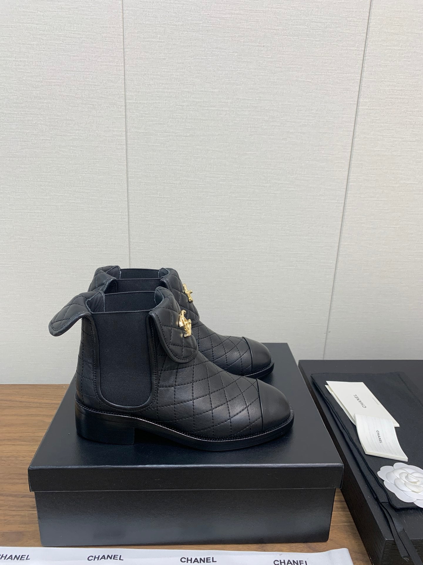 CC SHORT BOOTS 65 MM IN BLACK QUILTED PATTERN LAMBSKIN